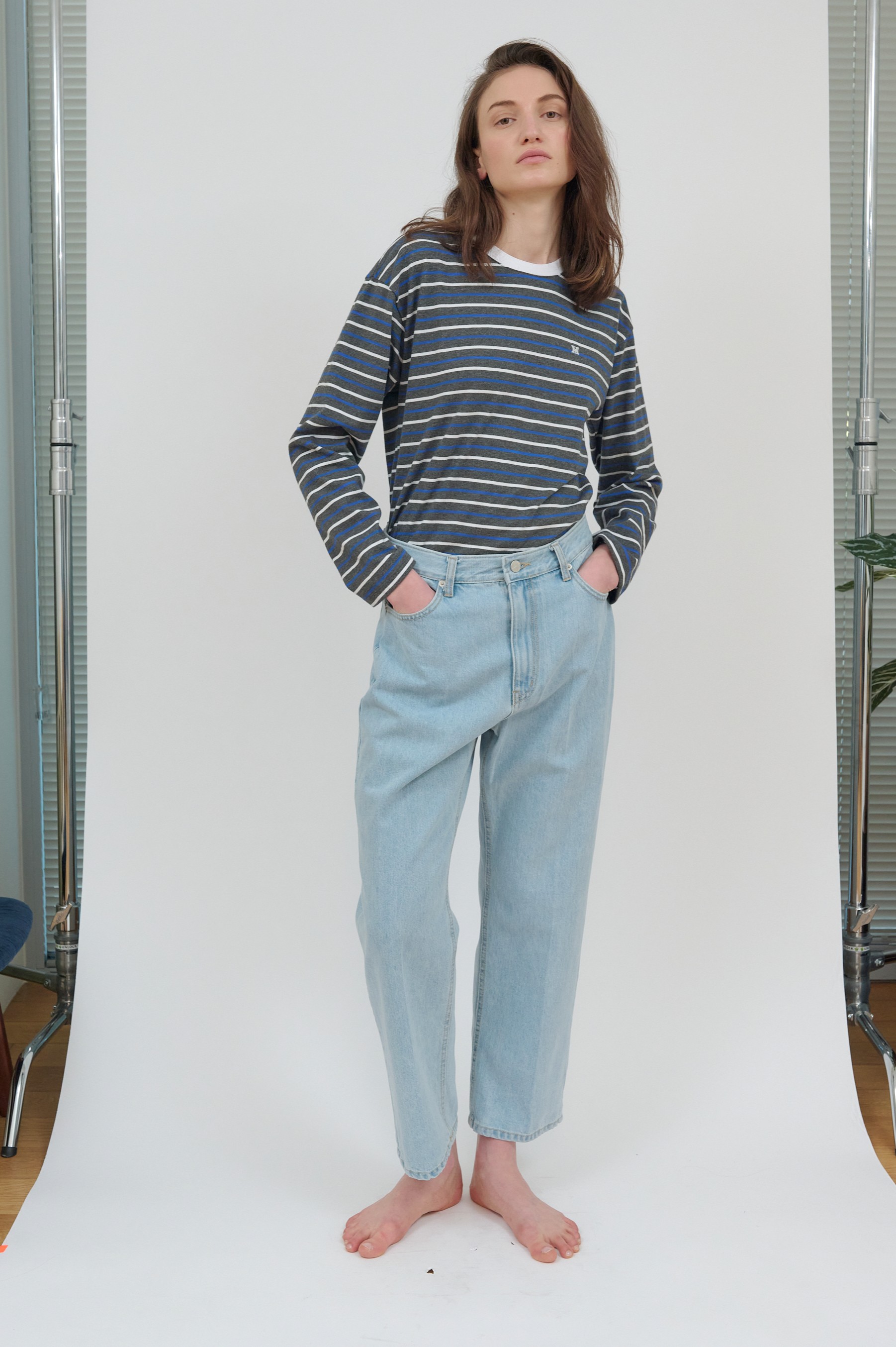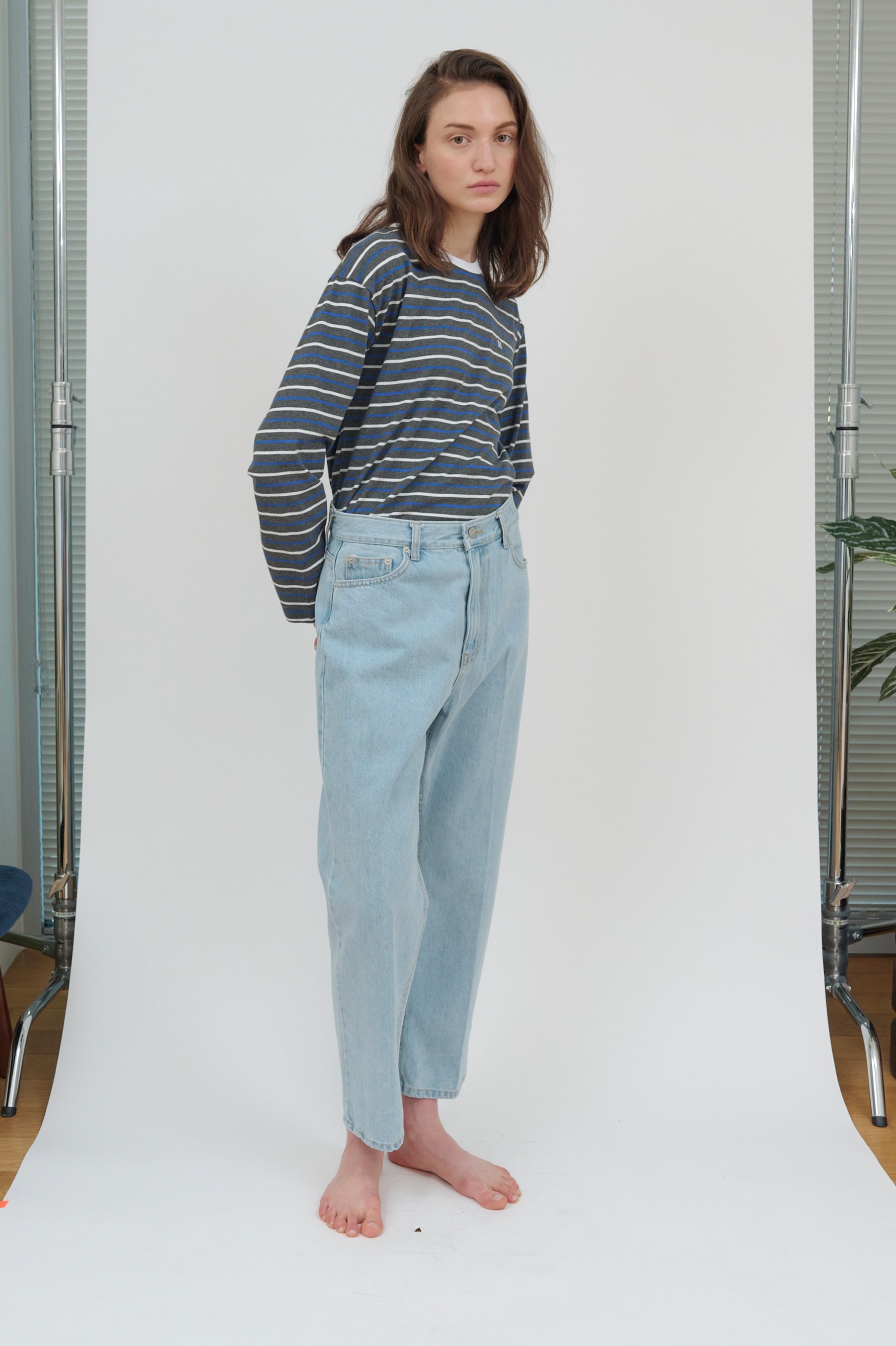 밀도가 촘촘하여 착용시 늘어남이 덜하고 유연한 착용감을 느낄 수 있습니다. 부드러운 링 사와 러프 한 느낌의 오이사 혼방으로 워싱 시 표면은 부드럽고 매끈하며 컬러감과 슬럽감은 레트로하여 빈티지 한 느낌을 더해줍니다.