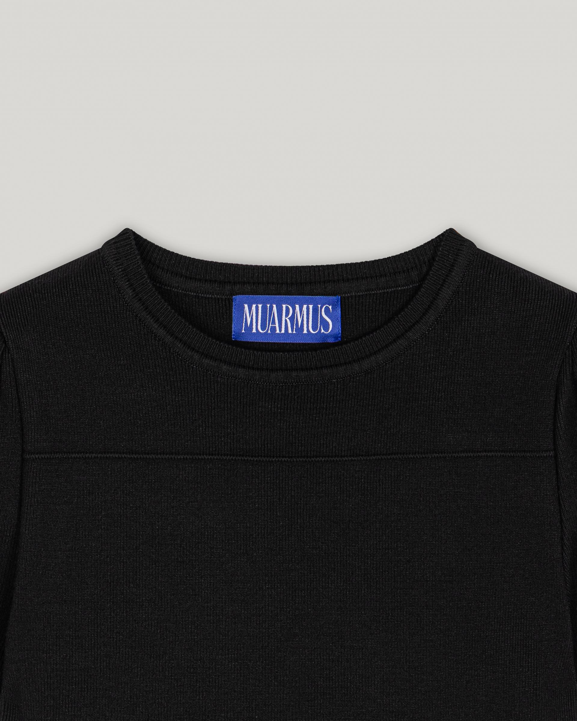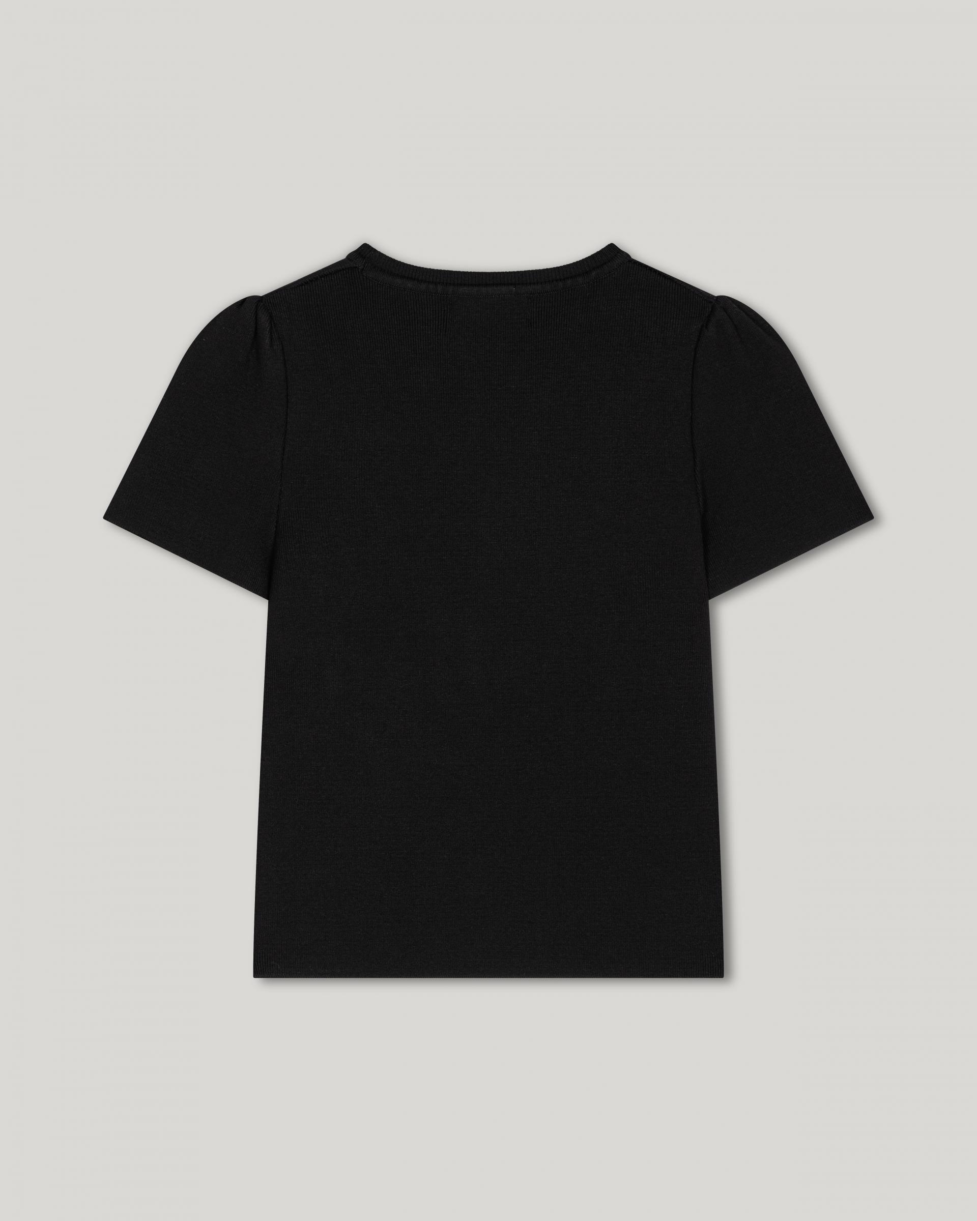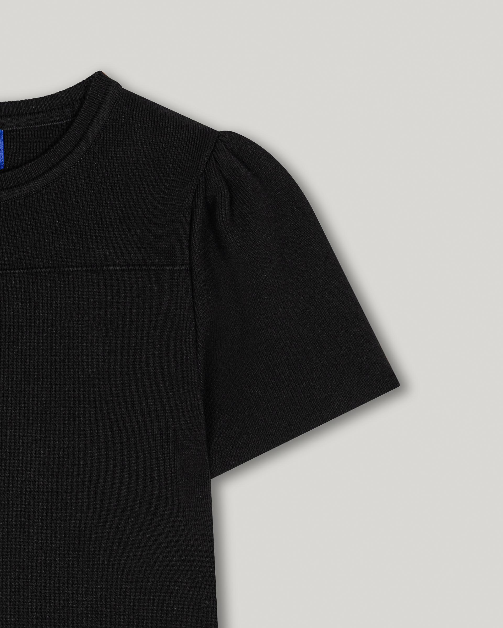 소매 퍼프가 돋보이는 반팔 니트입니다