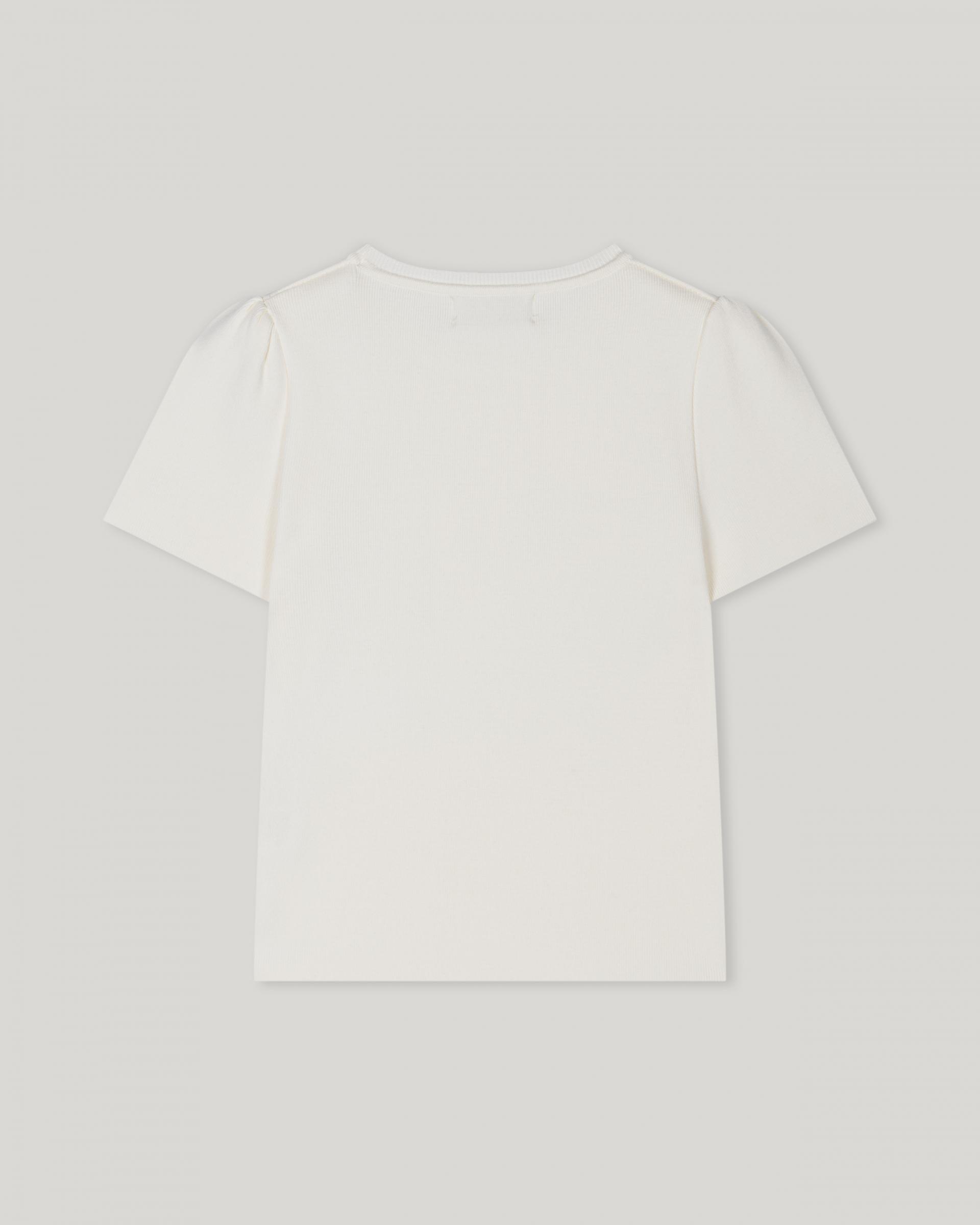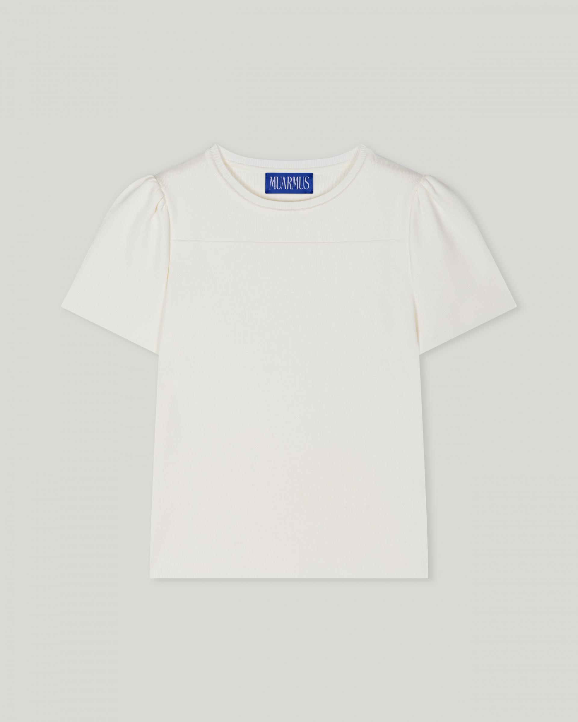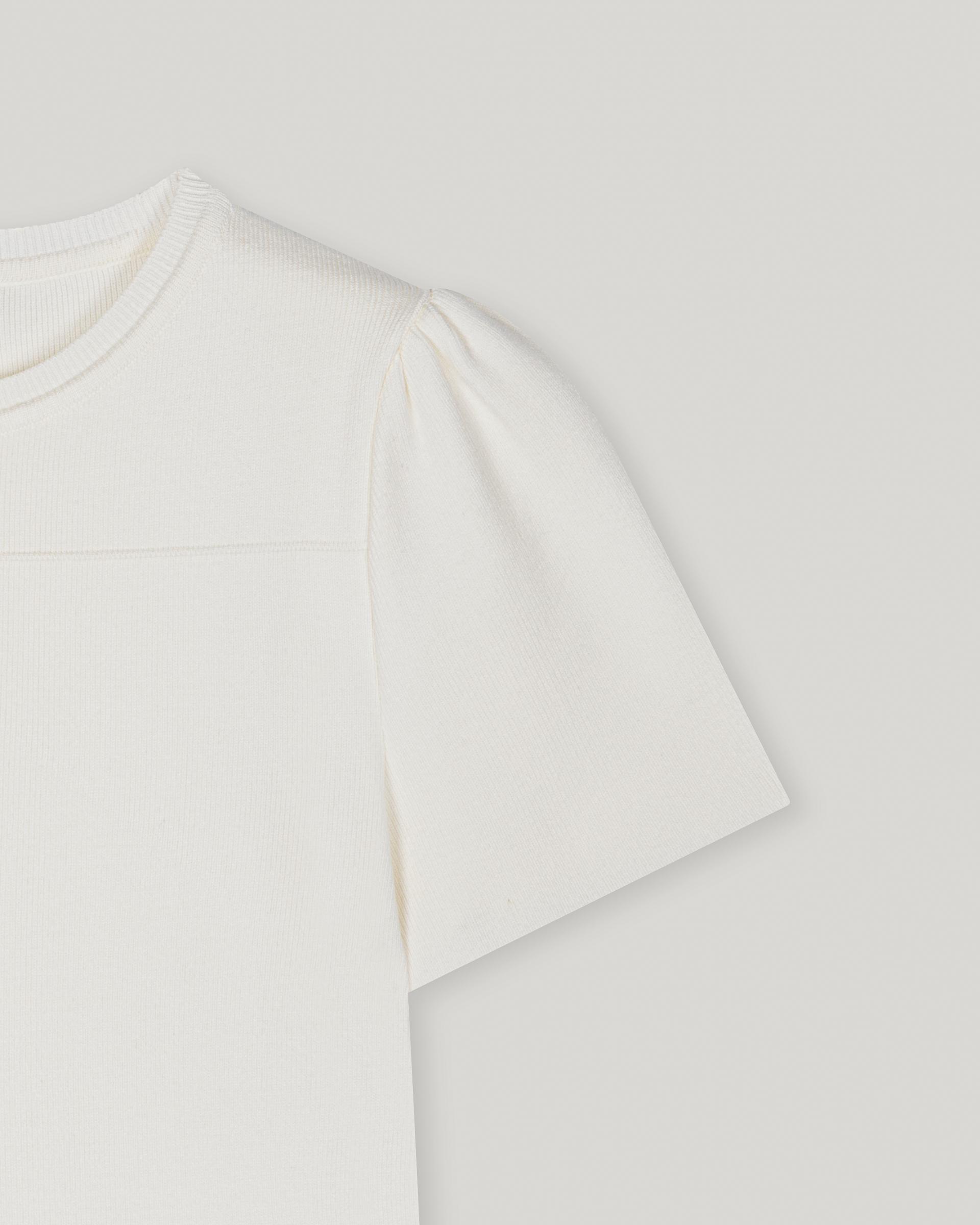 소매 퍼프가 돋보이는 반팔 니트입니다