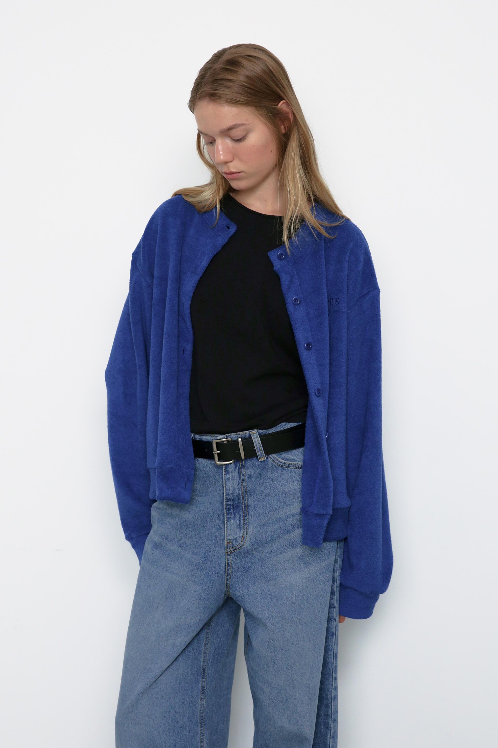 여유로운 실루엣의 컬러감이 돋보이는 라운드넥 테리 소재 가디건입니다.