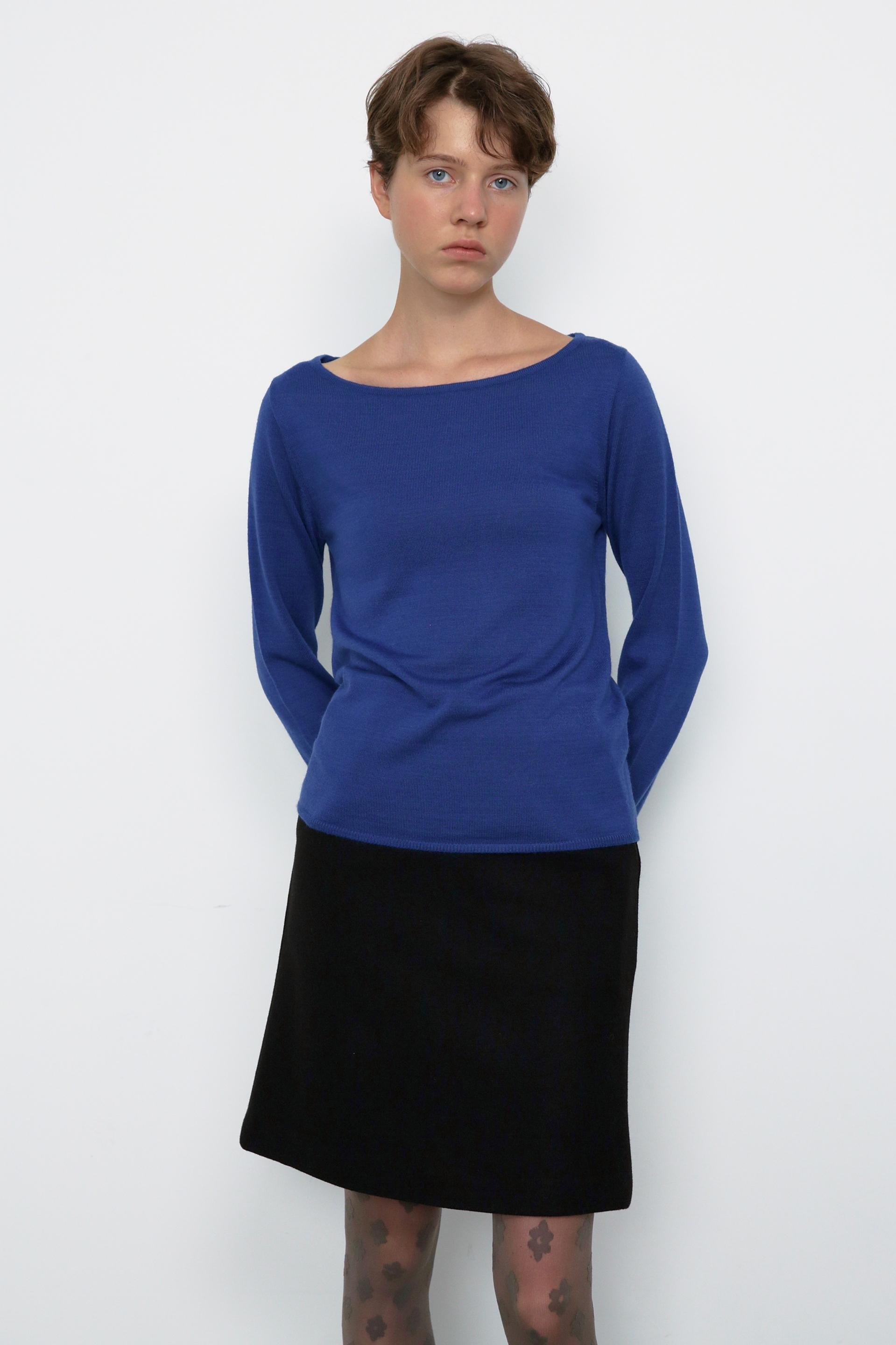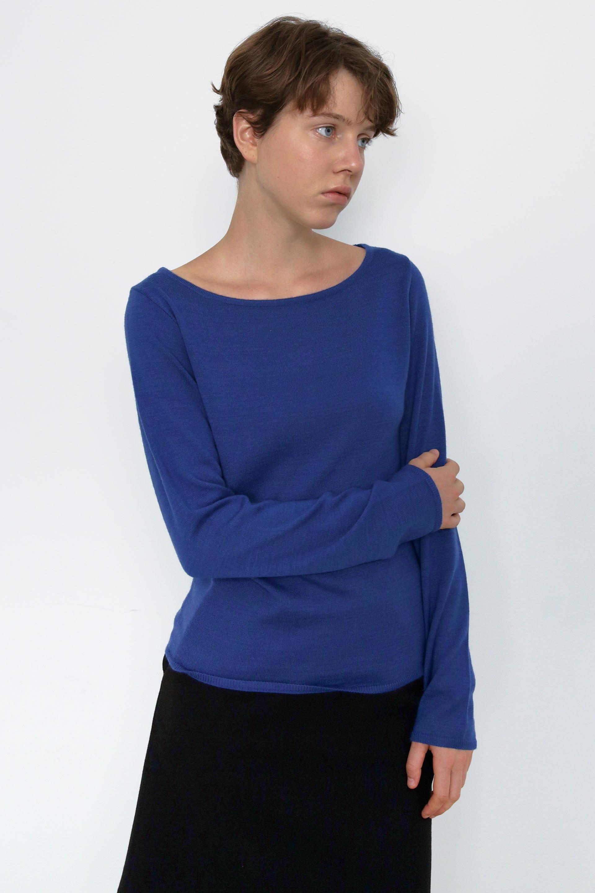 캐시미어 울 블랜드 소재로 제작되어 부드러운 터치감이 돋보이는 보트넥 니트입니다.