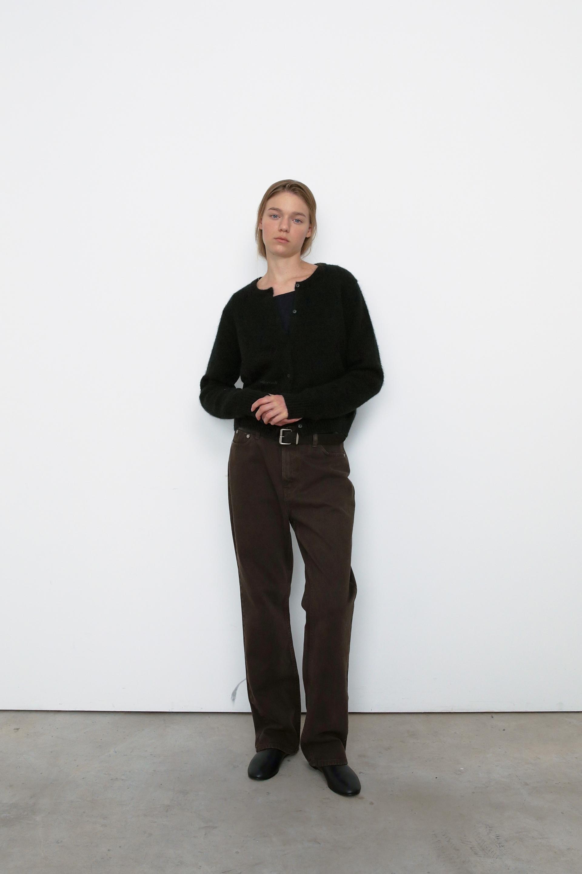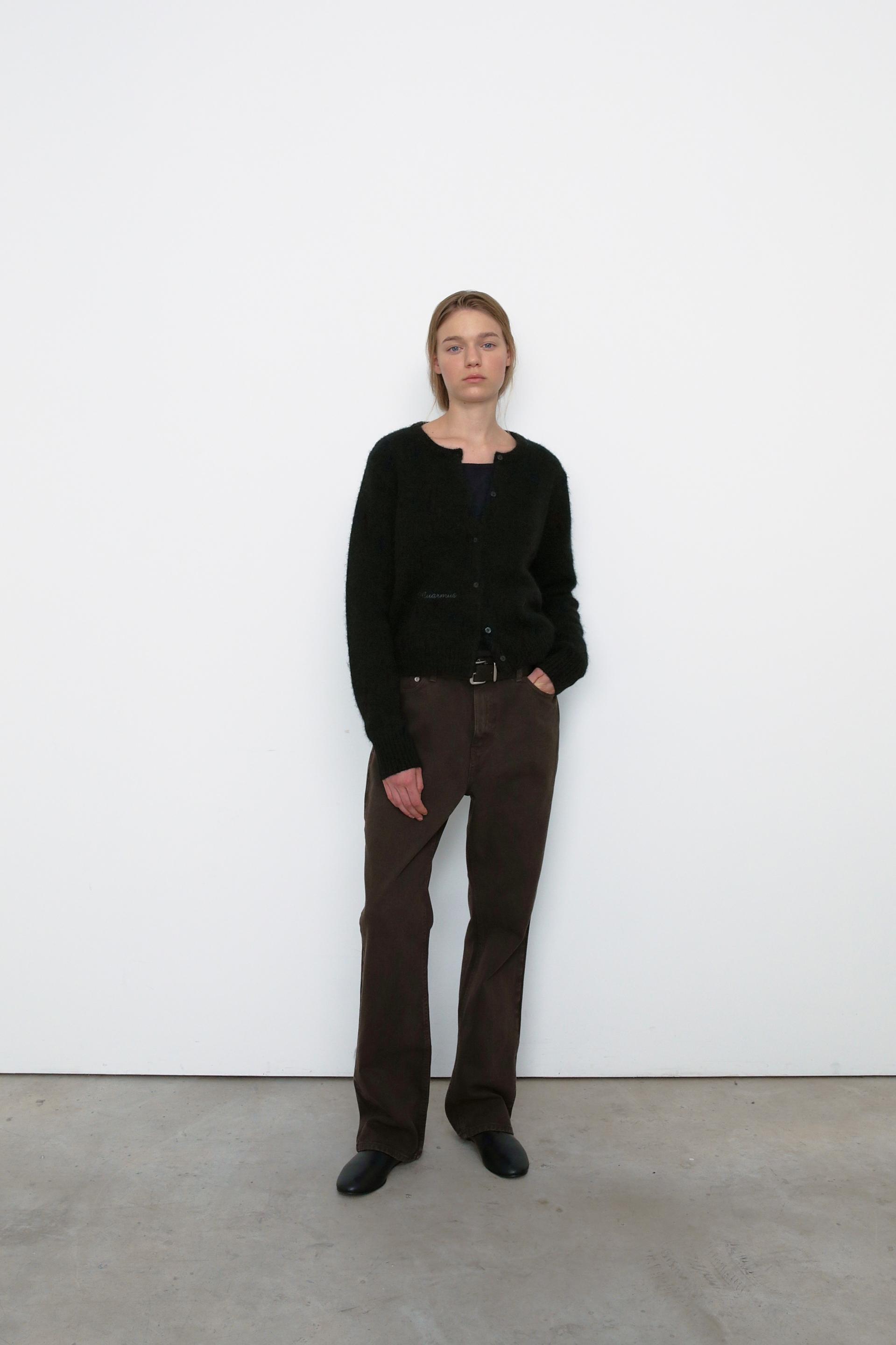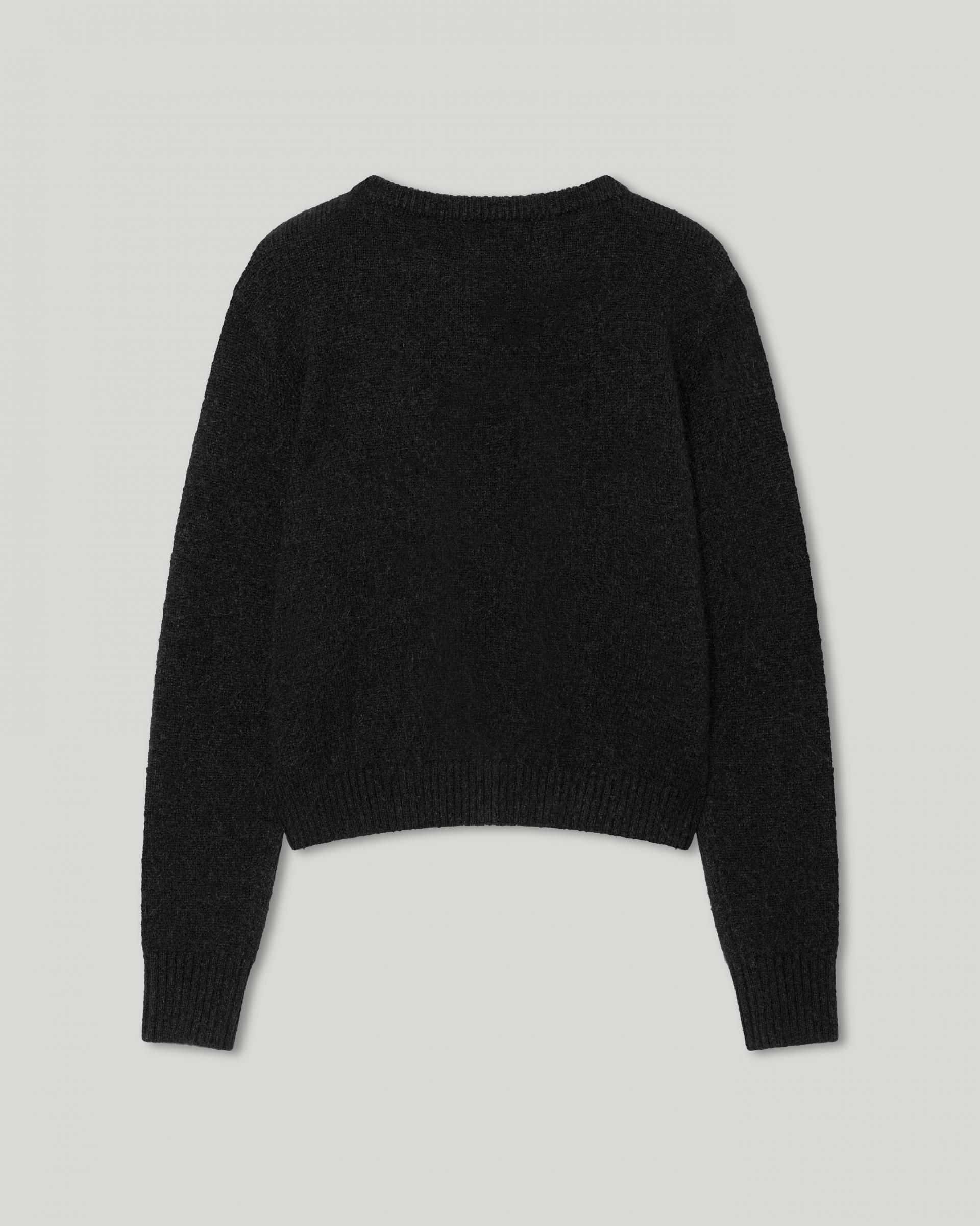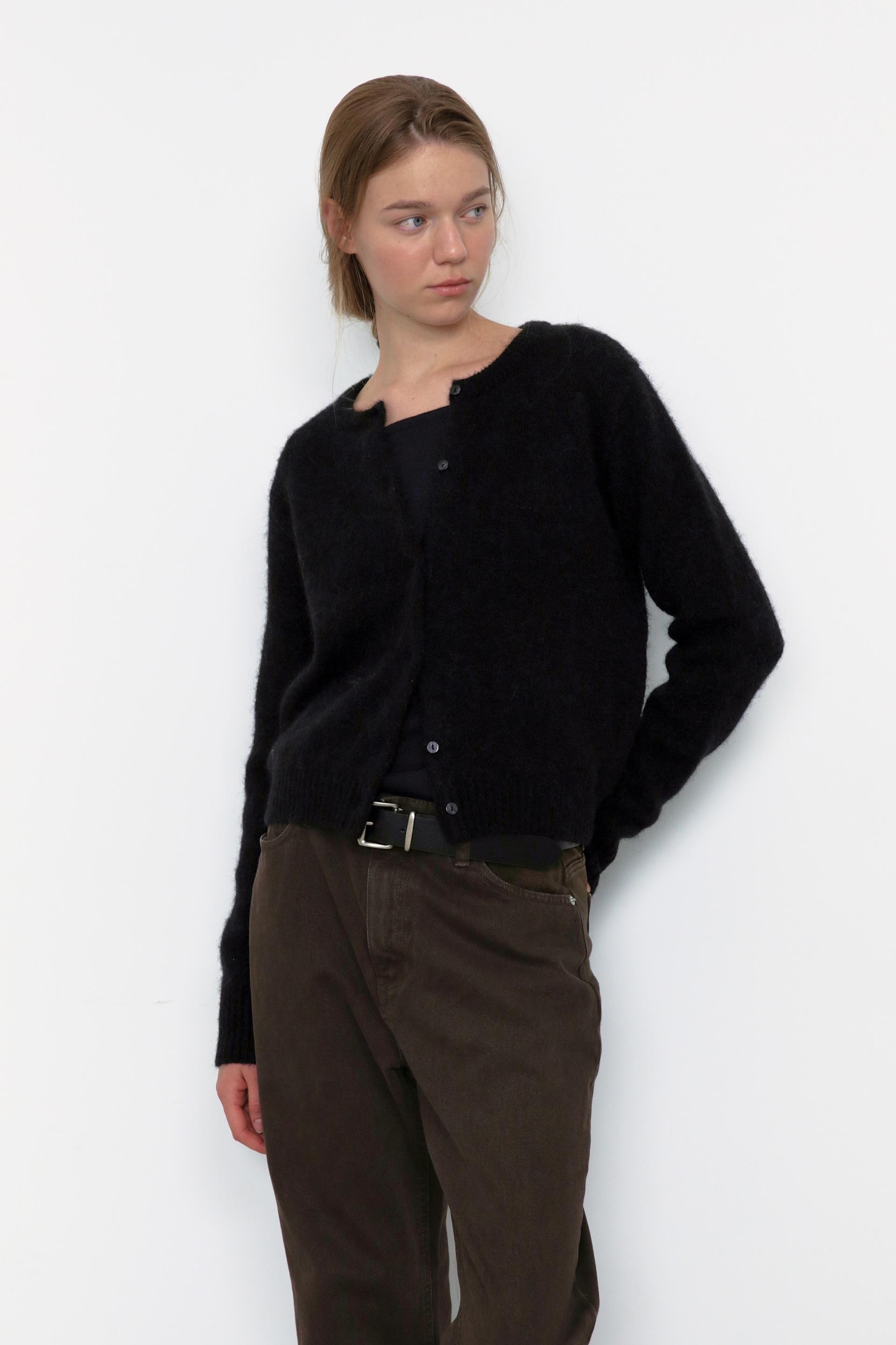 포근한 분위기의 알파카 혼방 라운드 가디건입니다.