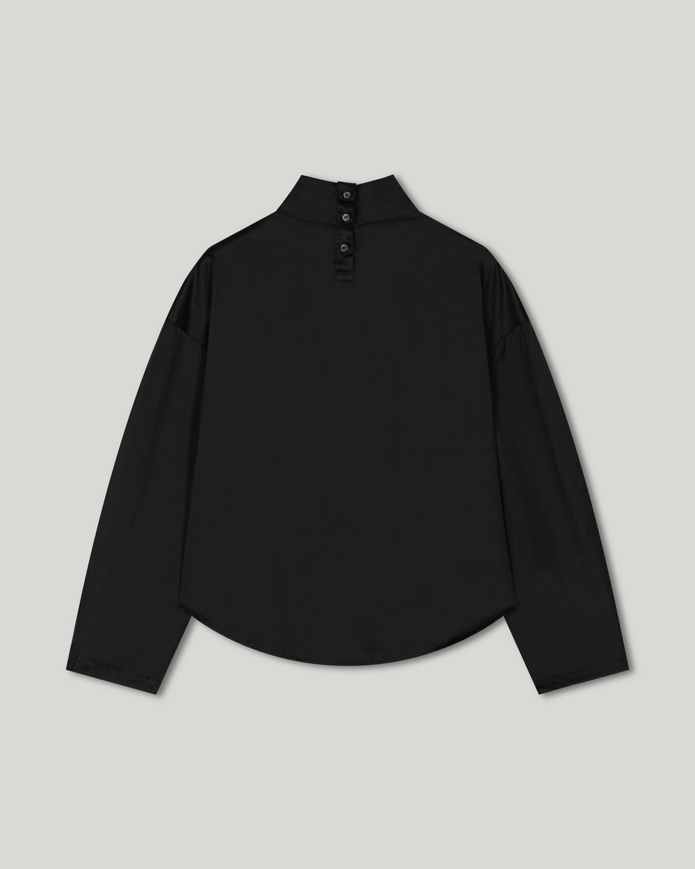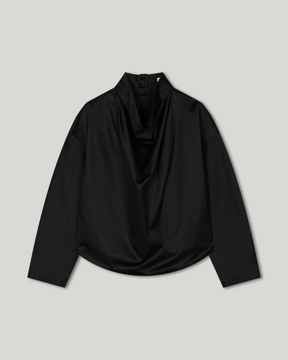 넥 라인부터 자연스럽게 흘러 내리는듯한 셔링 디테일로 고급스럽고 여성스러운 무드를 표현했습니다.