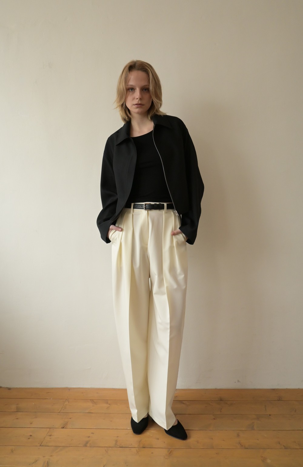 새틴 소재의 스트레이트 팬츠입니다.