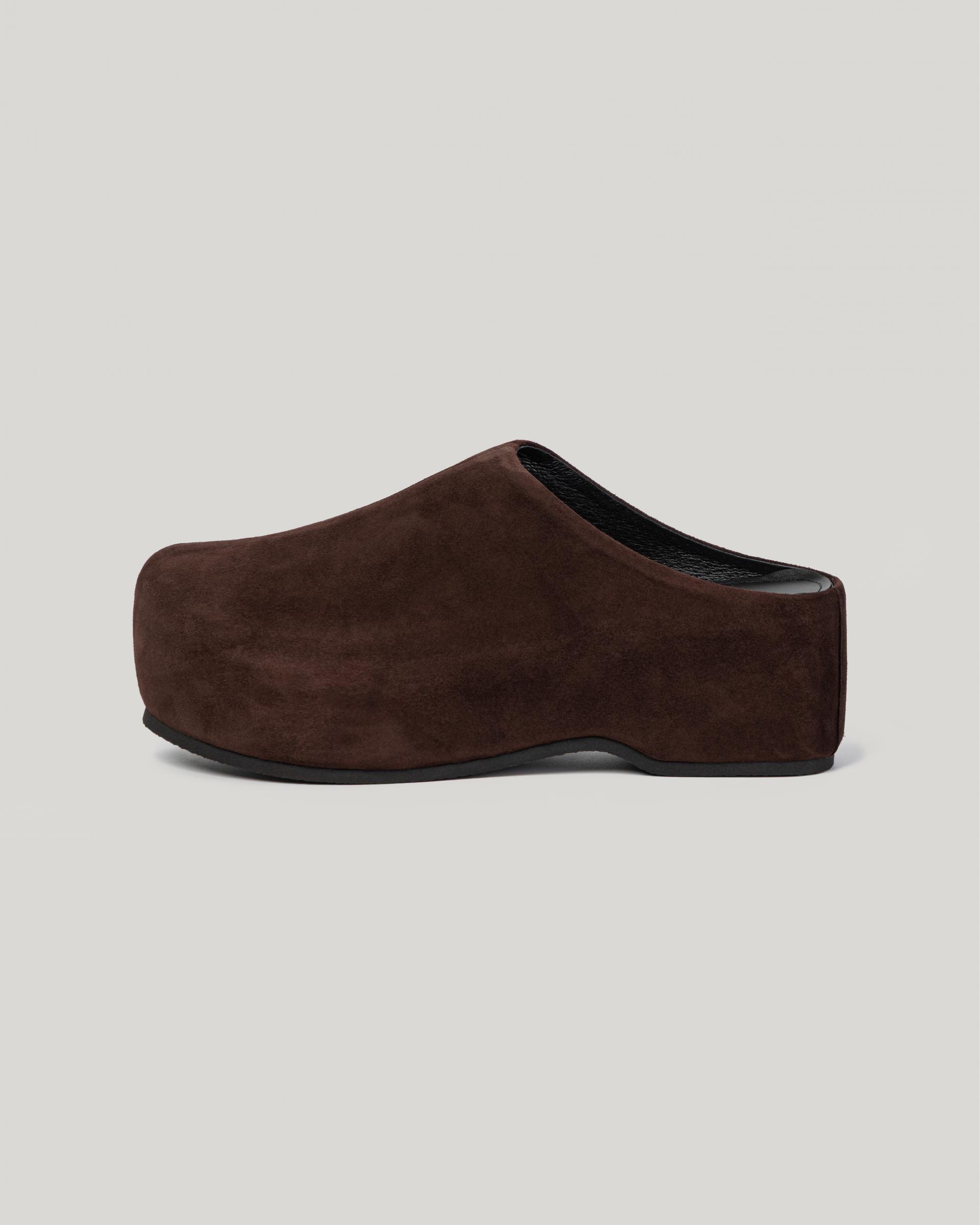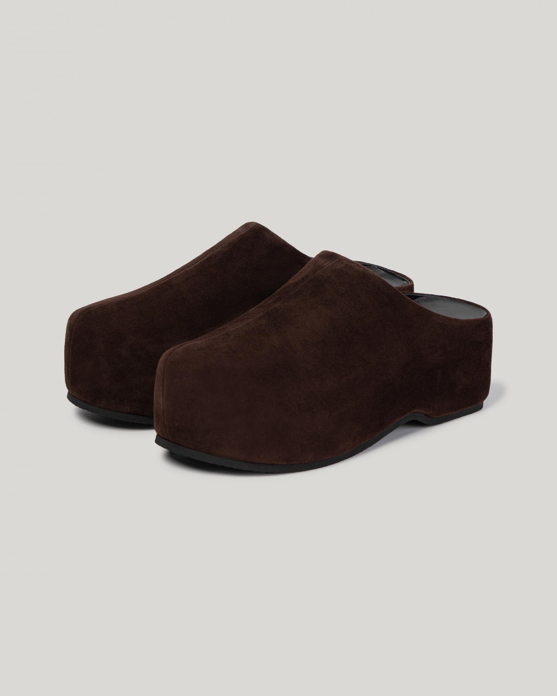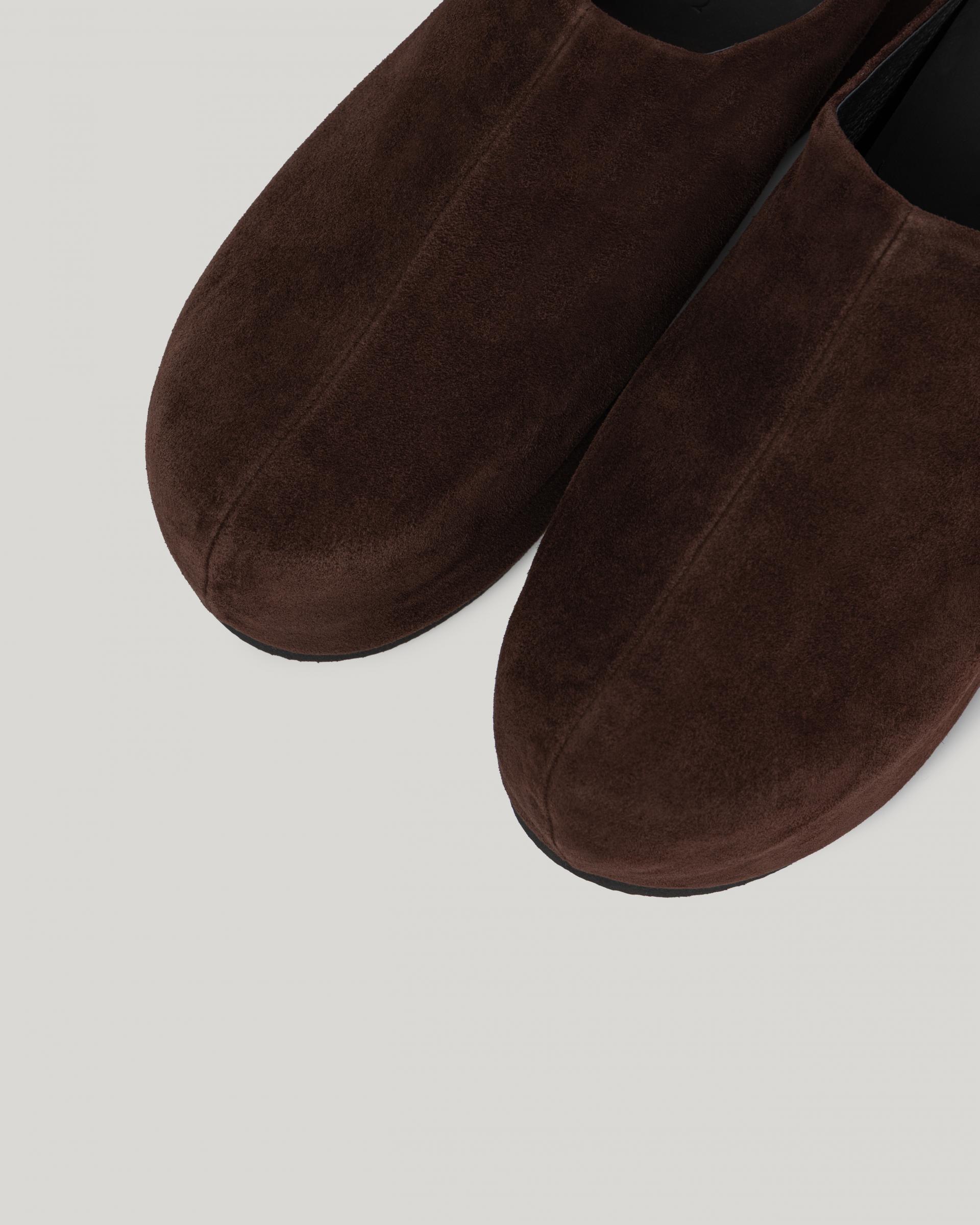 클래식한 디자인의 스웨이드 통굽 뮬입니다.