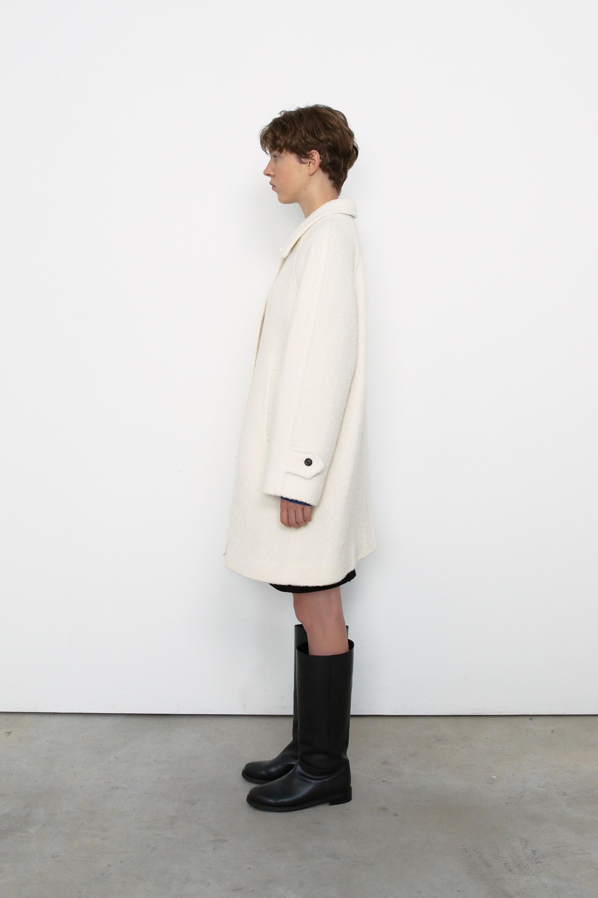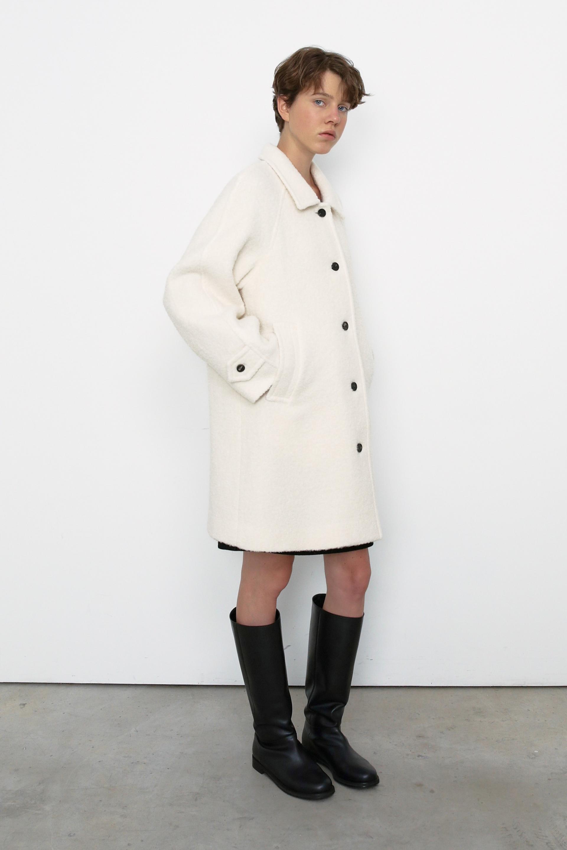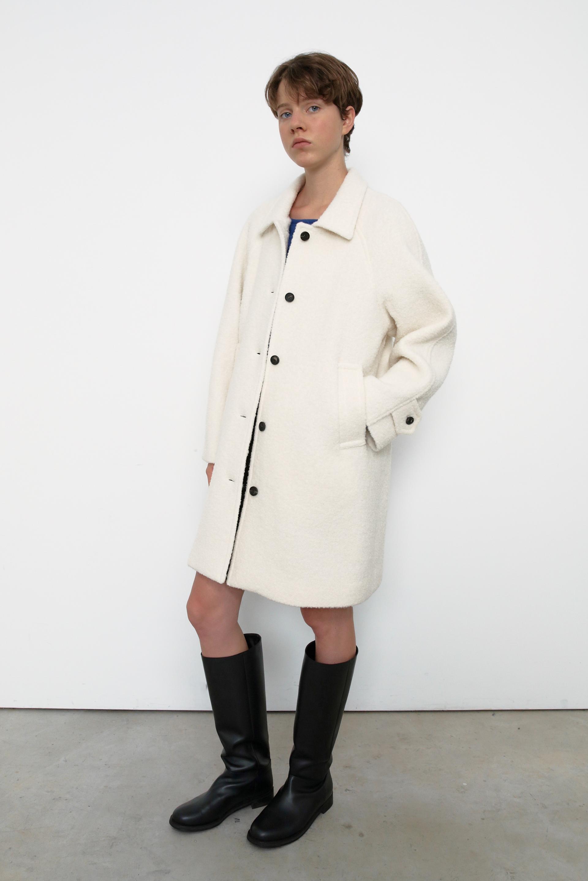 매력적인 겨울 소재의 부클 원단으로 제작된 하프 코트입니다.