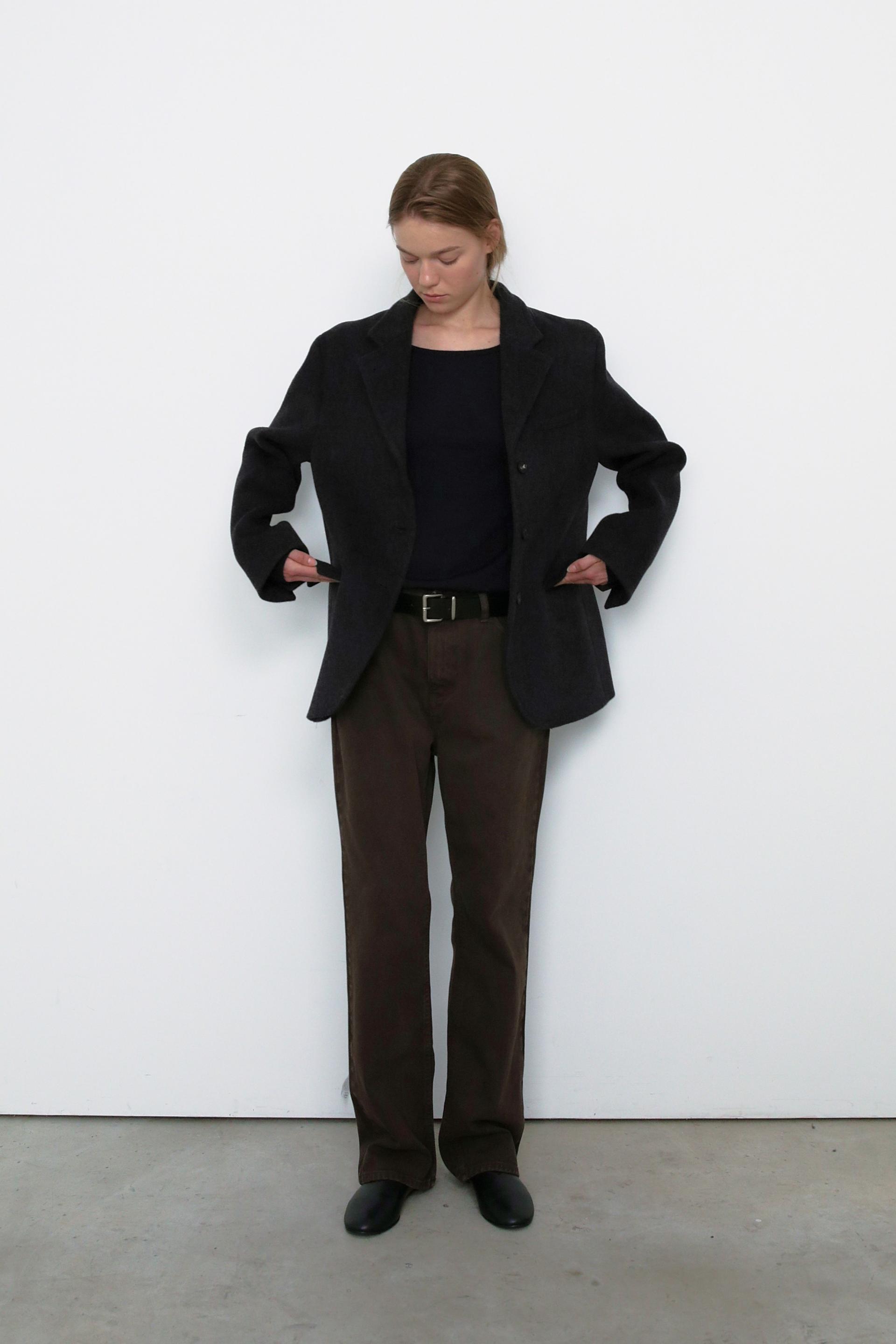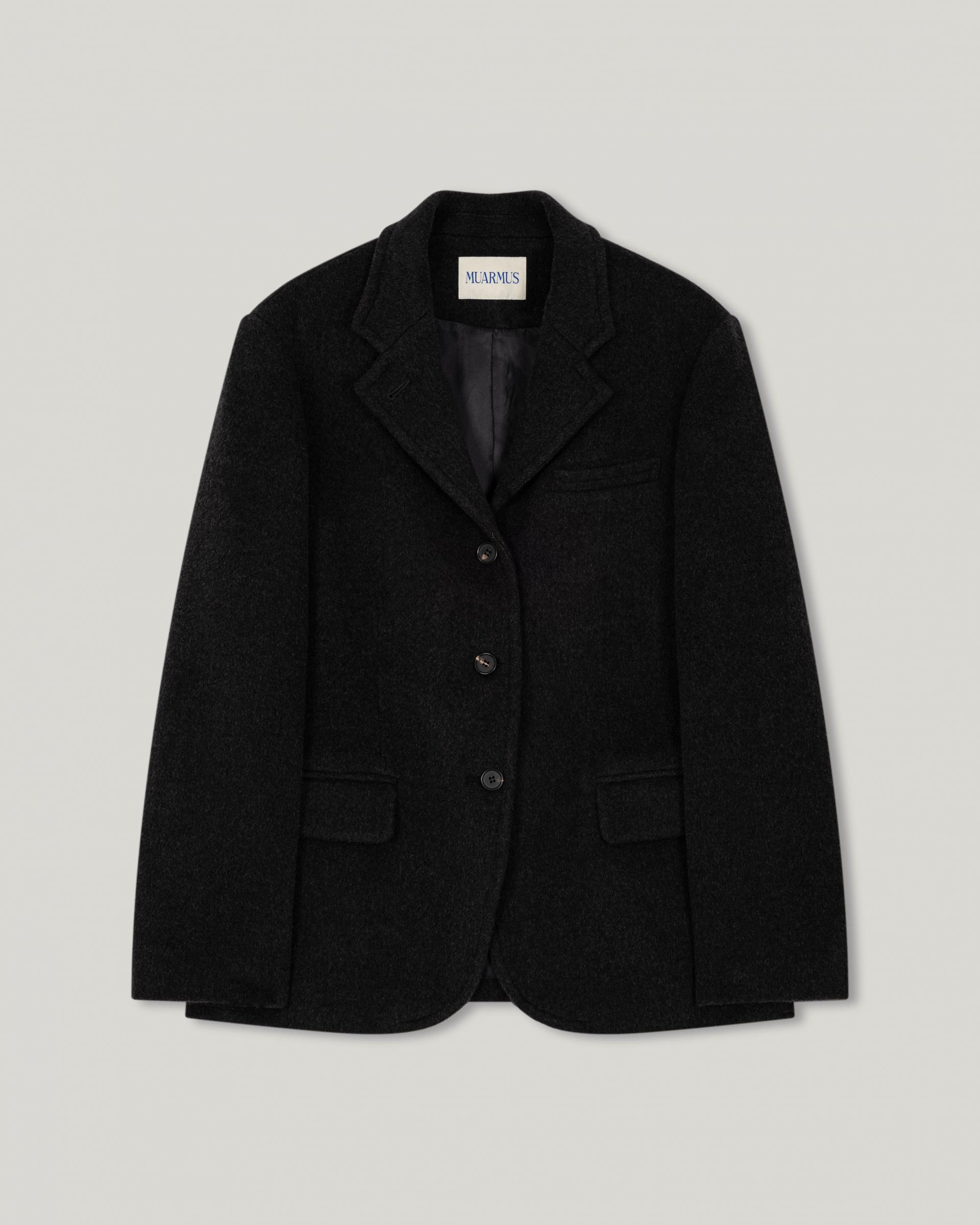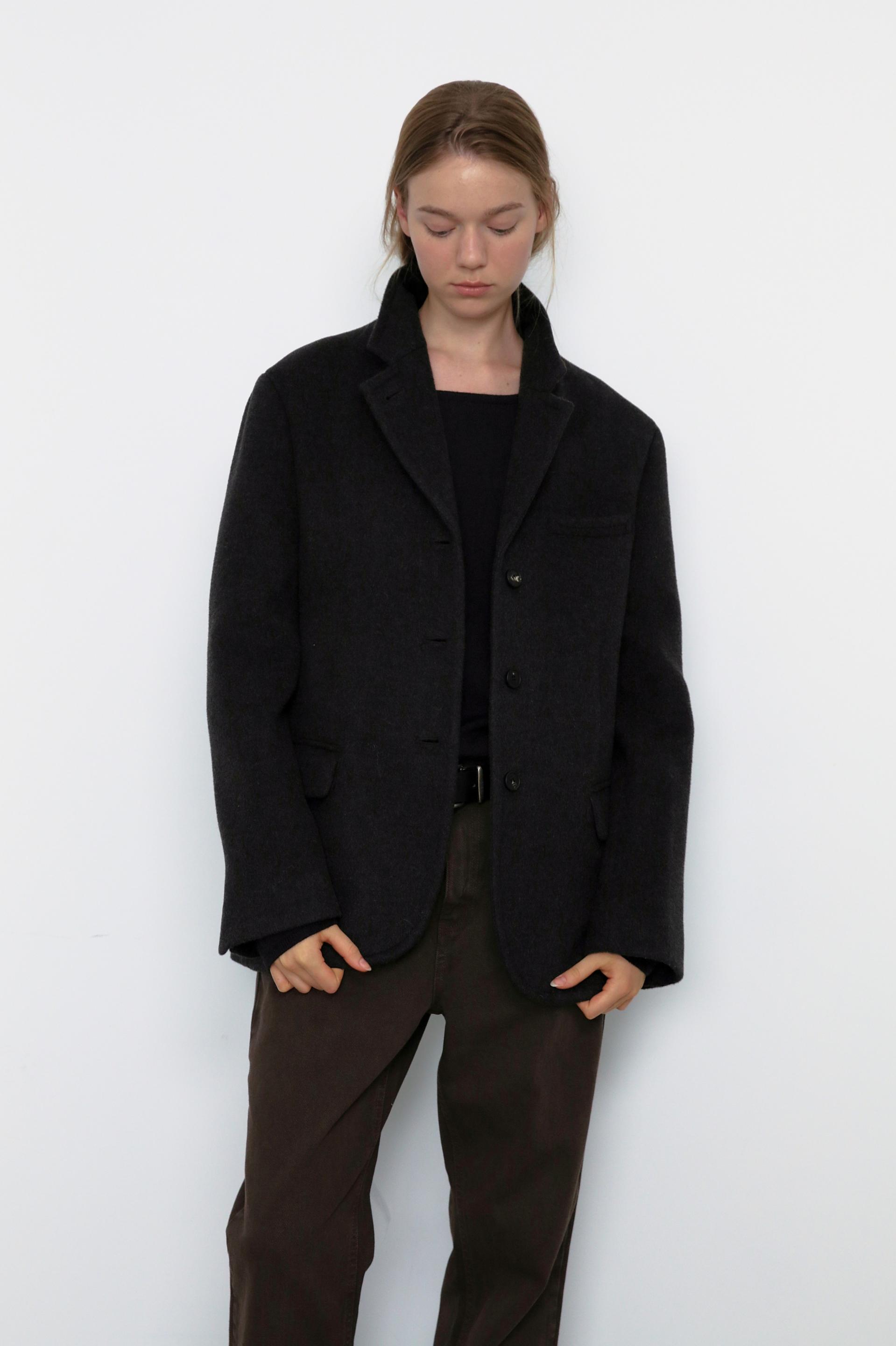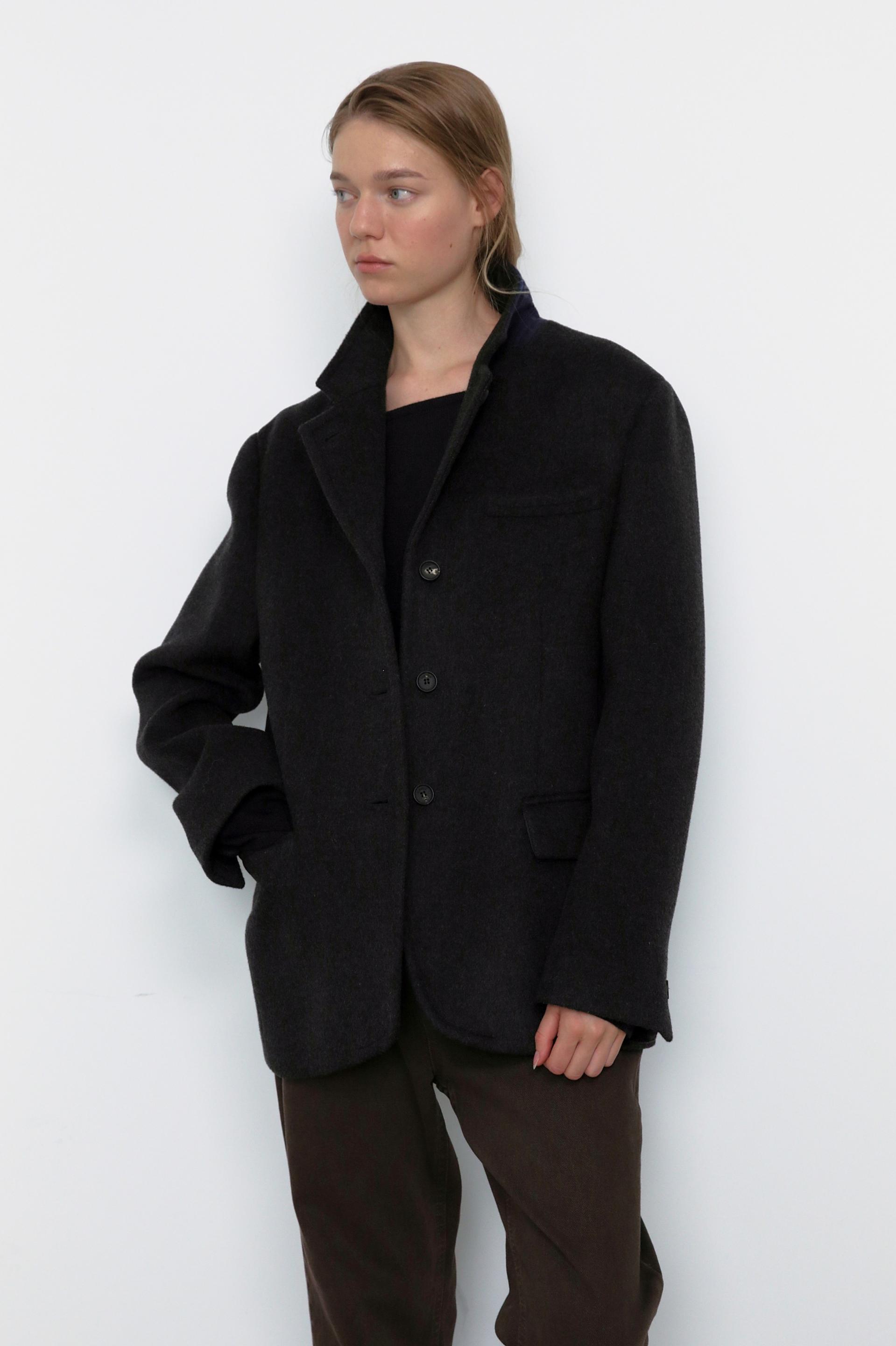 캐시미어가 함유된 하프 기장의 자켓으로, 부드러운 울 텍스쳐와 터치감을 자랑합니다.