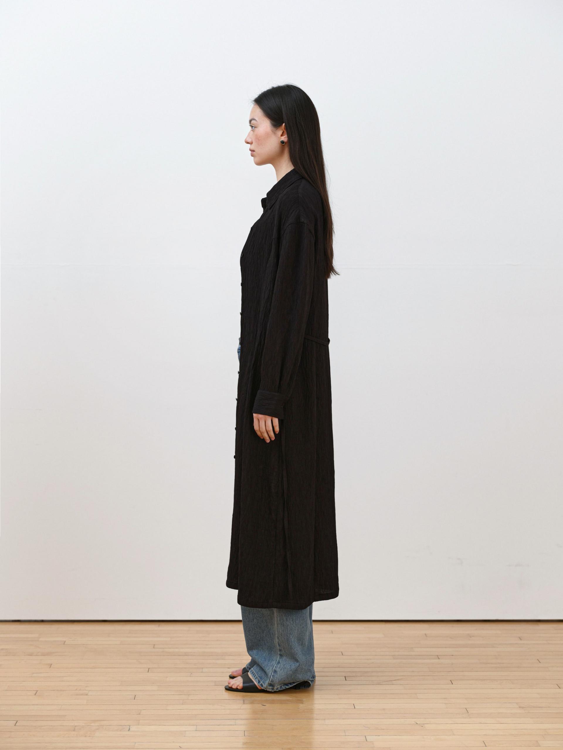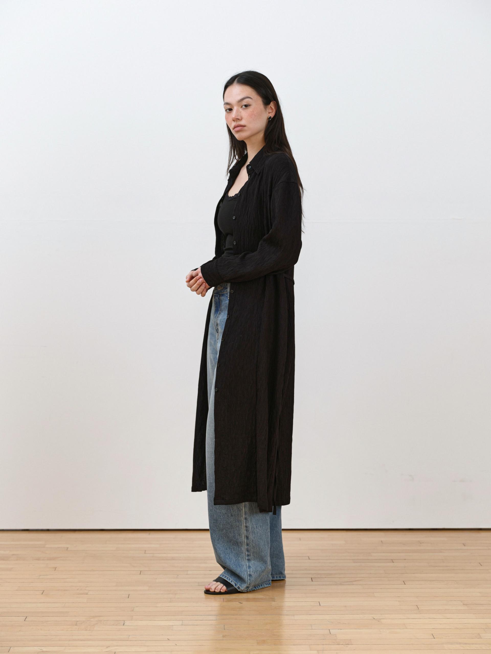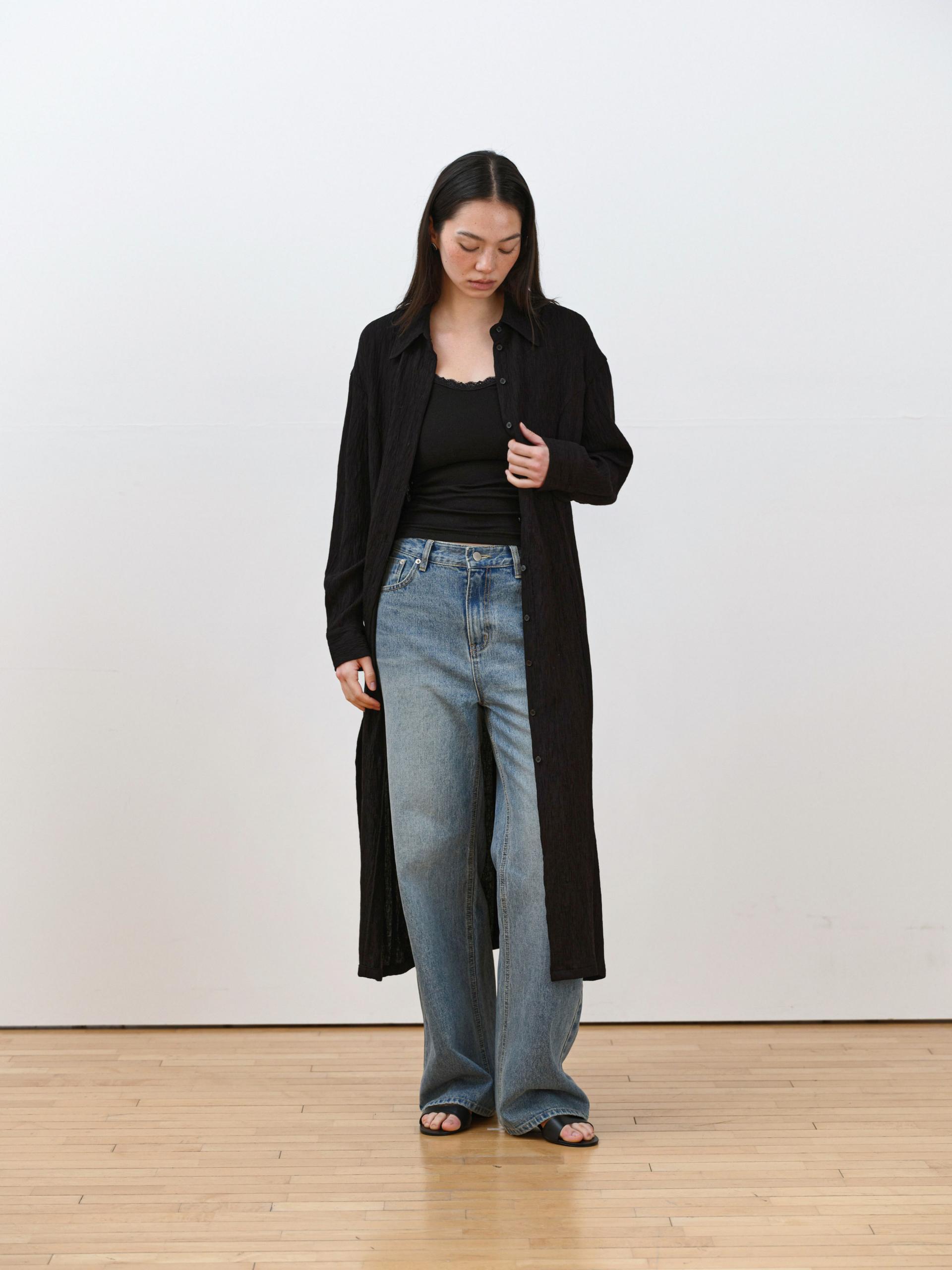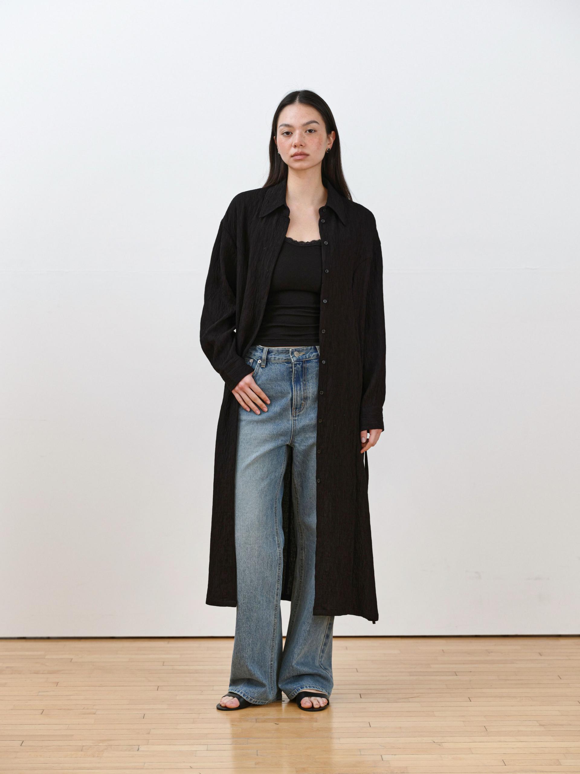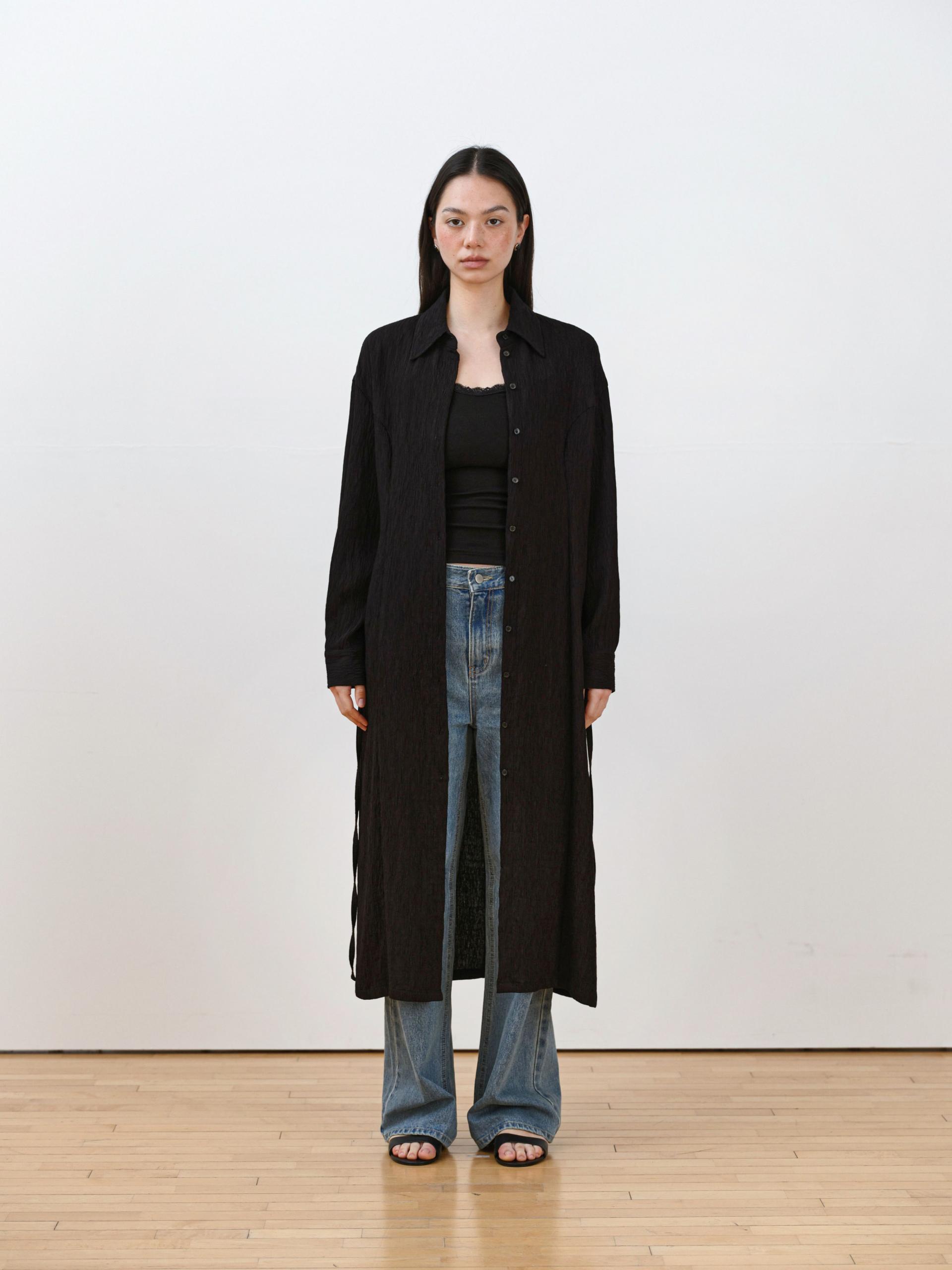 롱 셔츠처럼 단추 라인을 활용한 디자인이 전체 실루엣을 정리해주며,