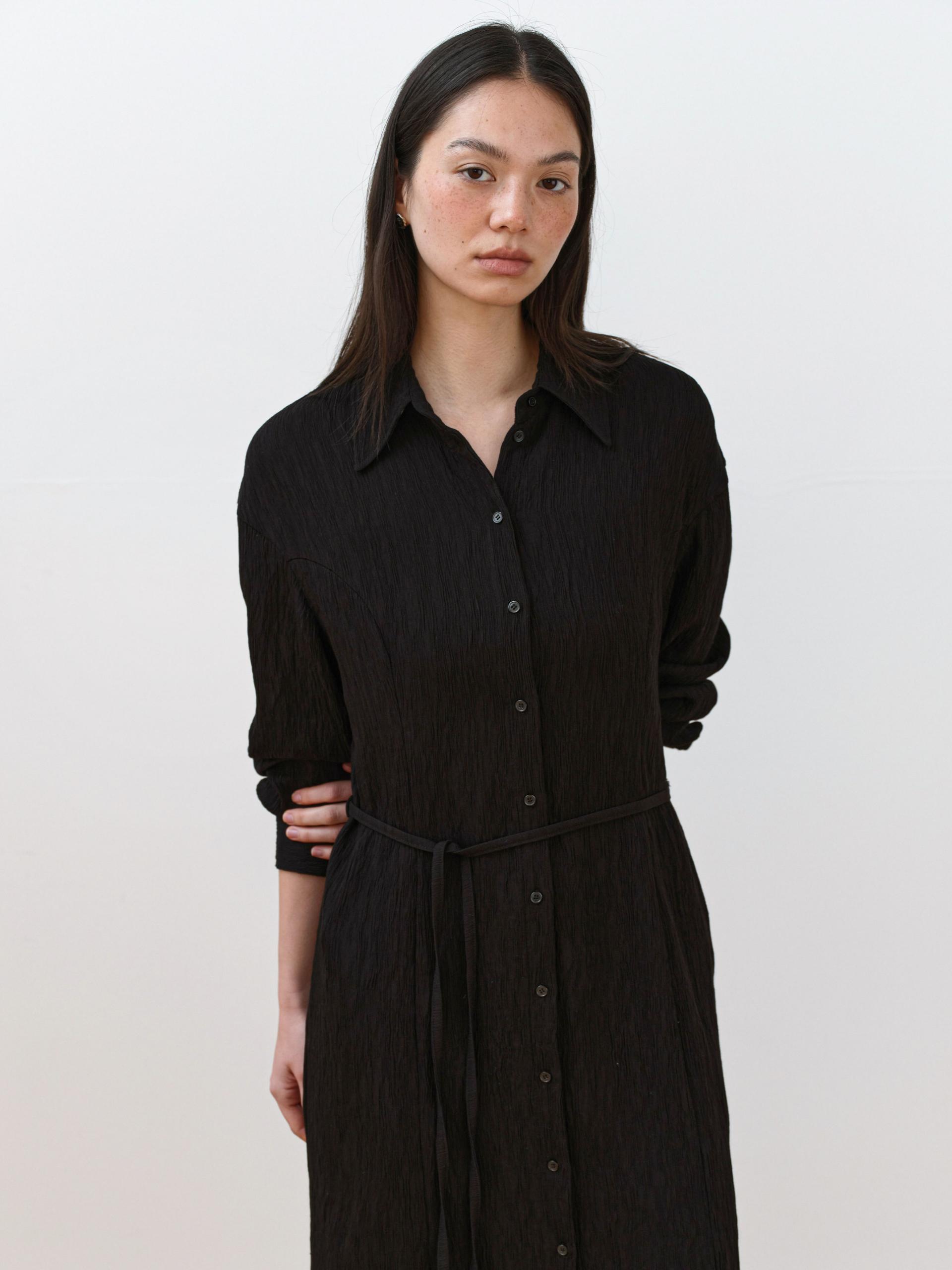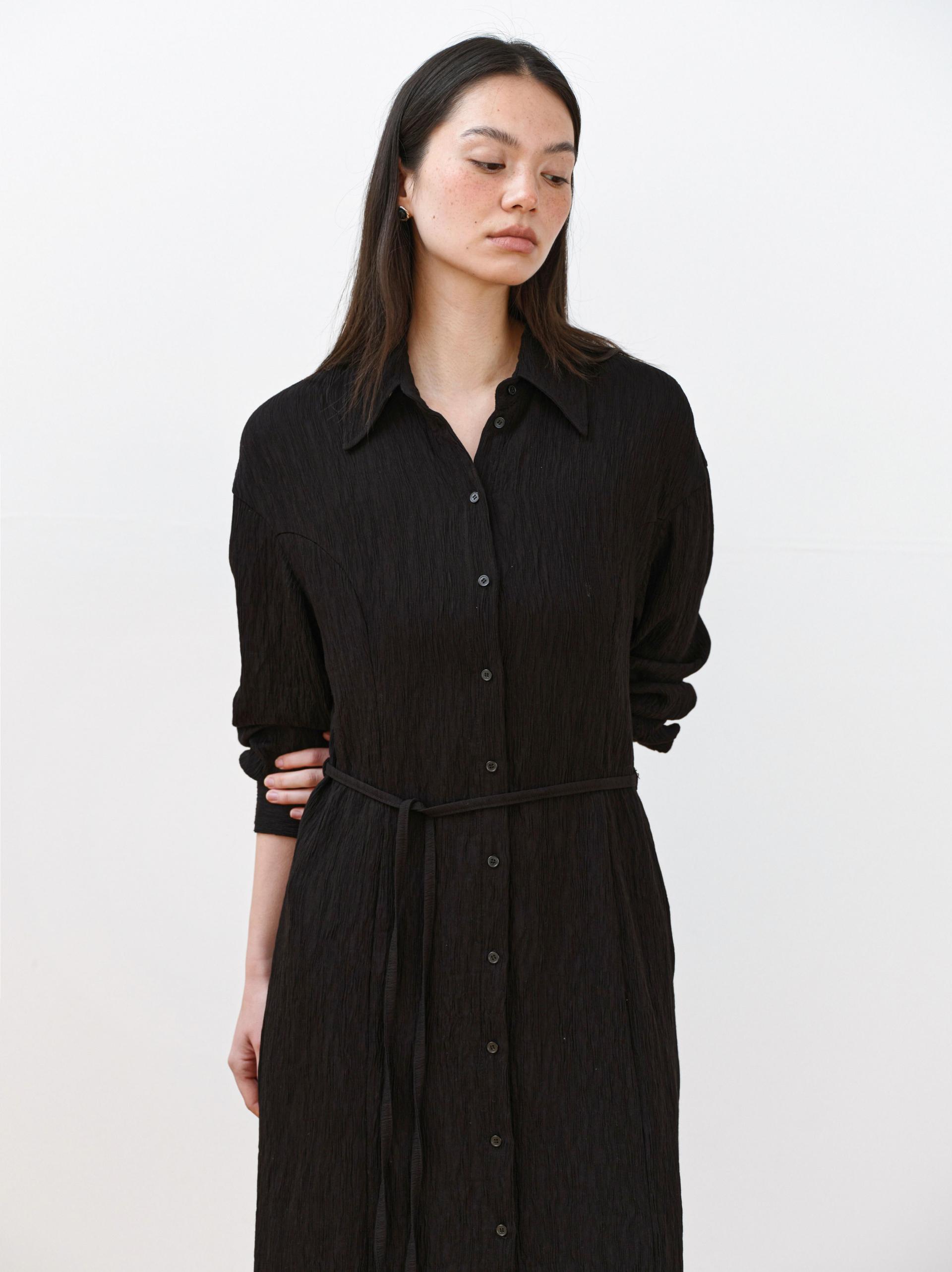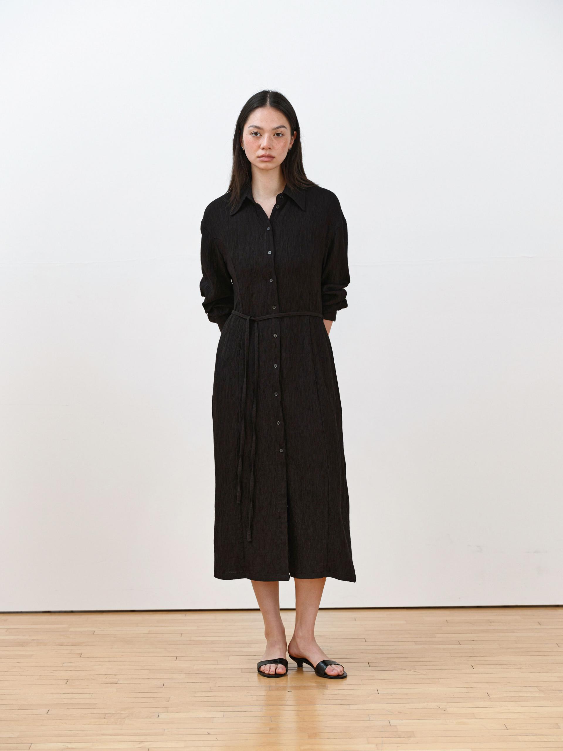 Mie Pleated Belted Dress [Black]TIME SALE