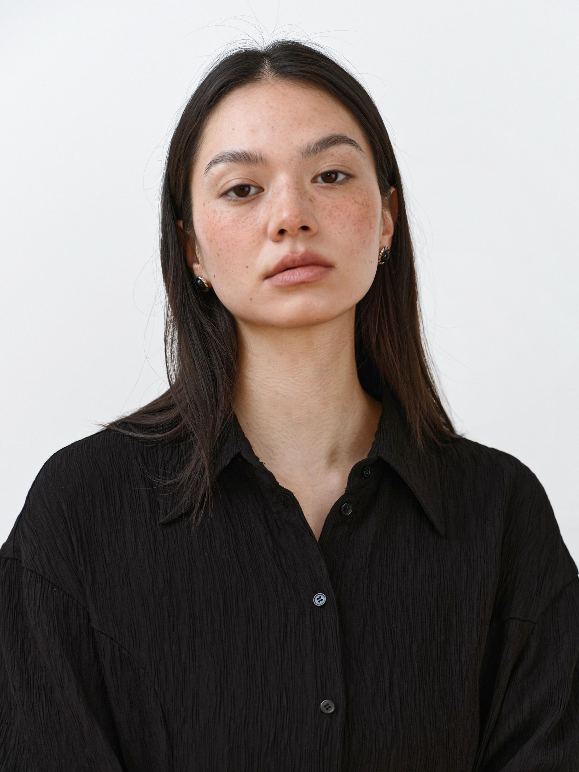 부드러운 텍스처와 플리츠 디테일이 조화를 이루어