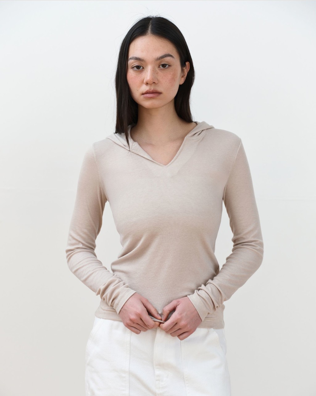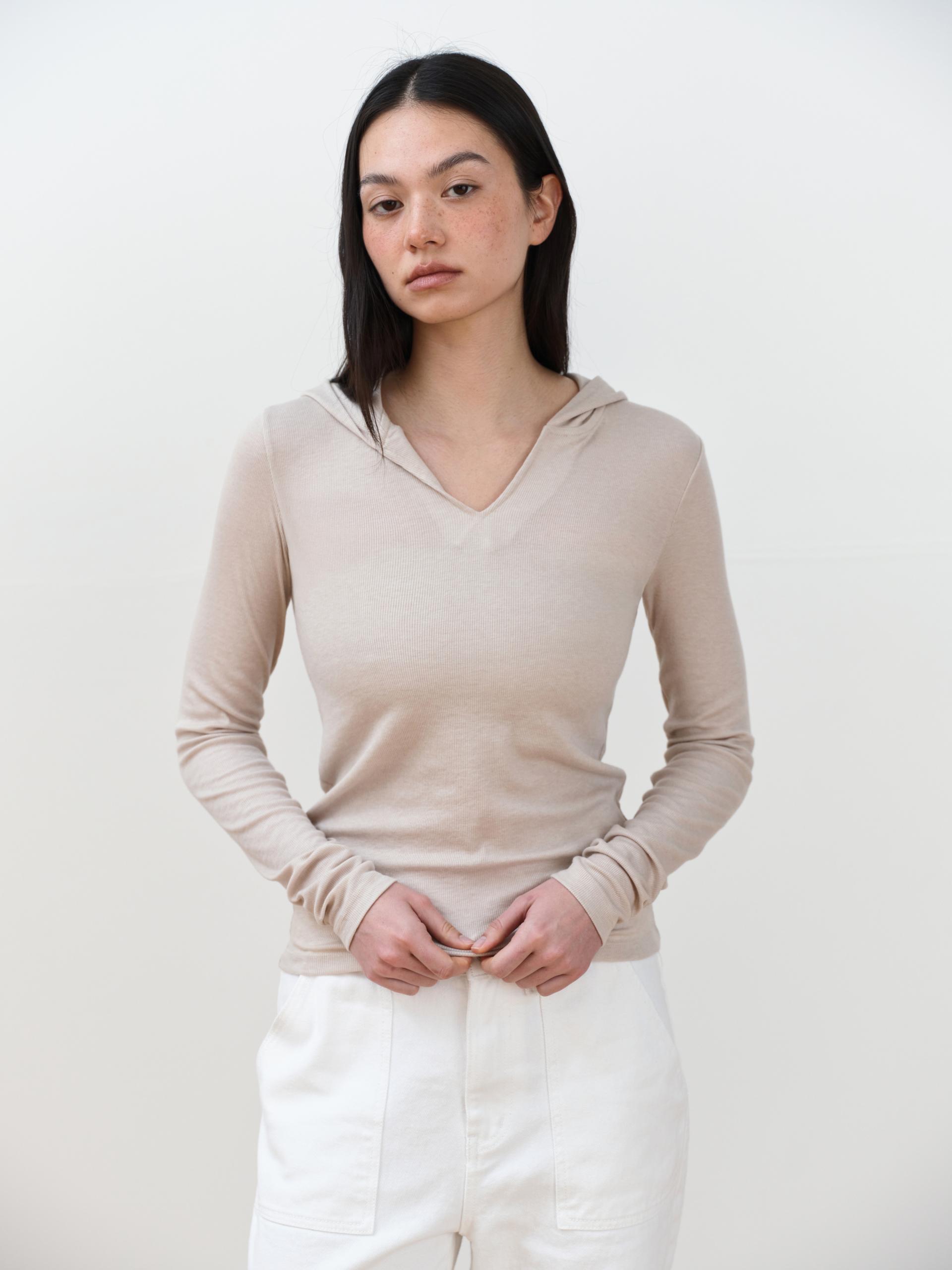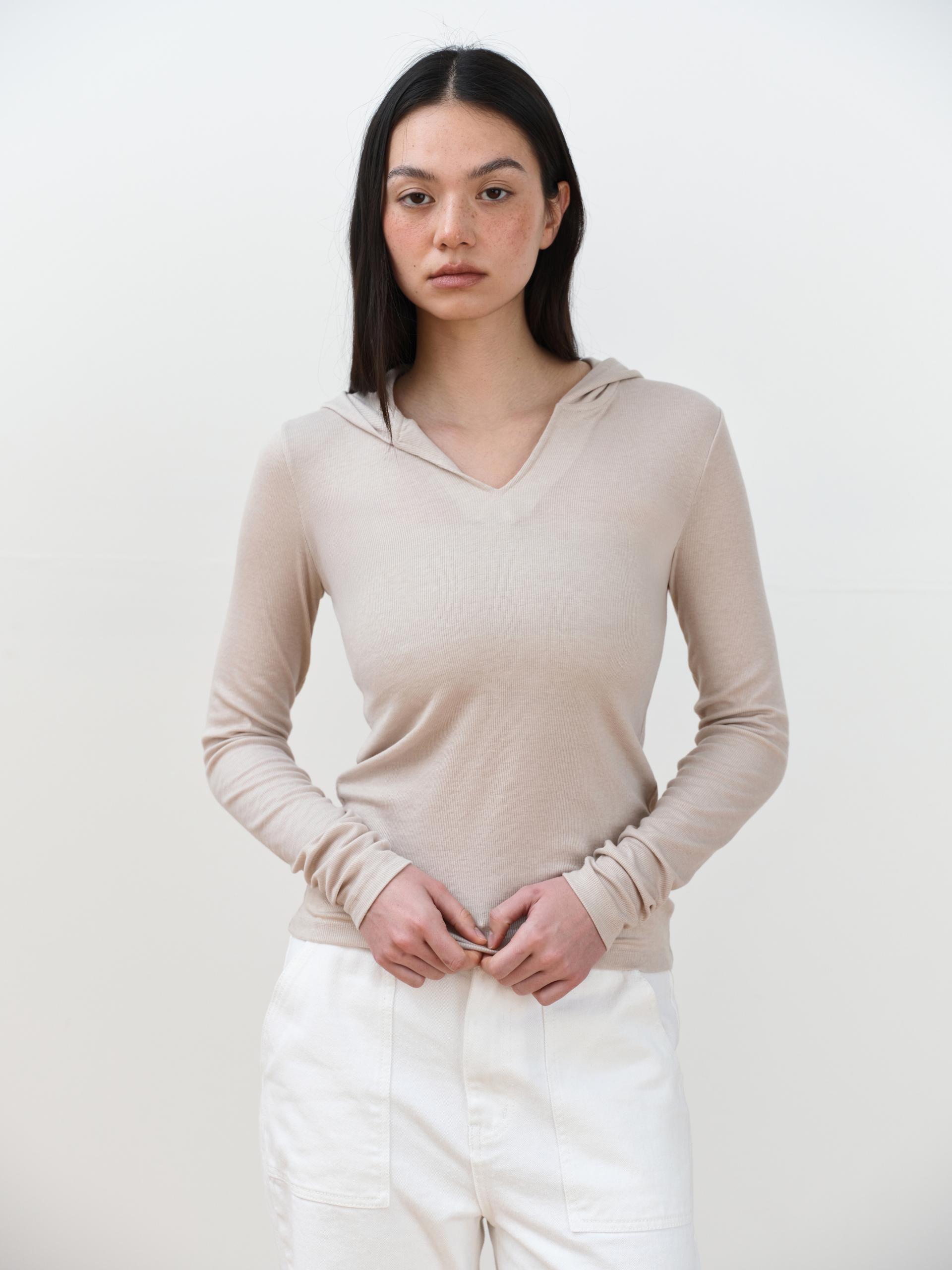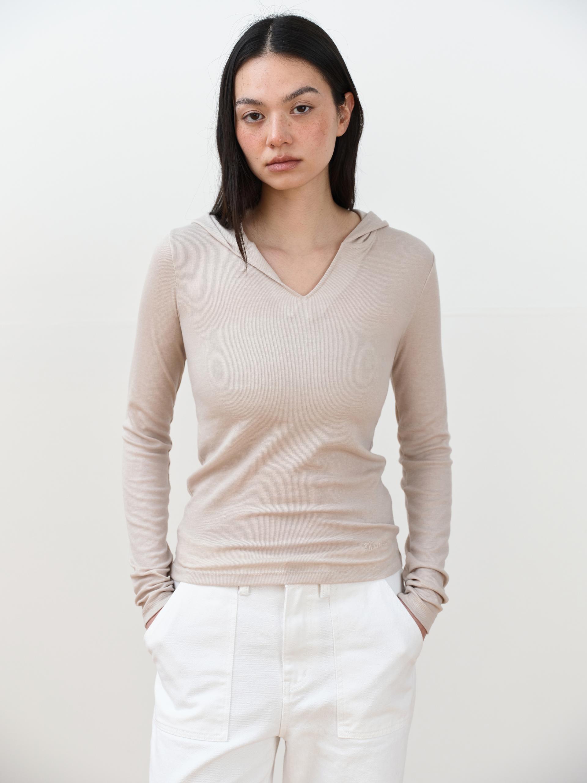 May V-Neck Hoodie [Begie]TIME SALE