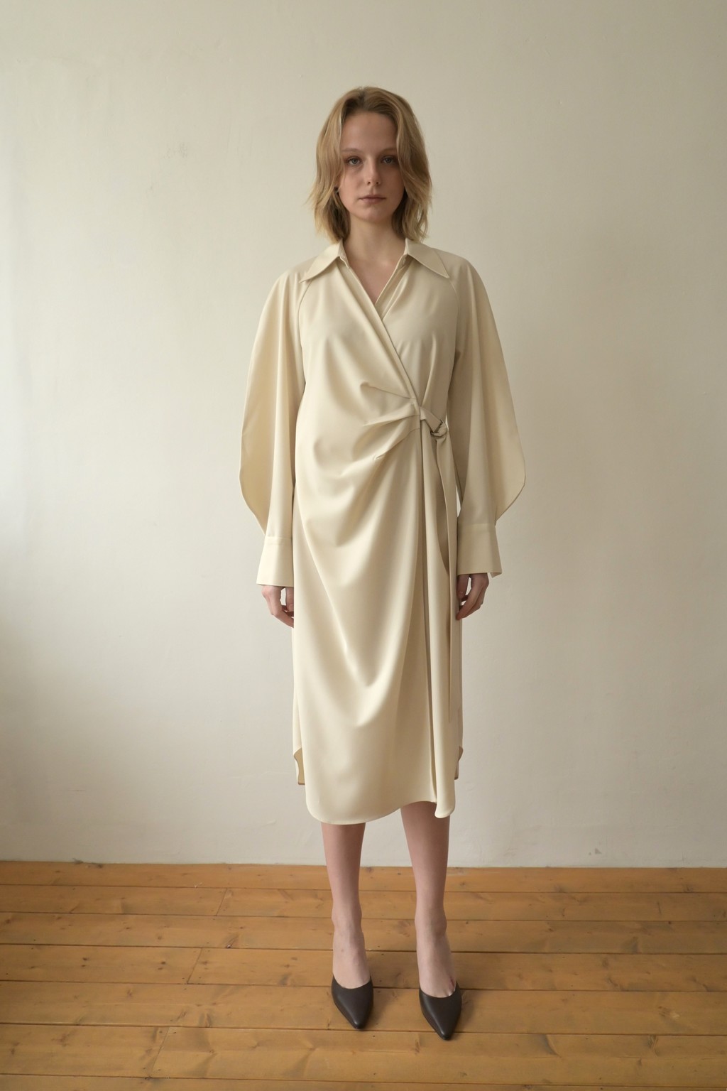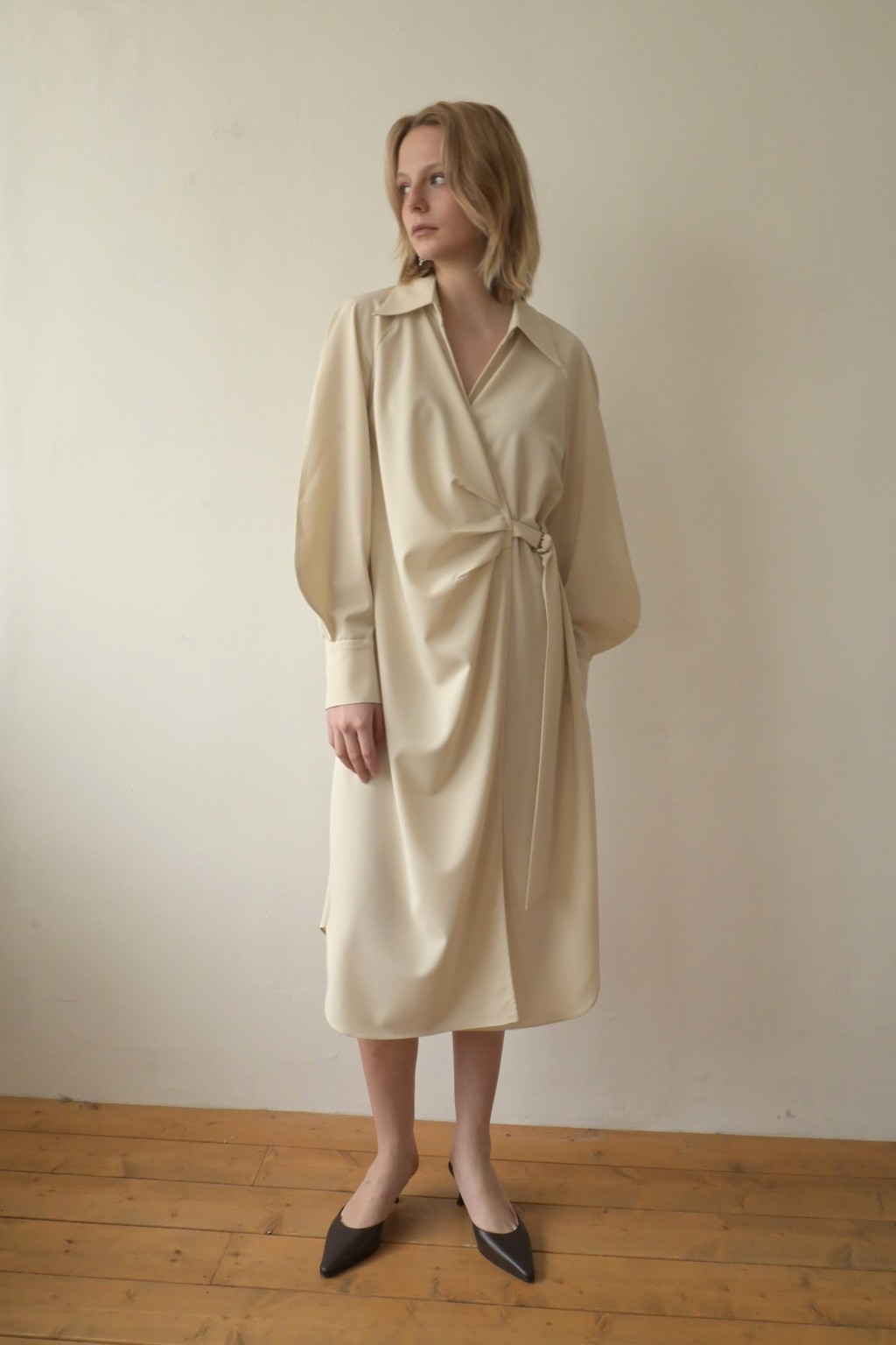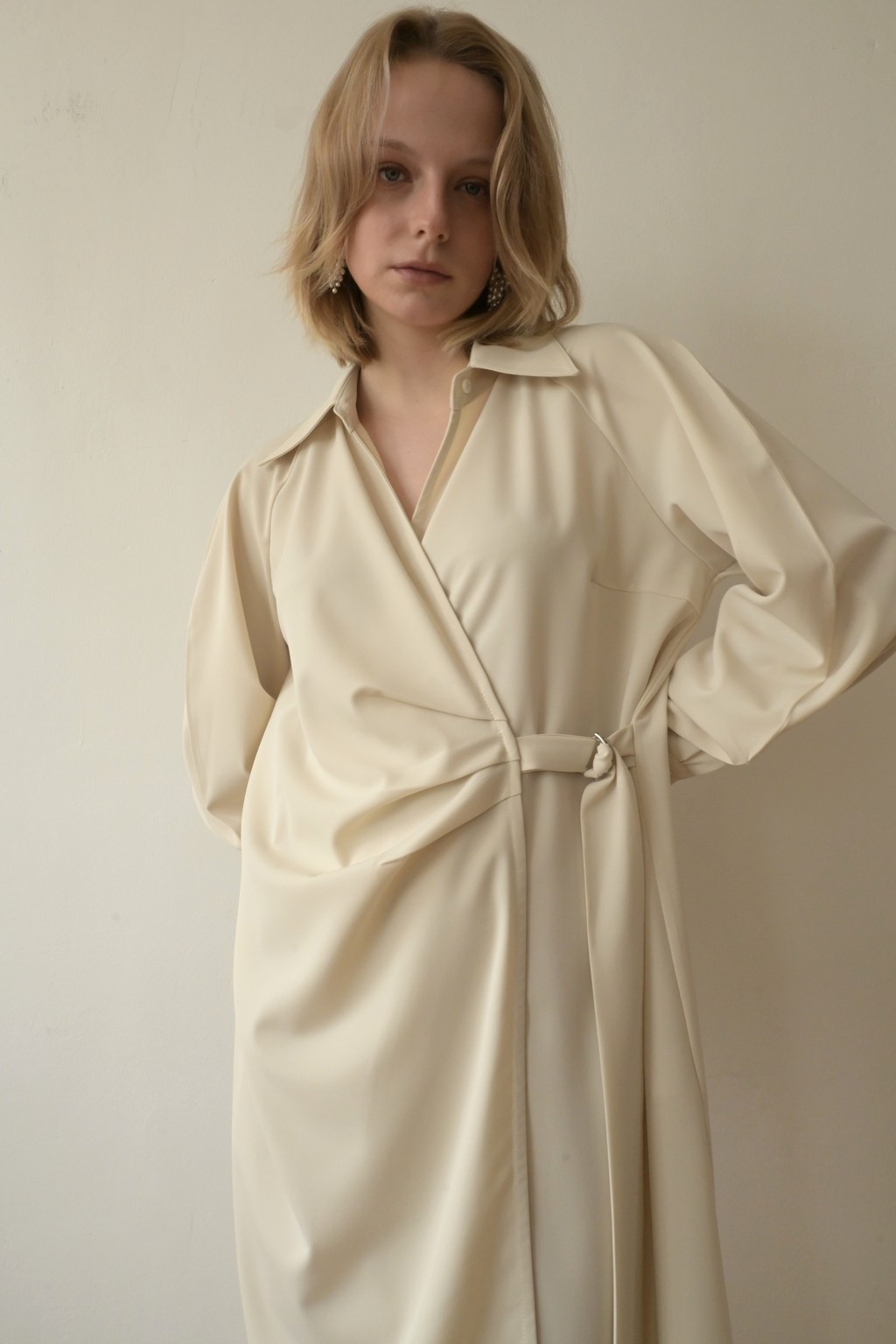 미색감이 돋보이는 V-NECK 랩 원피스입니다.
