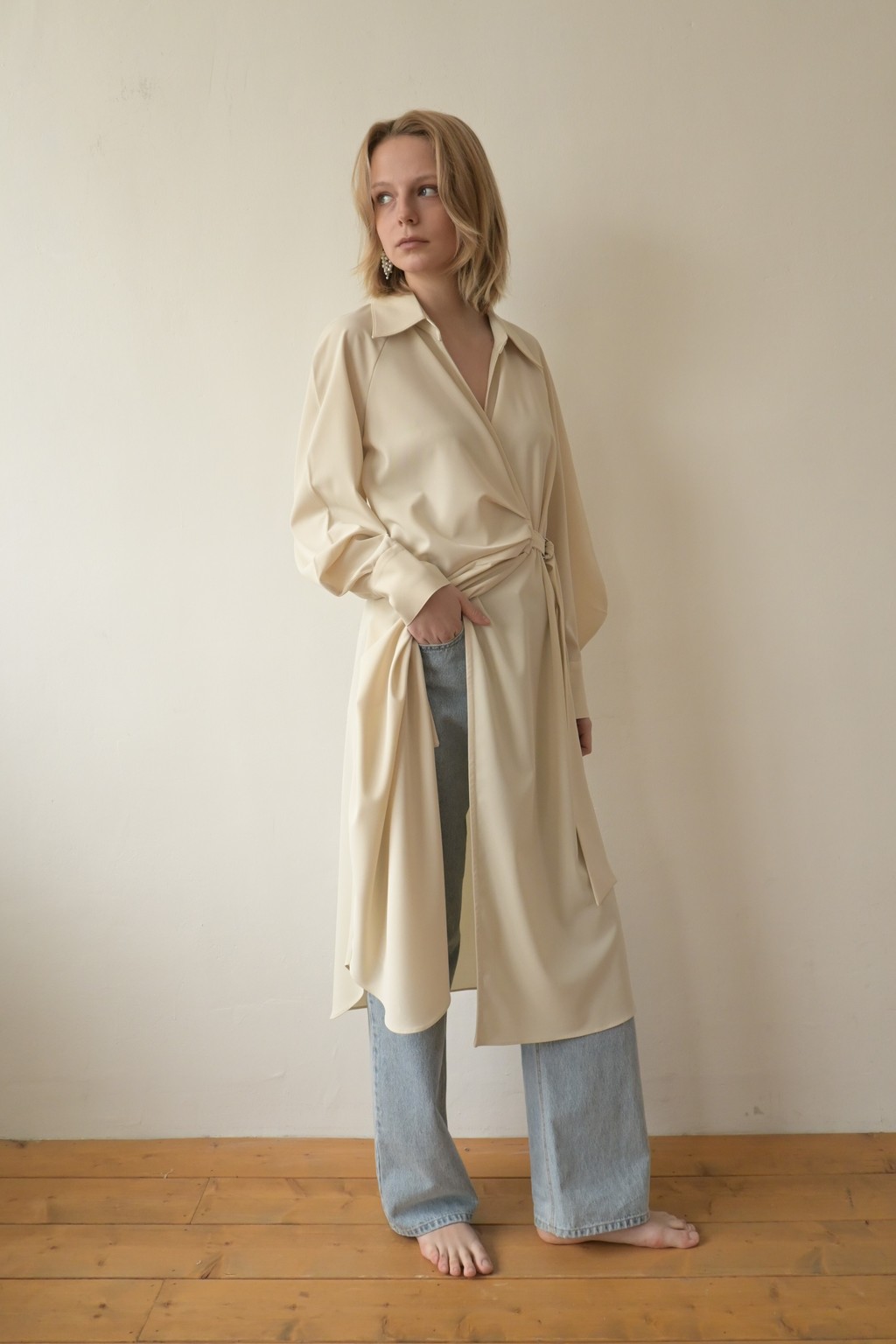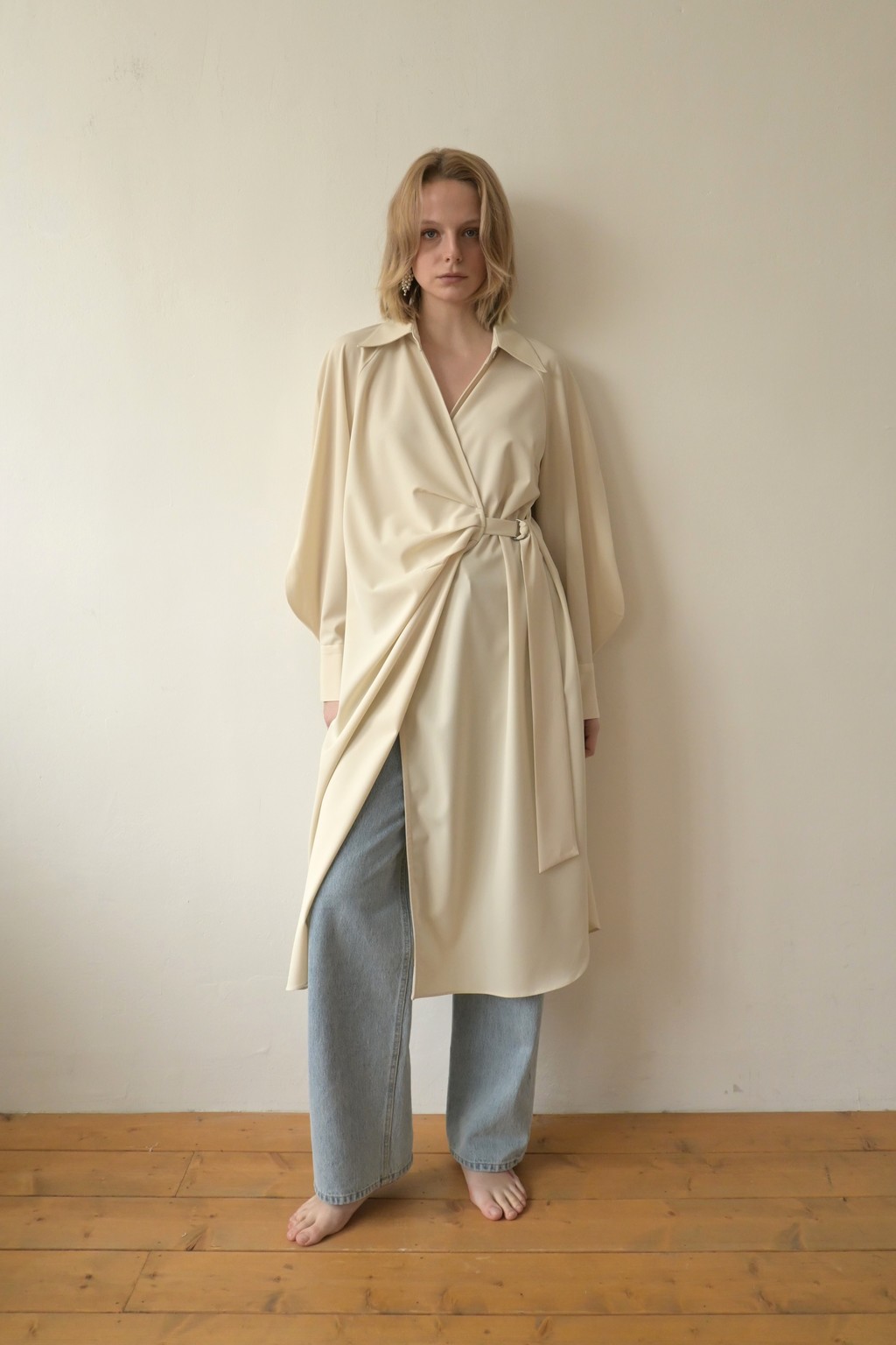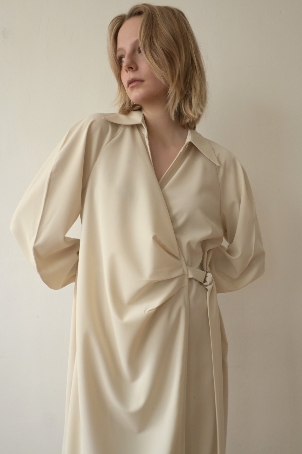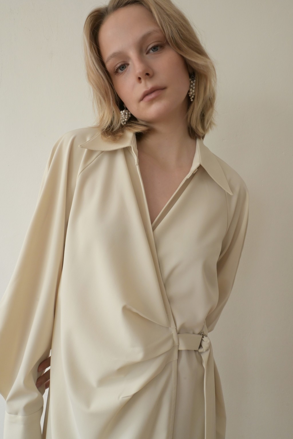 미색감이 돋보이는 V-NECK 랩 원피스입니다.