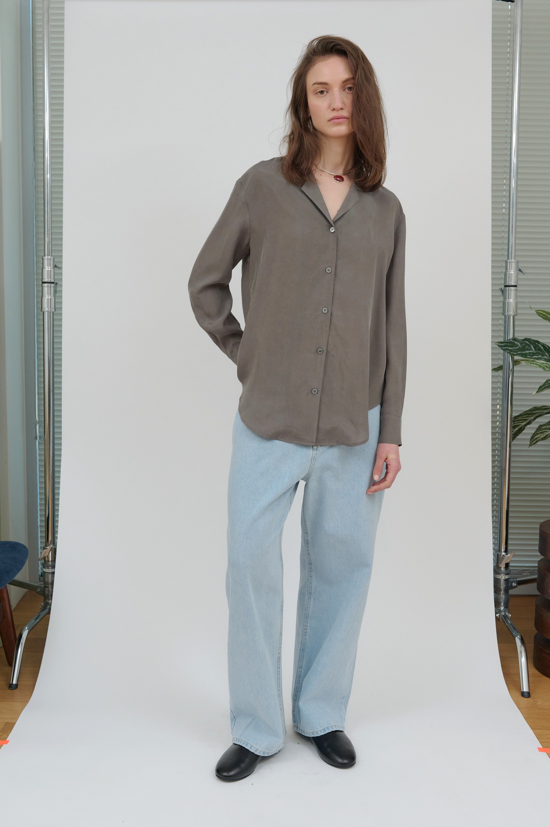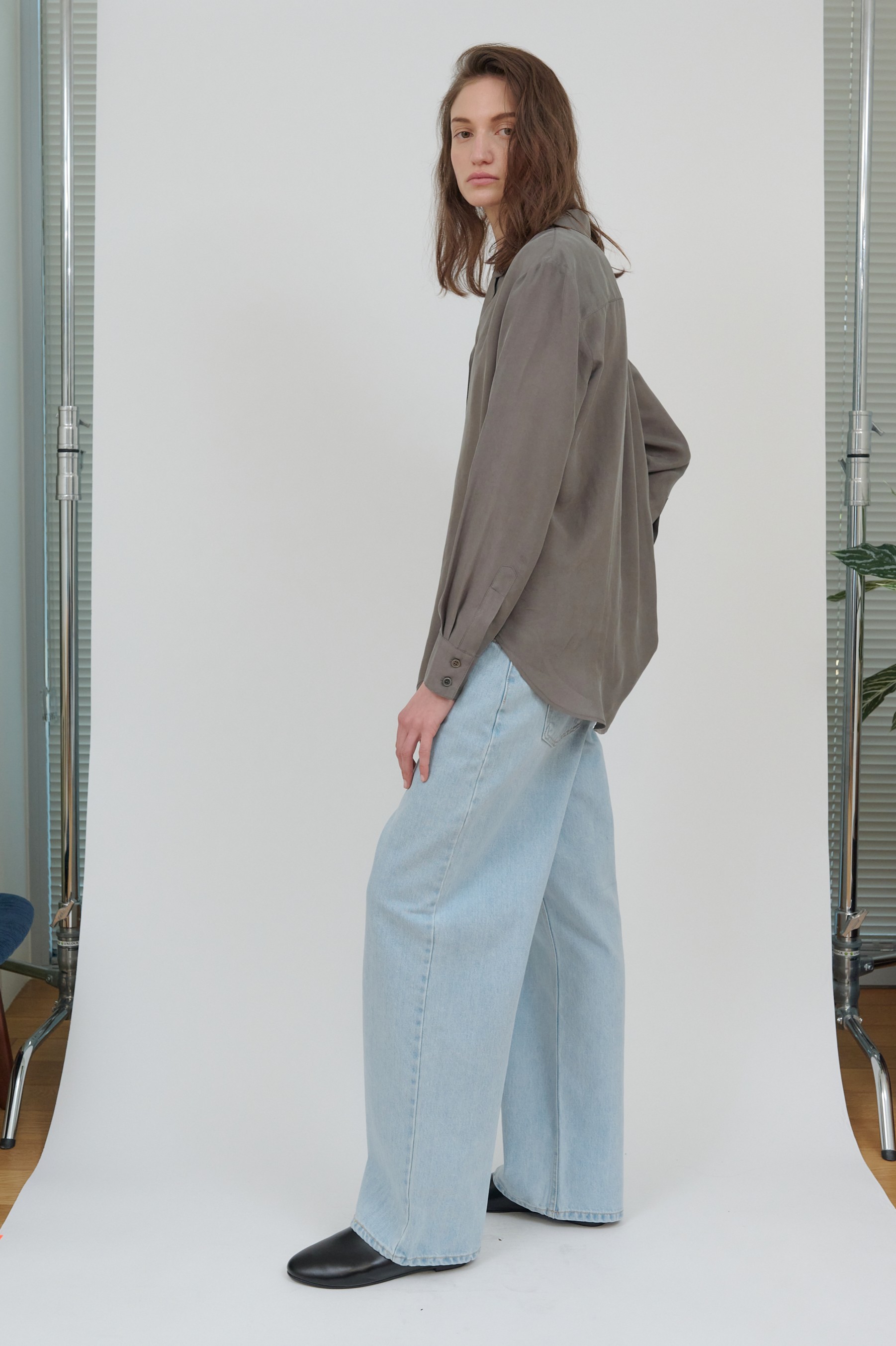 비침이 없고 원단의 무게감으로 인한 흐르는 실루엣이 고급스러움을 더 해 줍니다.