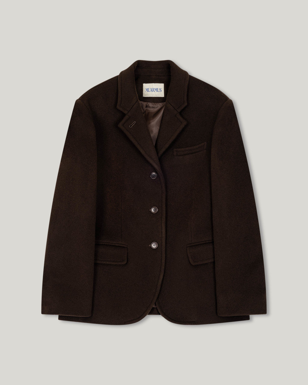 캐시미어가 함유된 하프 기장의 자켓으로, 부드러운 울 텍스쳐와 터치감을 자랑합니다.
