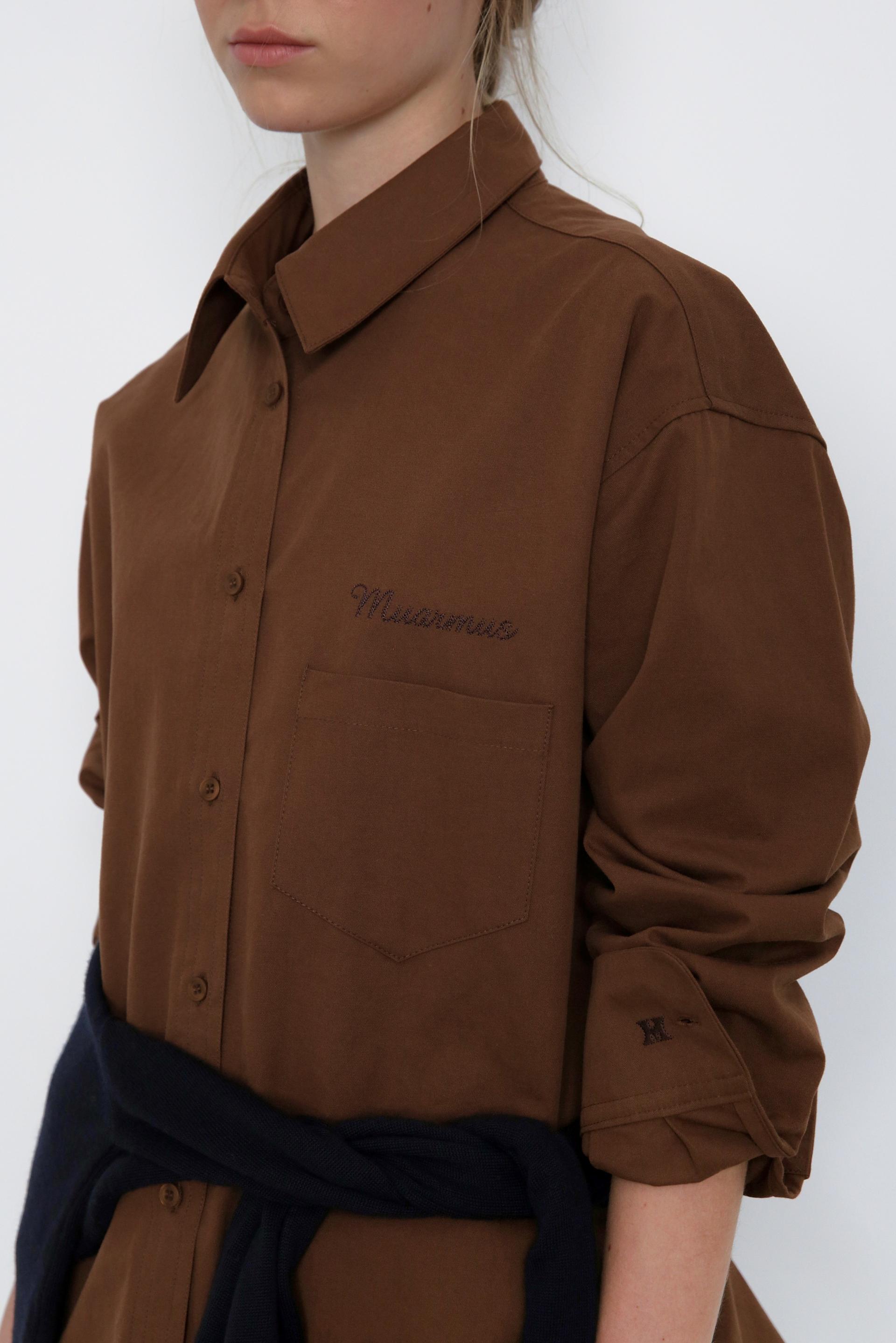 핸들기법의 레터링 자수와 커프스에 로고 디테일이 돋보이는 셔츠입니다.