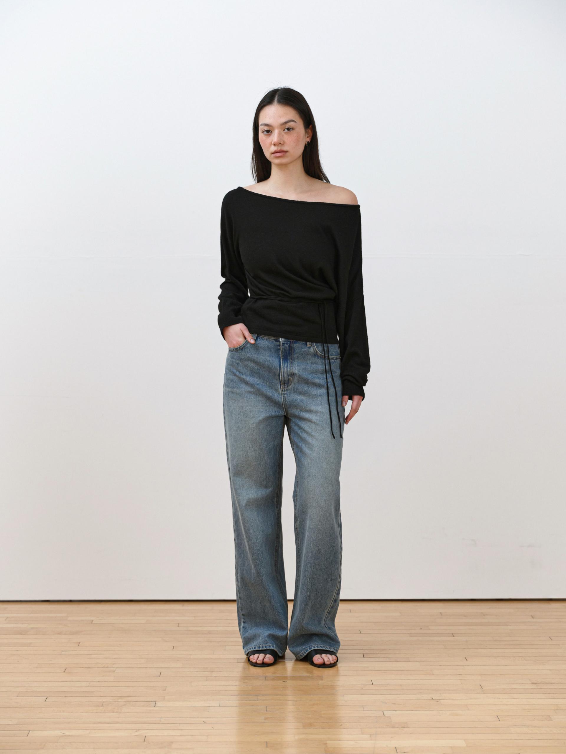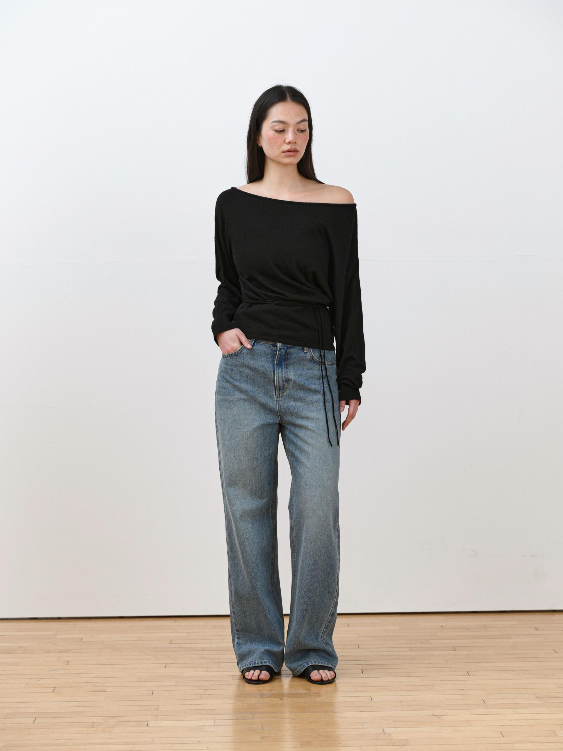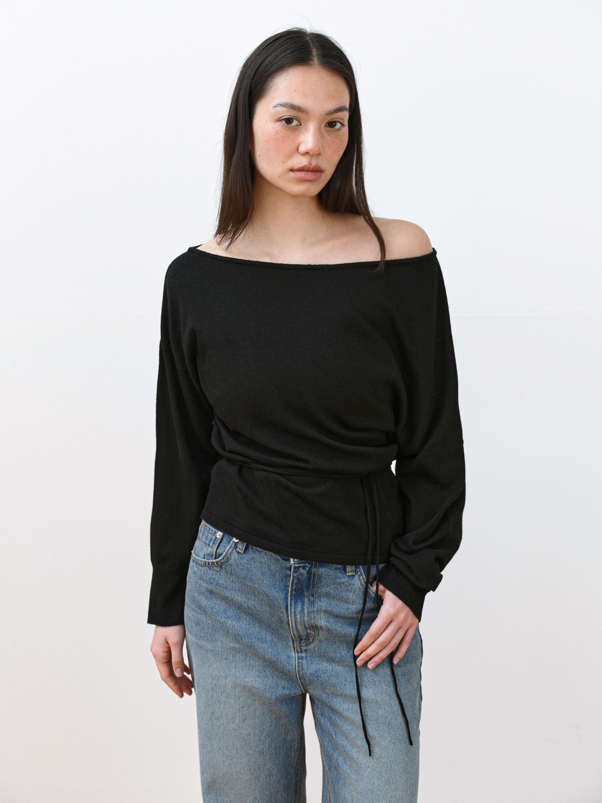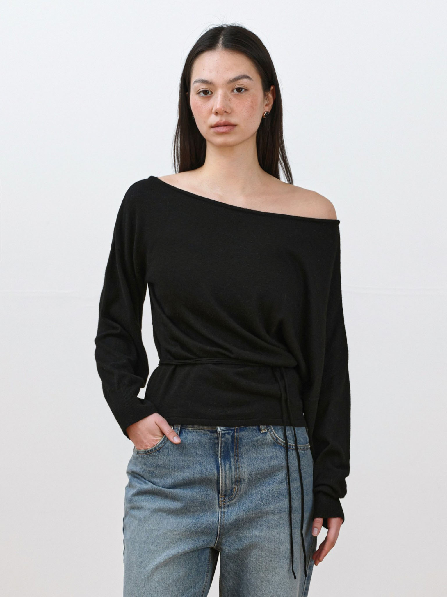 Cerin Off-shoulder Belted Knit [Black] (2/25 이후 순차 배송)TIME SALE