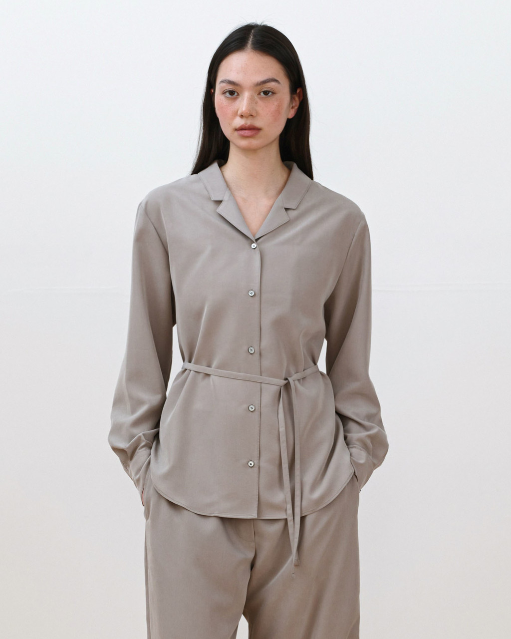 Dinah Belted Blouse [Ash Beige]TIME SALE