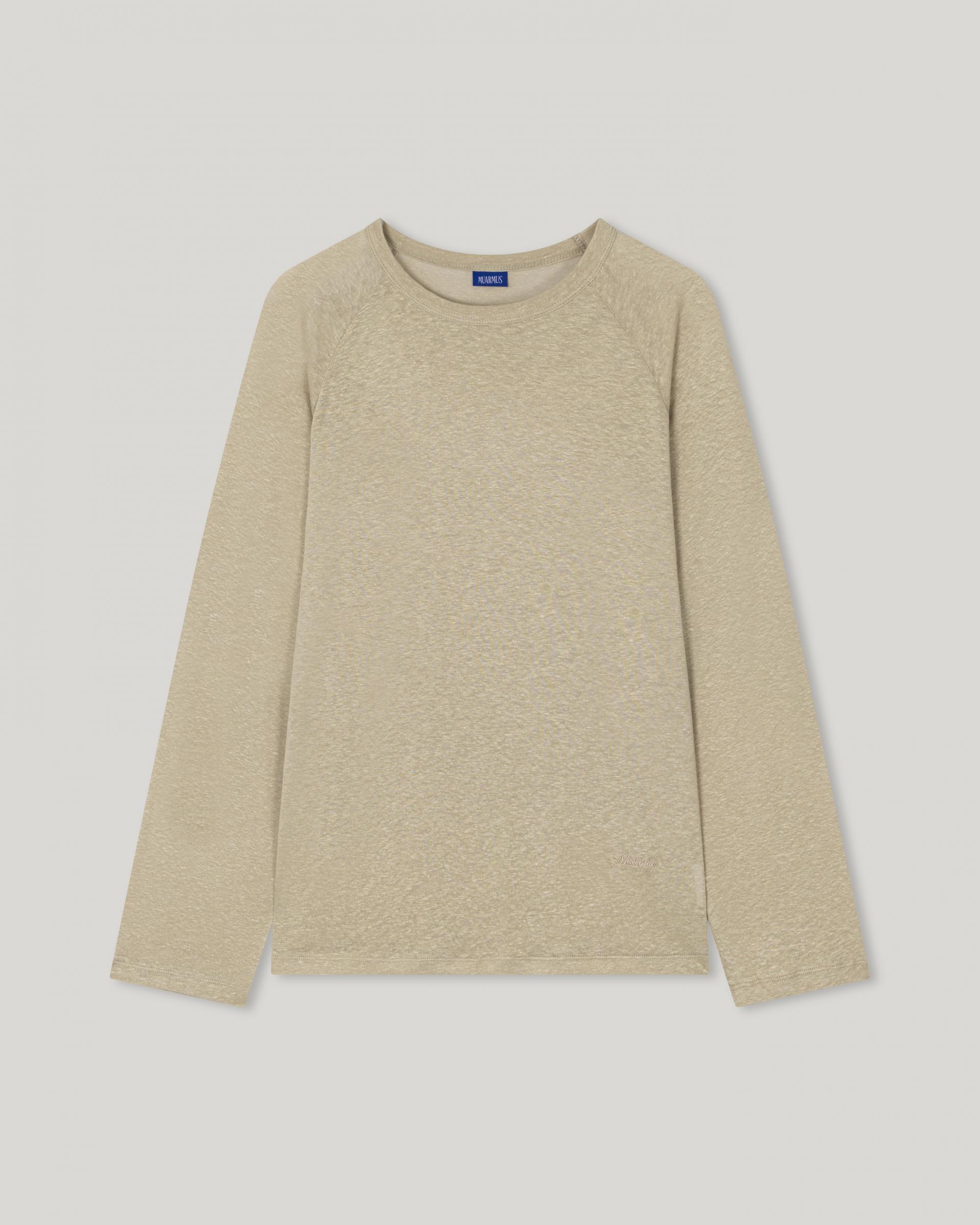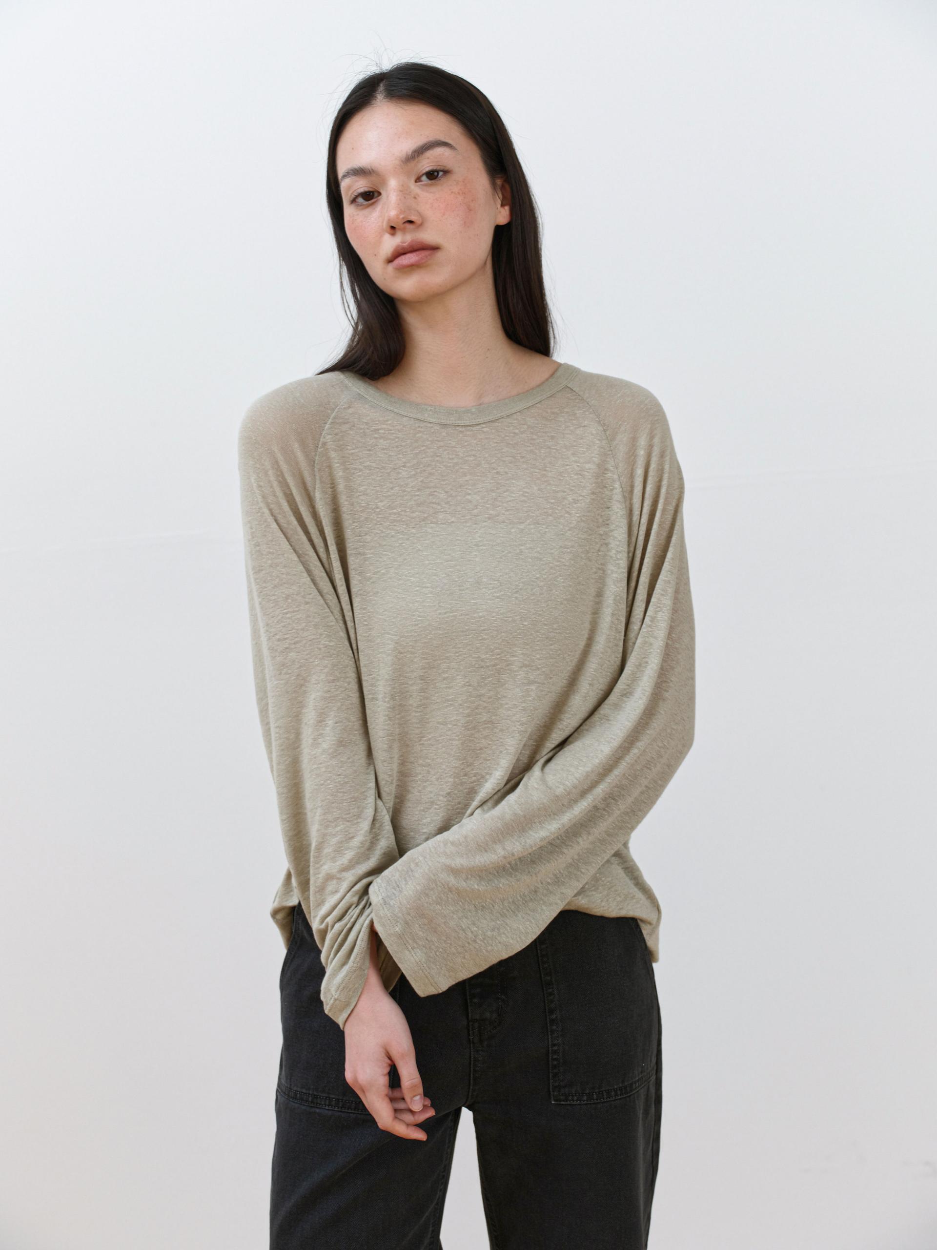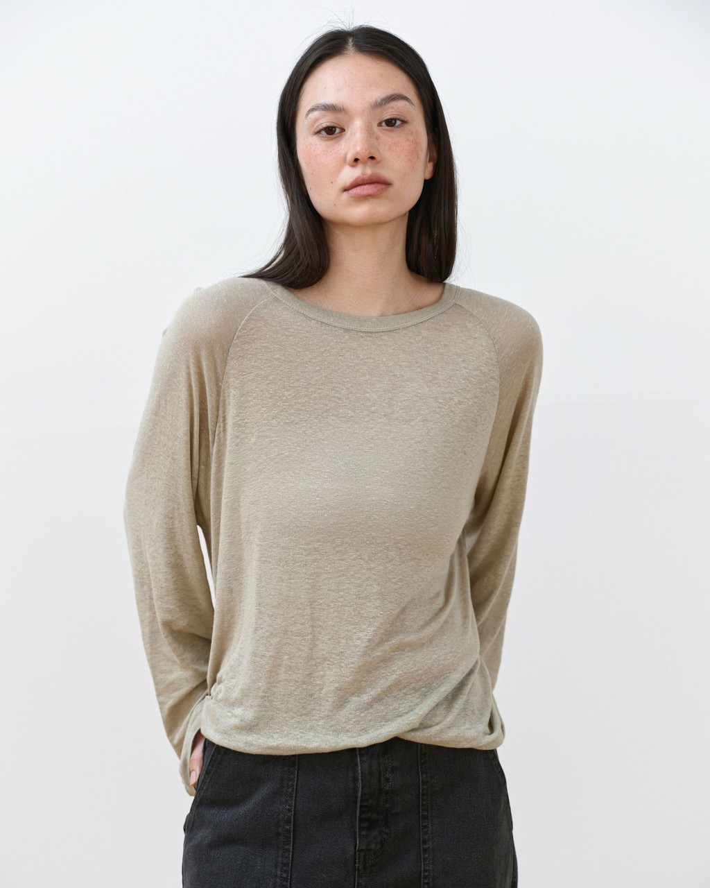 자연스럽게 비치는 시어 텍스처와 통기성 좋은 린넨 소재감이 돋보이는 나그랑 티셔츠입니다.