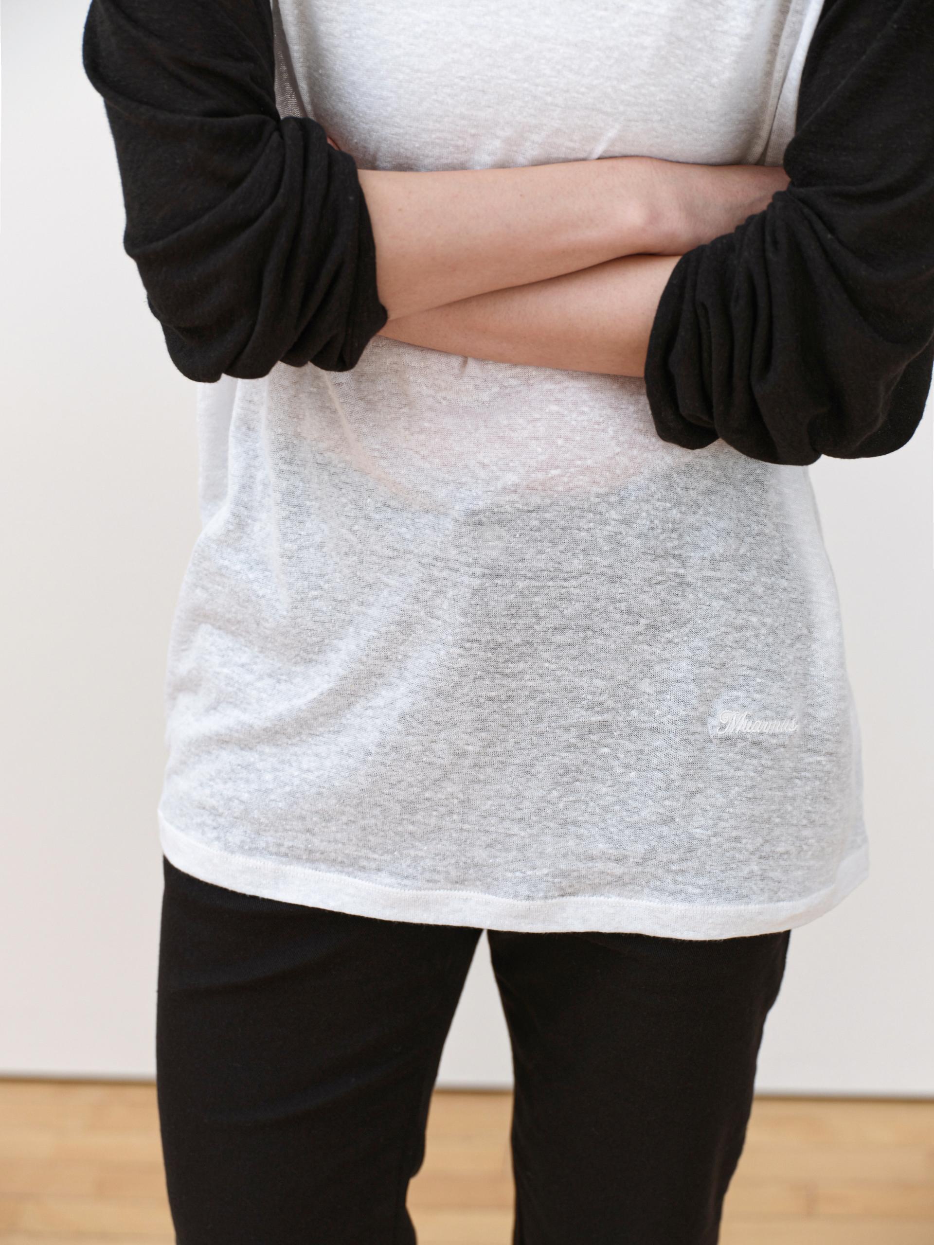 자연스럽게 비치는 시어 텍스처와 통기성 좋은 린넨 소재감이 돋보이는 나그랑 티셔츠입니다.