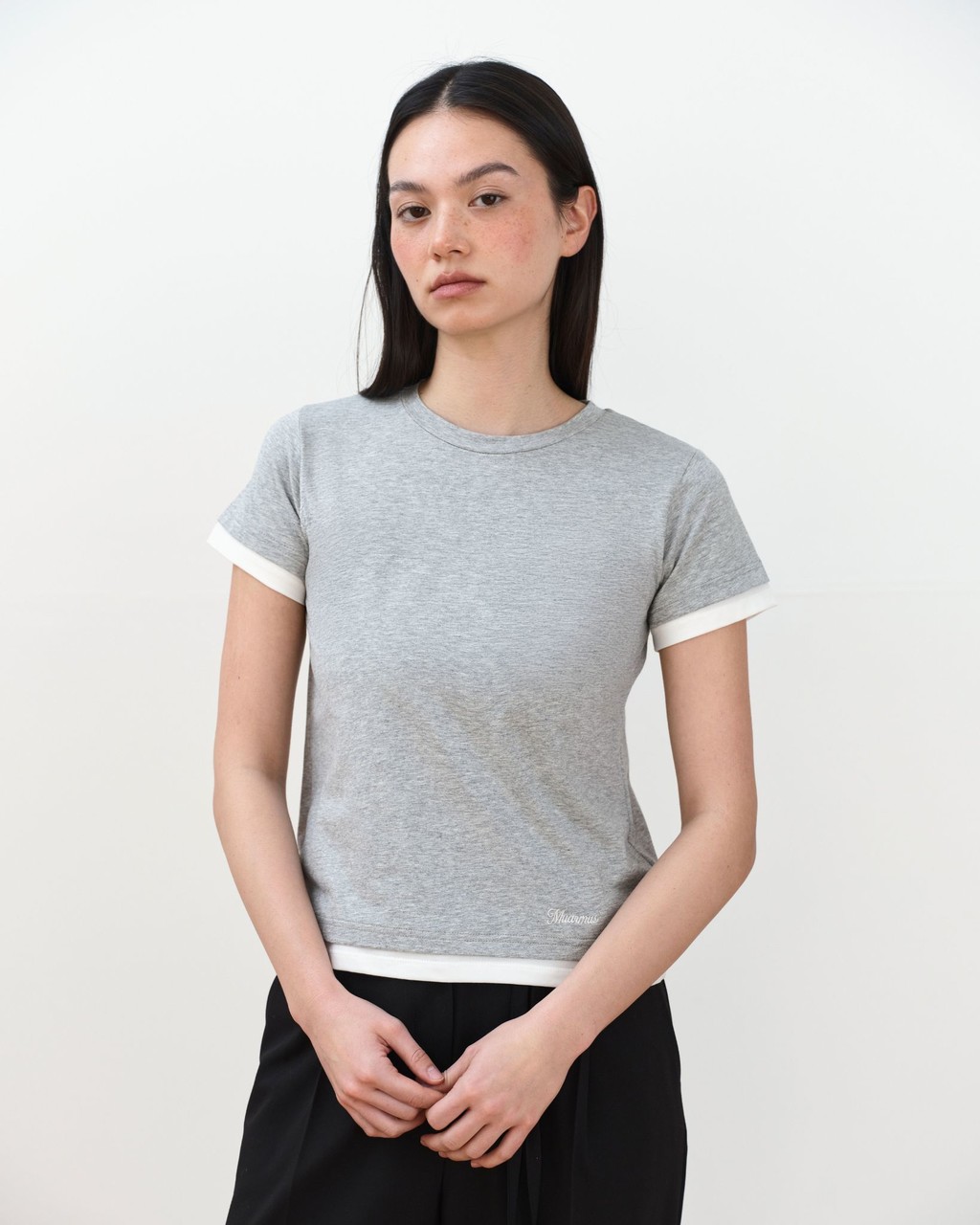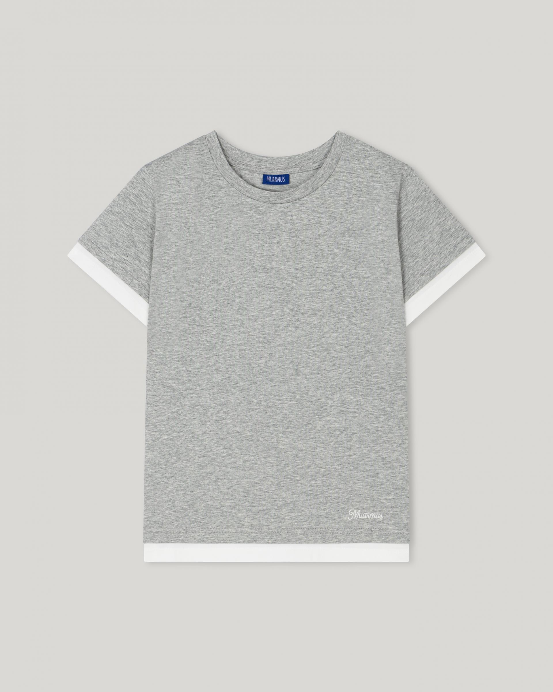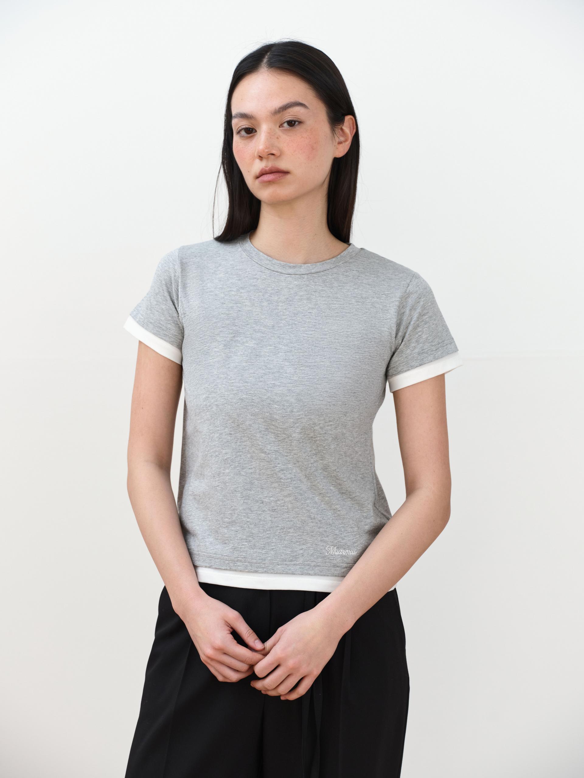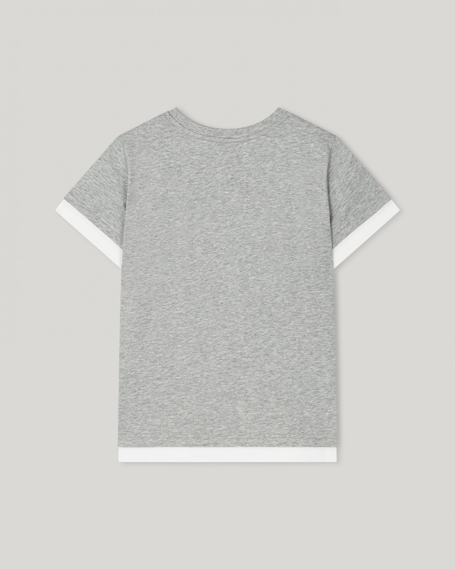 두 겹을 레이어드한 듯한 패턴 디자인으로 모던 캐주얼 무드를 연출하는 티셔츠입니다.