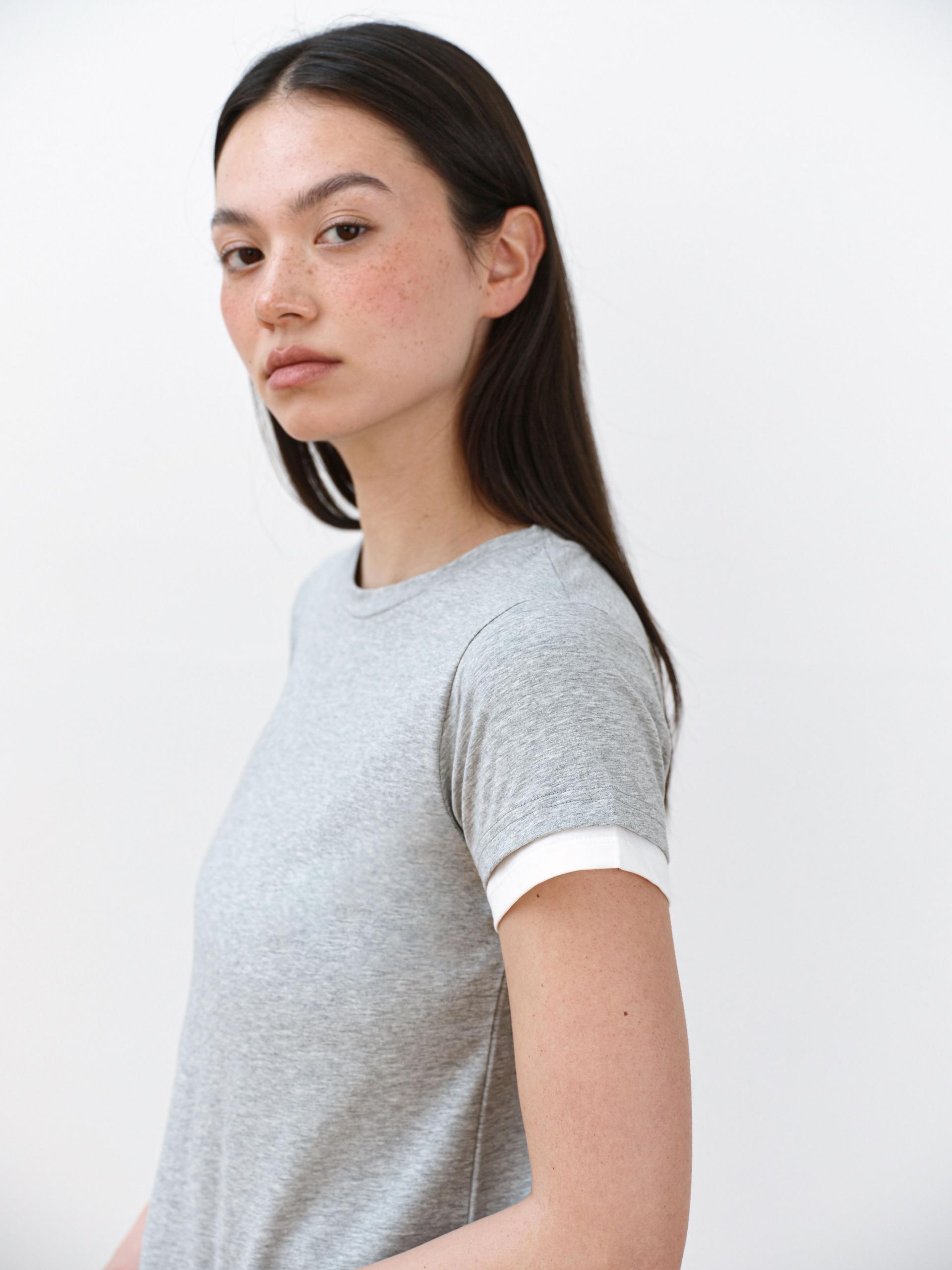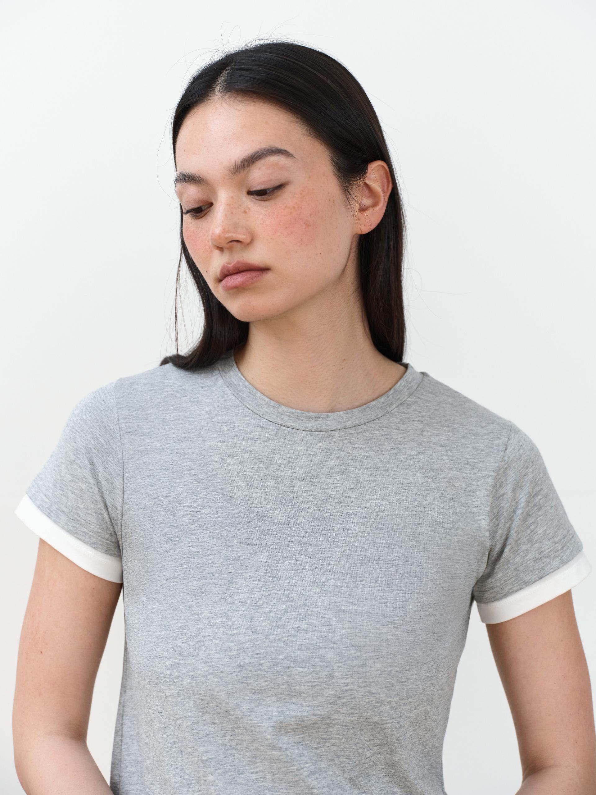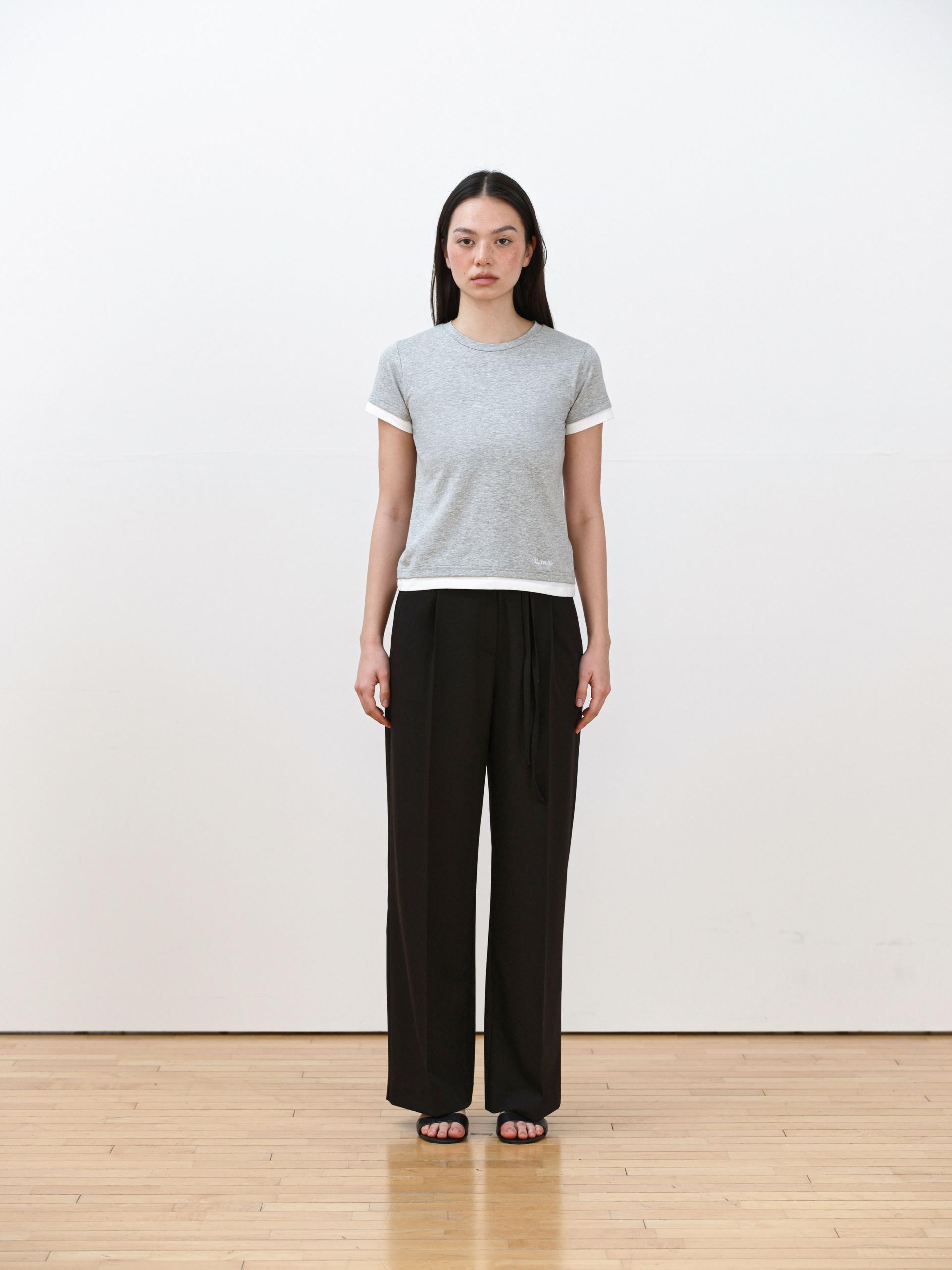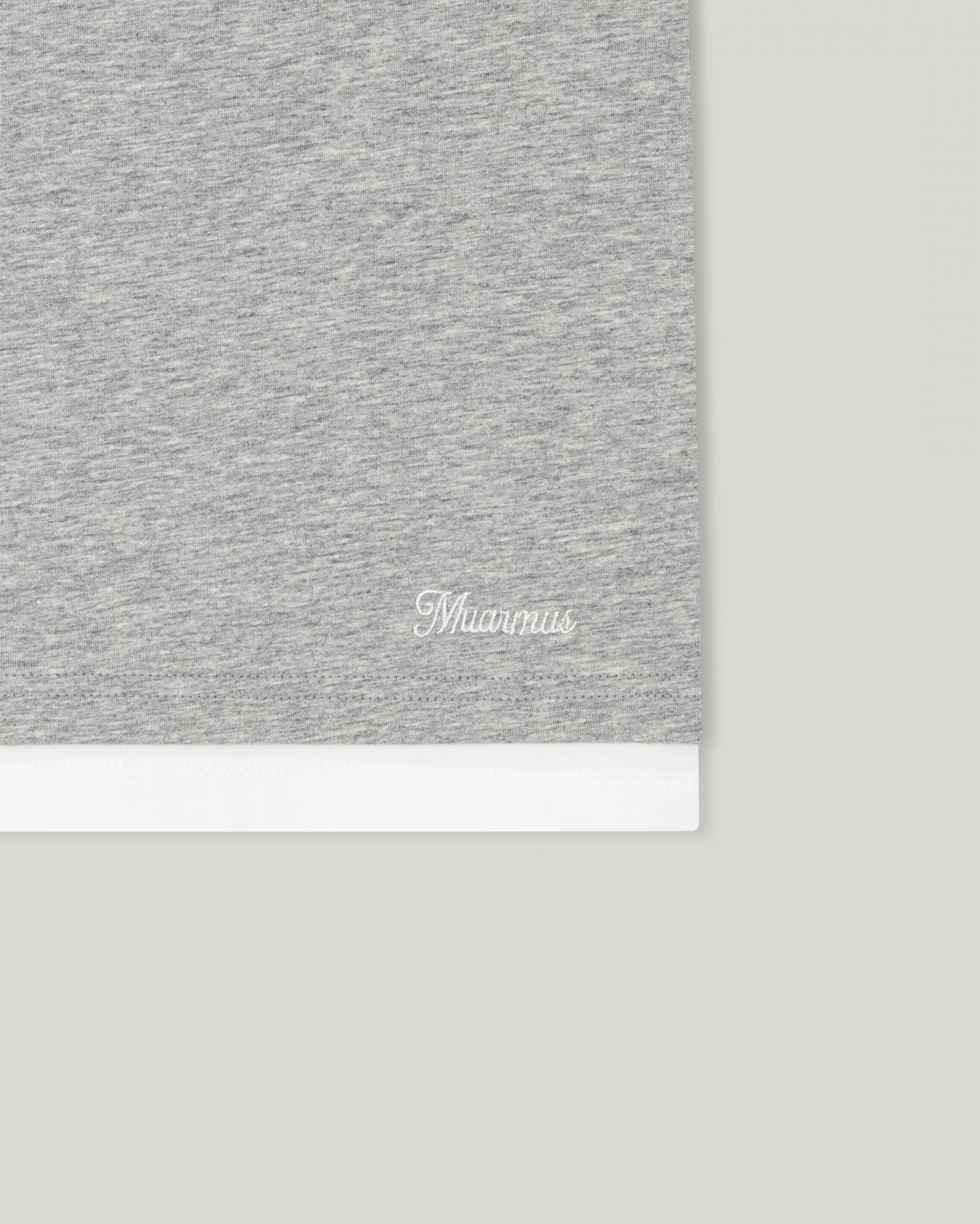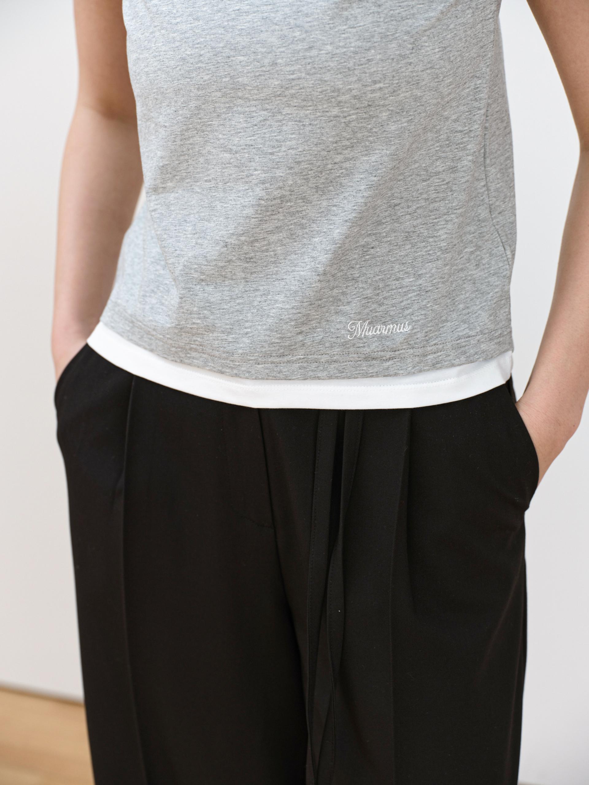두 겹을 레이어드한 듯한 패턴 디자인으로 모던 캐주얼 무드를 연출하는 티셔츠입니다.