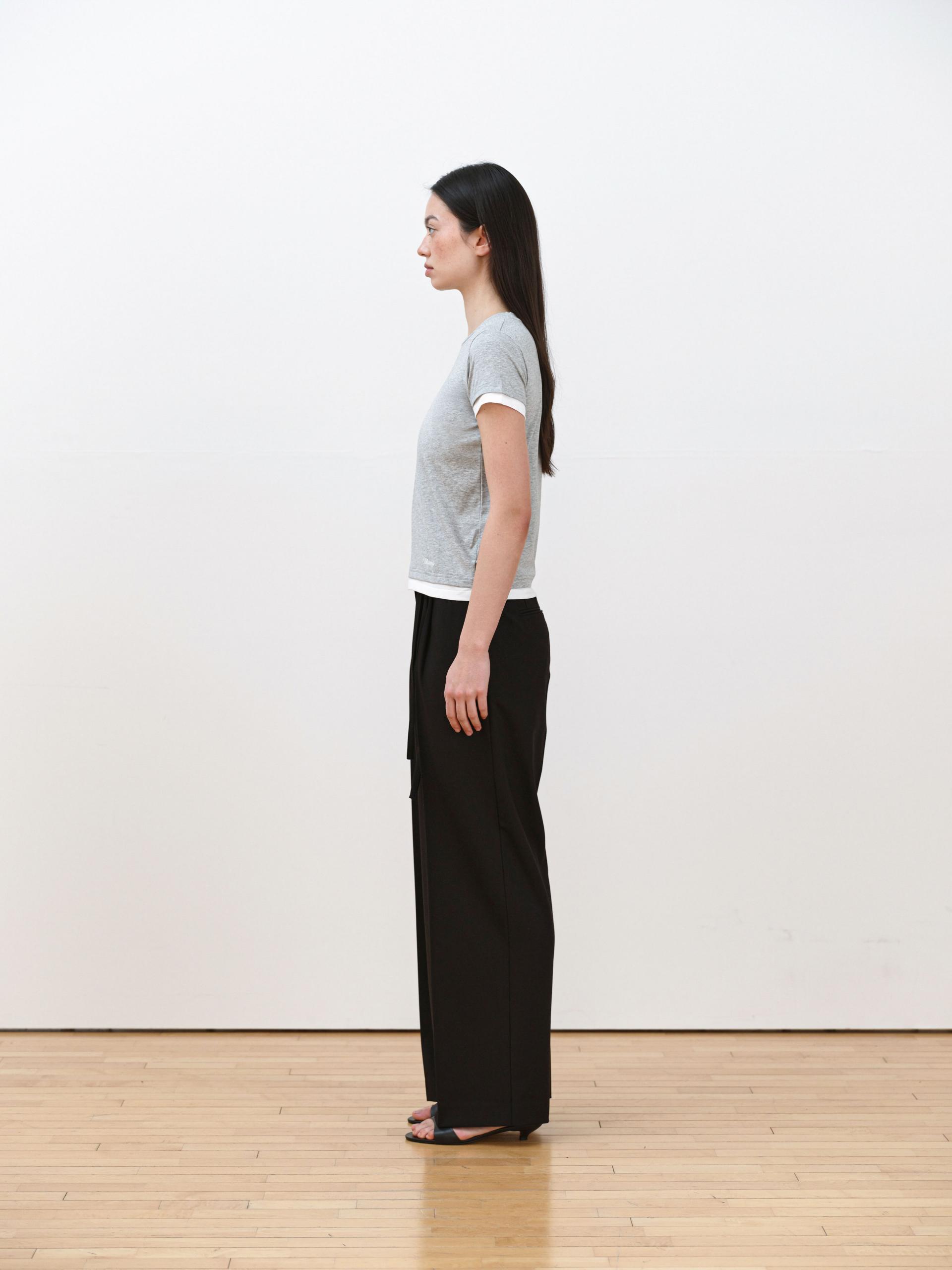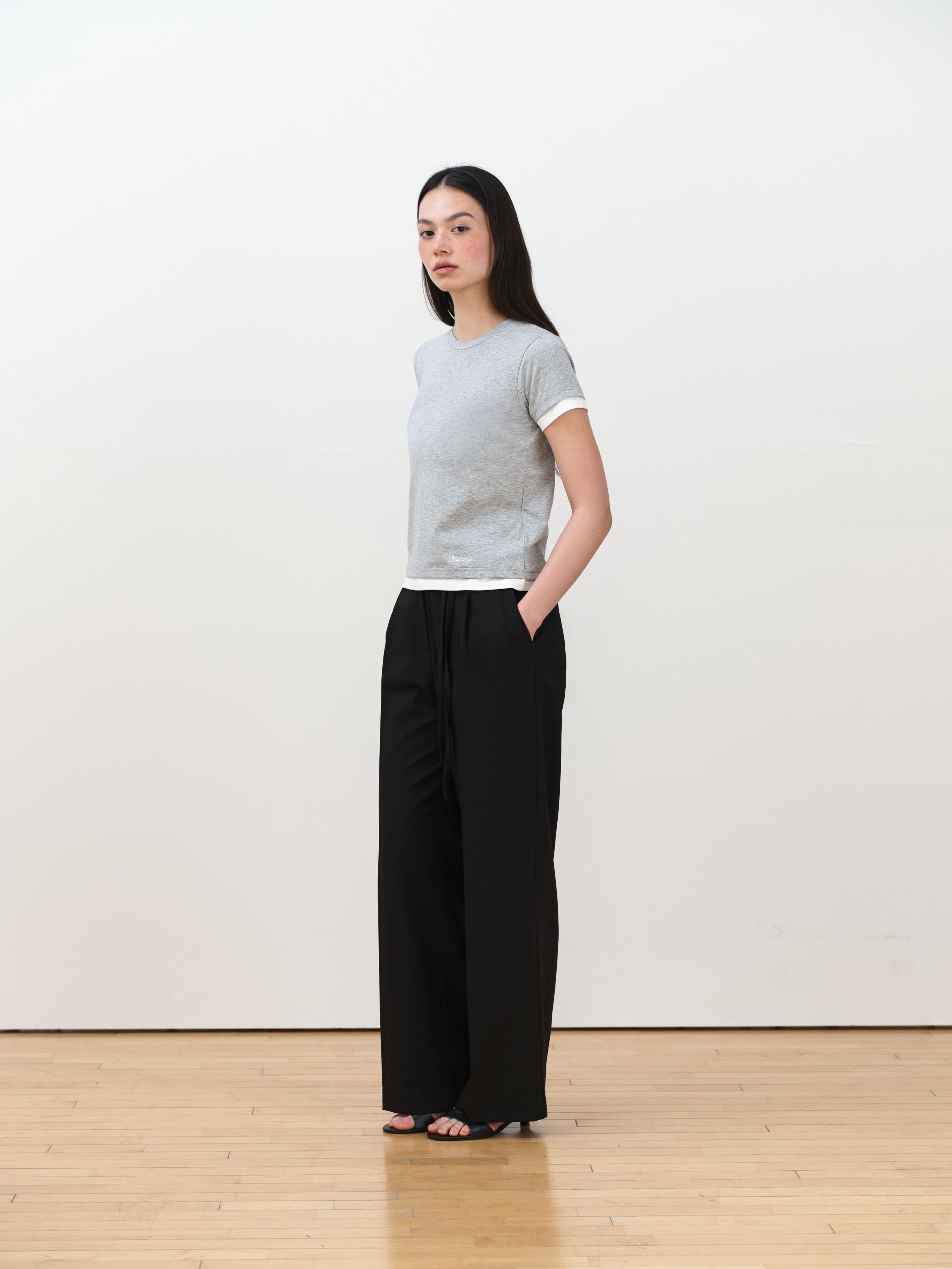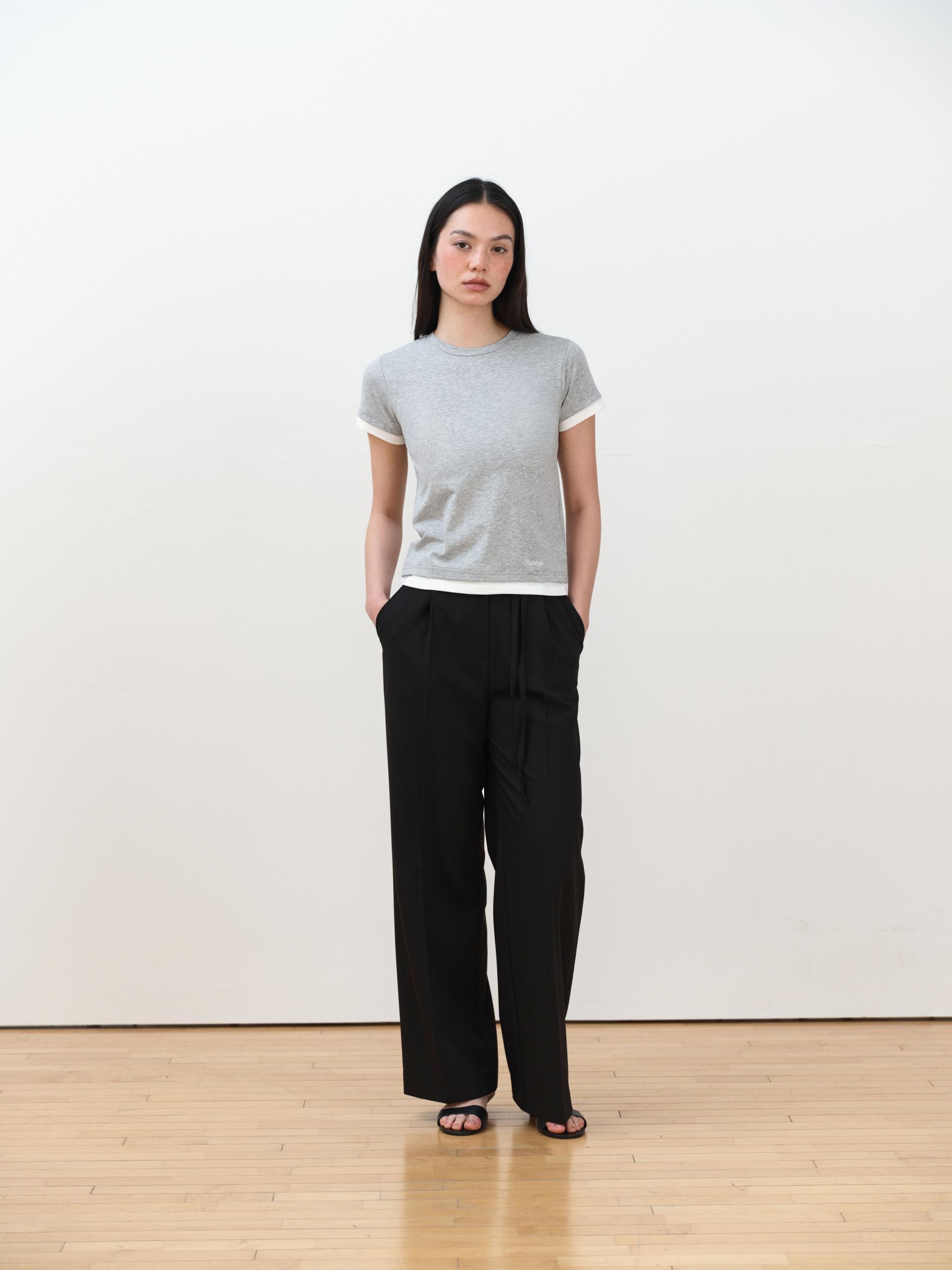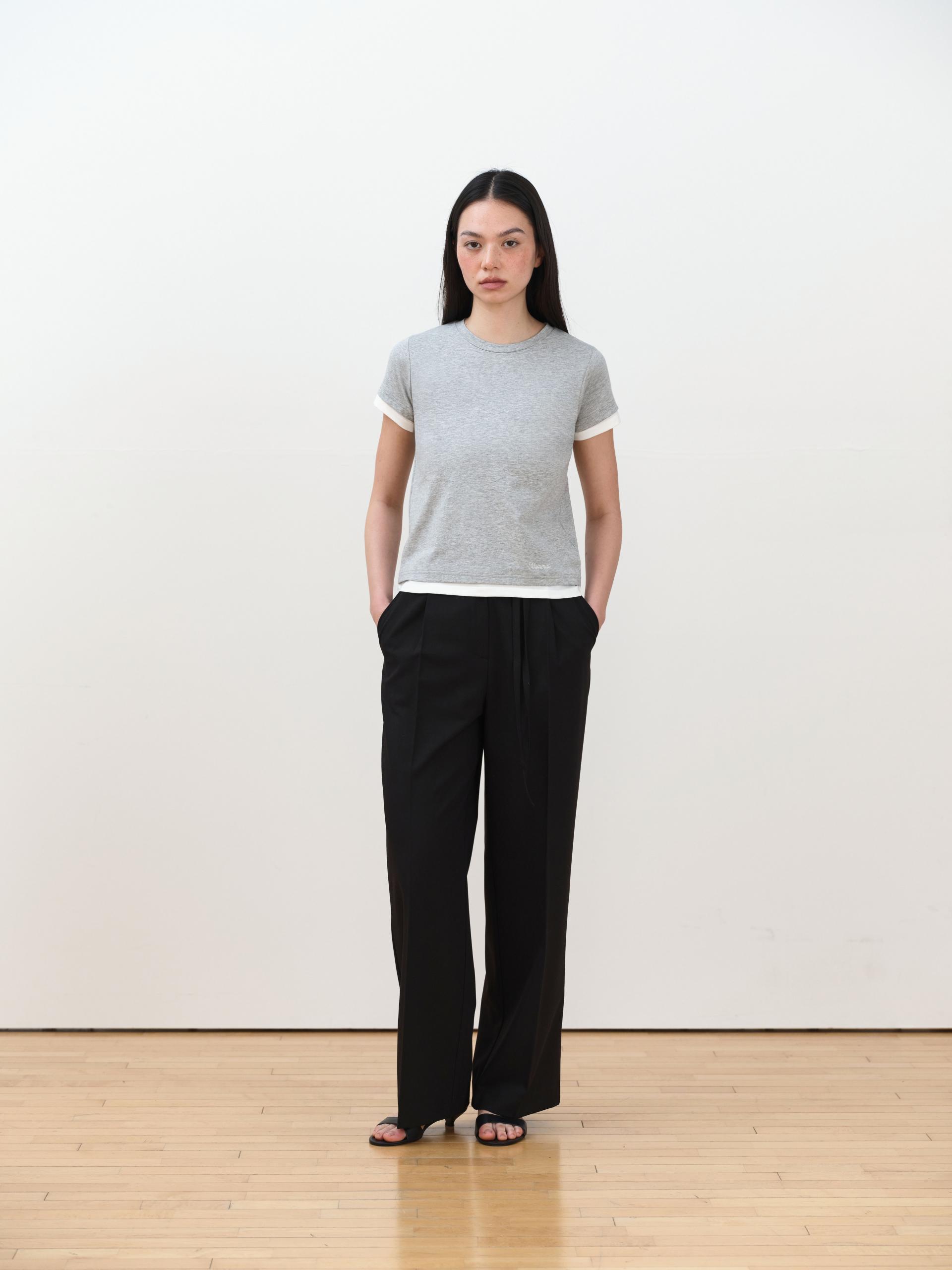 두 겹을 레이어드한 듯한 패턴 디자인으로 모던 캐주얼 무드를 연출하는 티셔츠입니다.