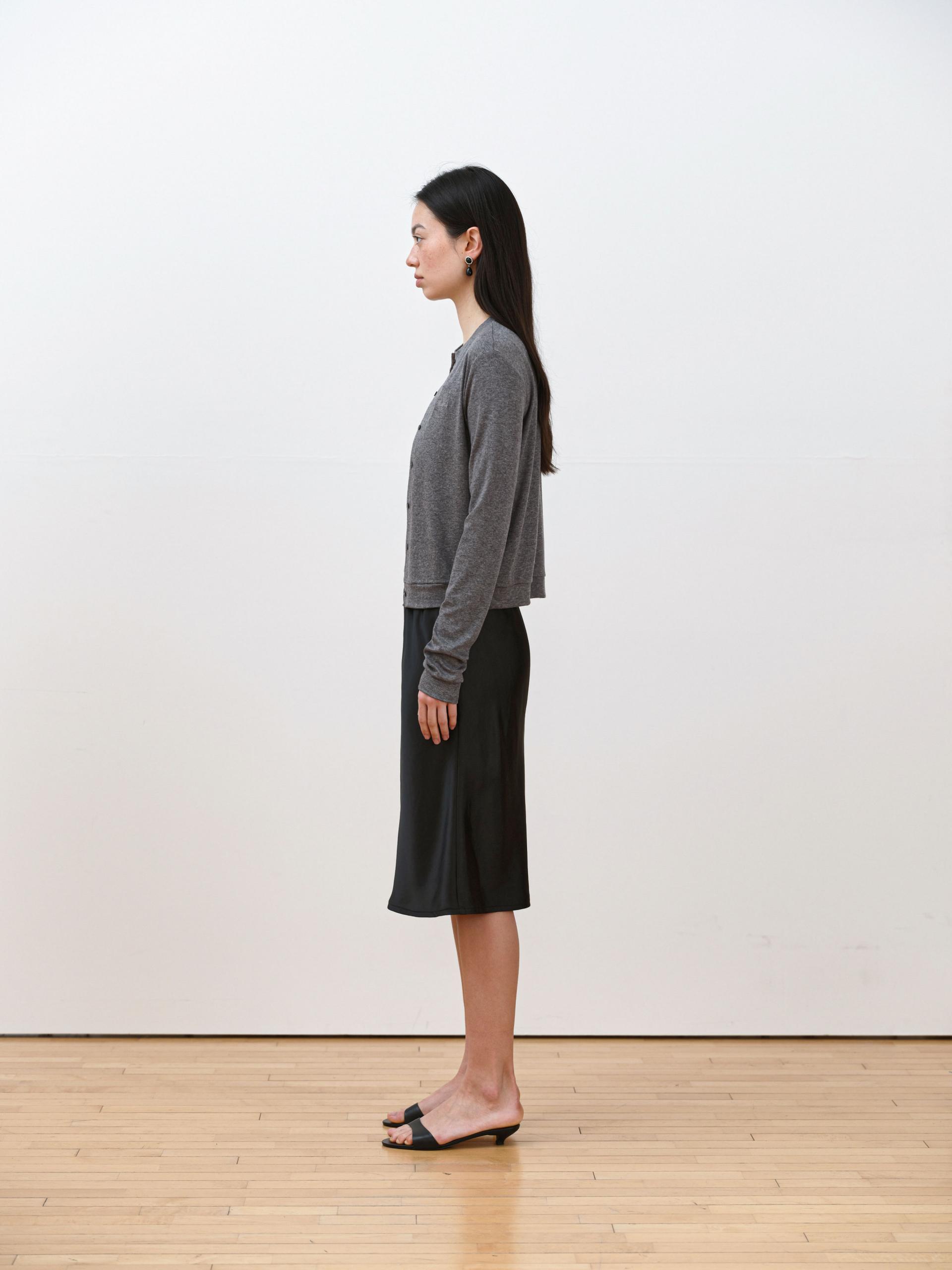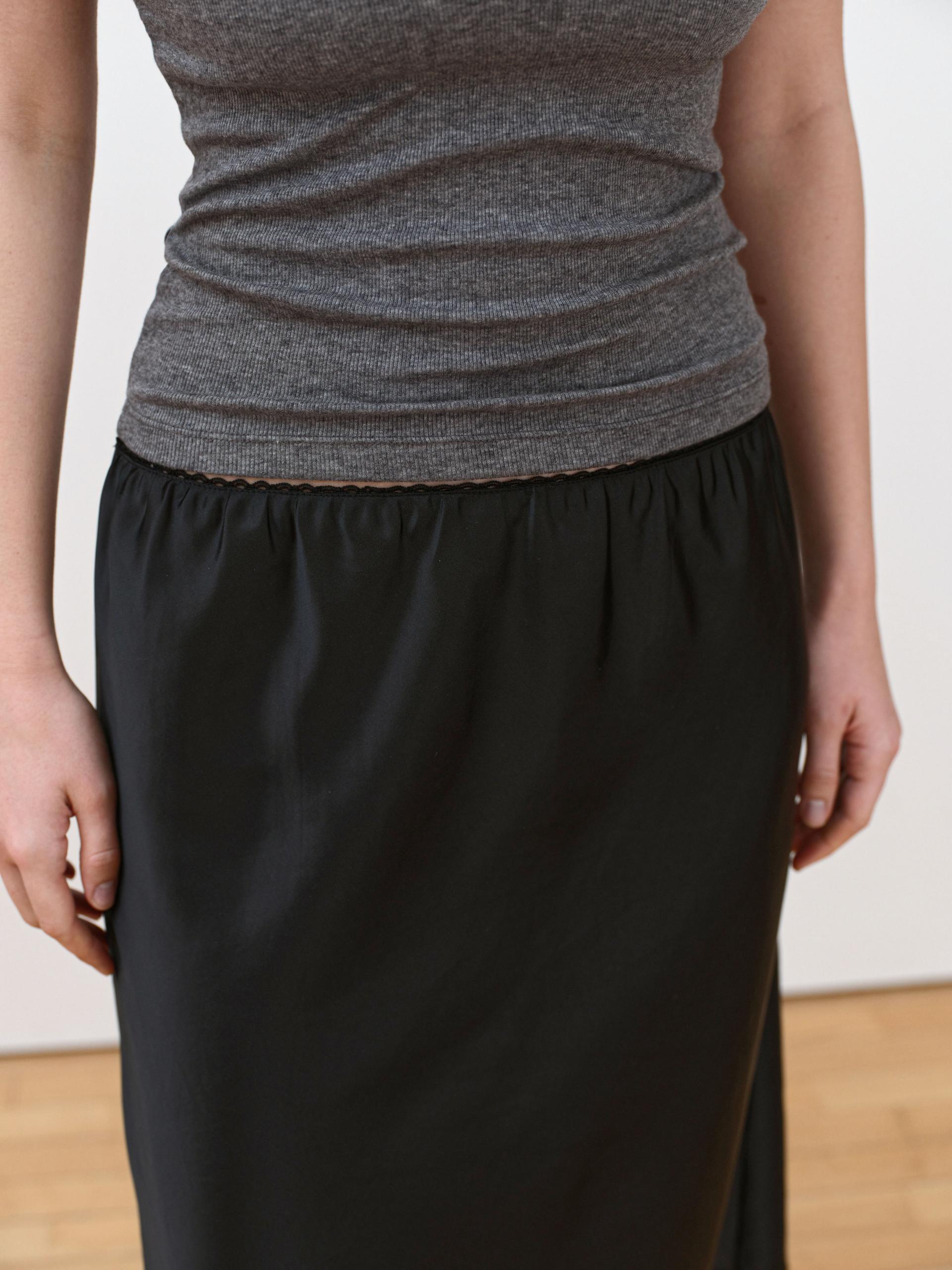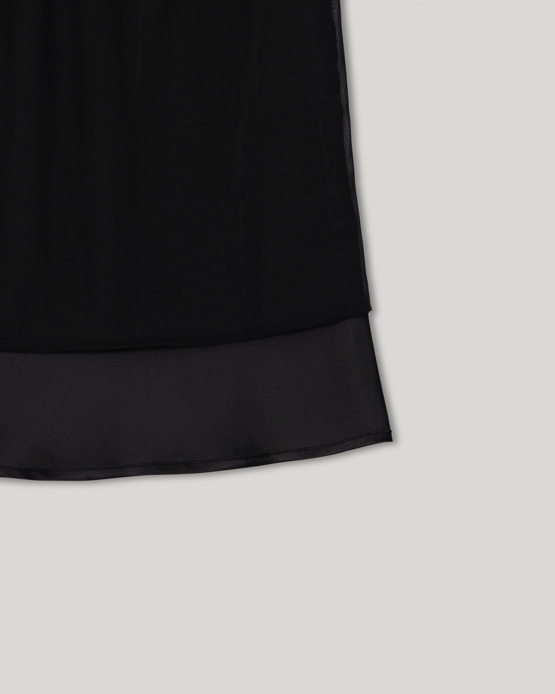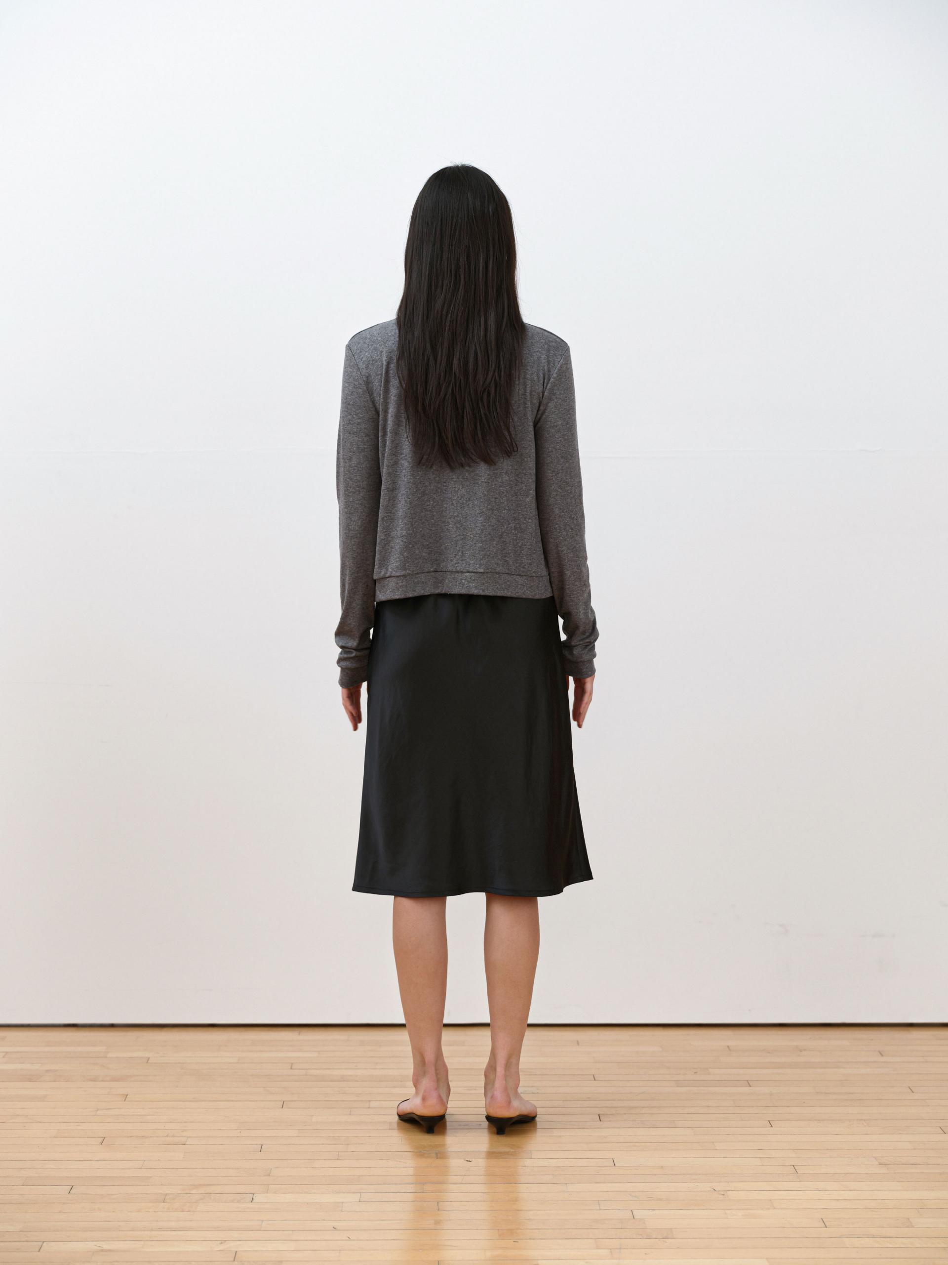 은은한 광택감이 느껴지는 새틴 텍스처와 자연스럽게 흐르는 드레이프 실루엣이