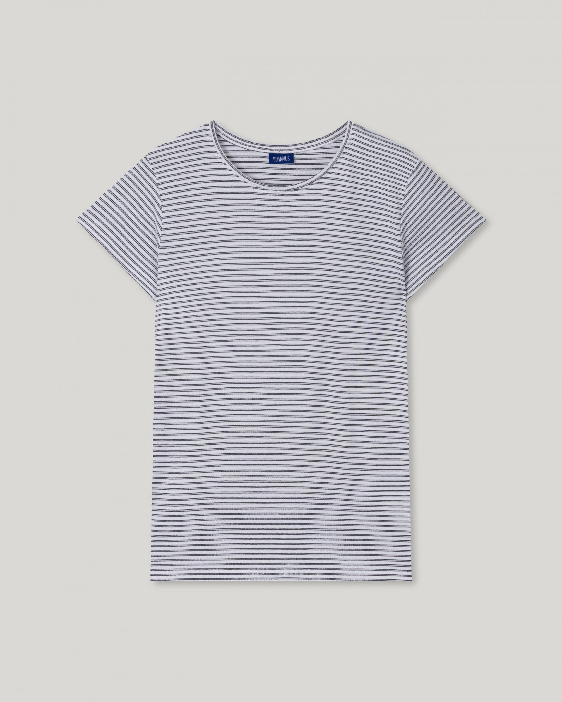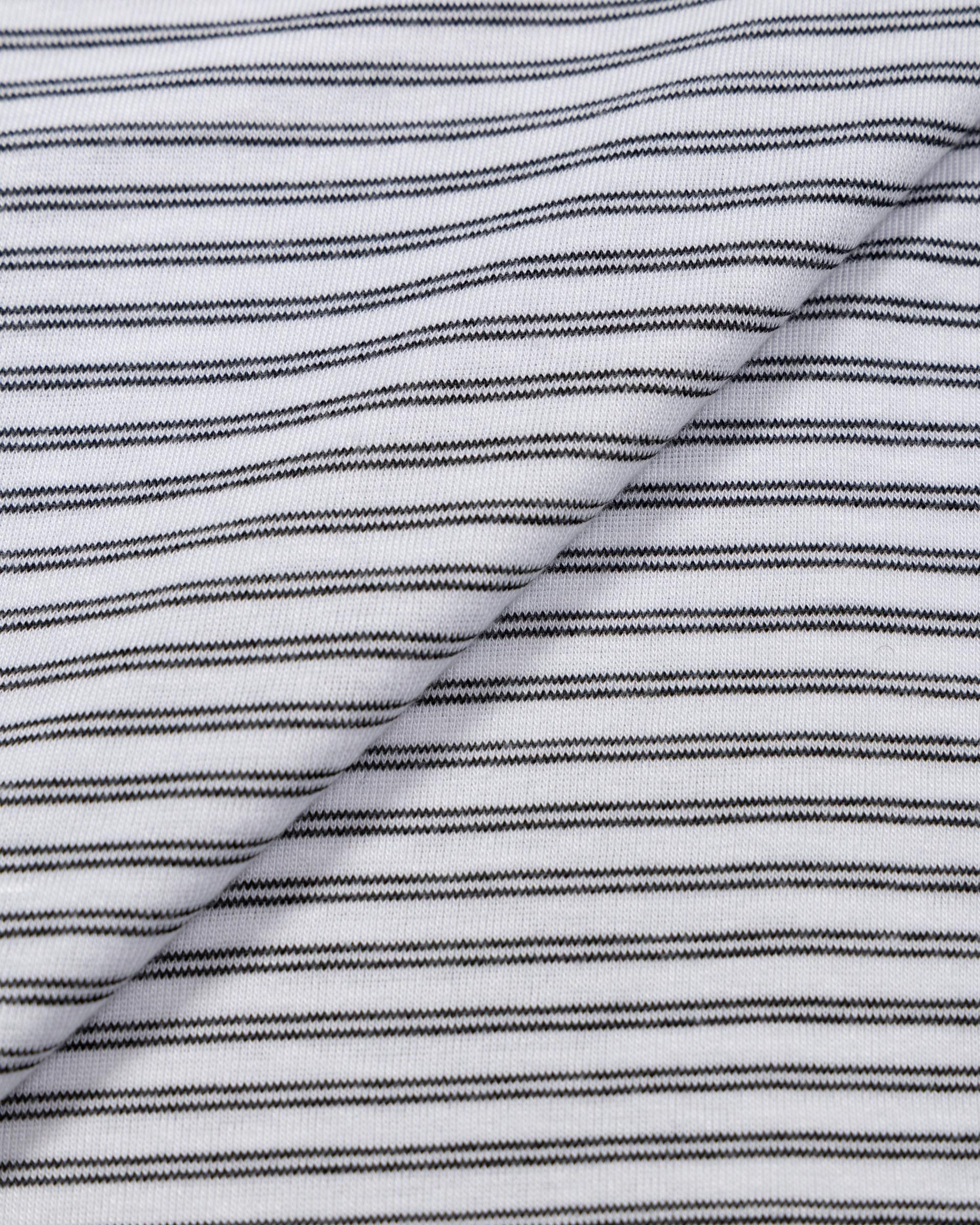 부드럽게 흐르는 레이온 혼방 원단으로 제작된 슬림핏 스트라이프 티셔츠입니다.