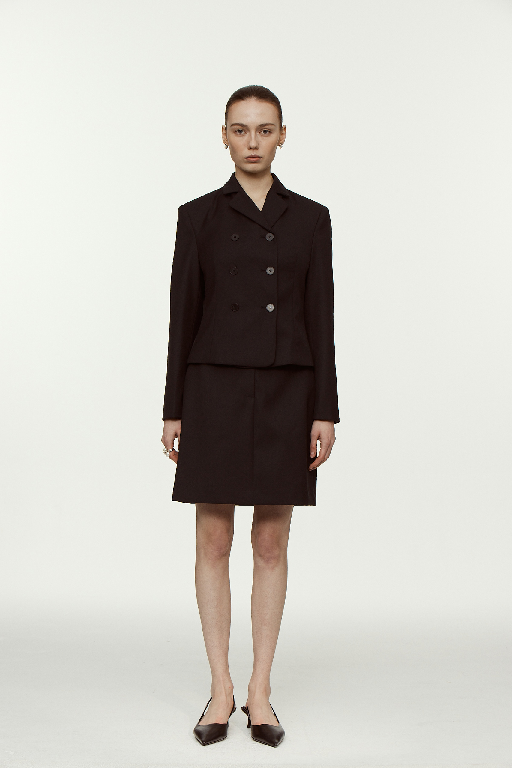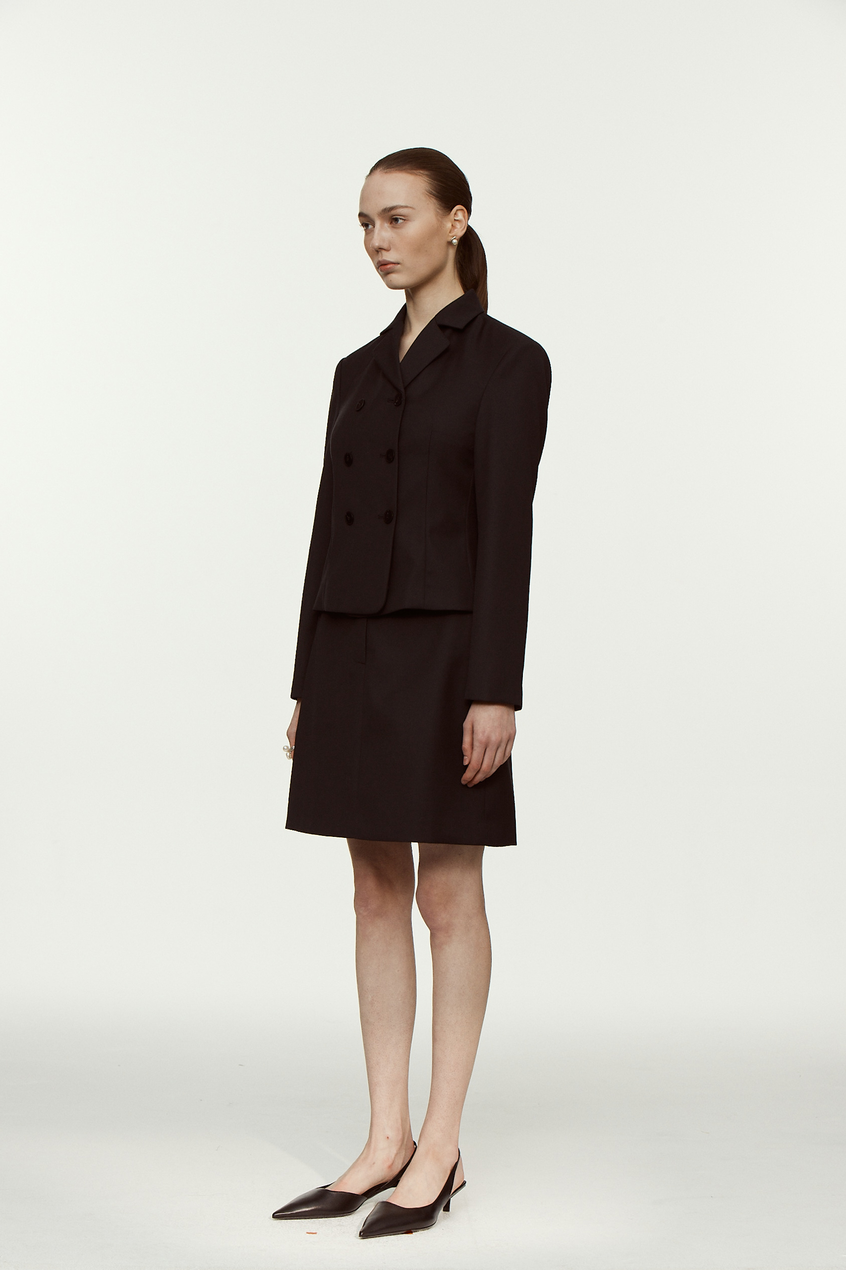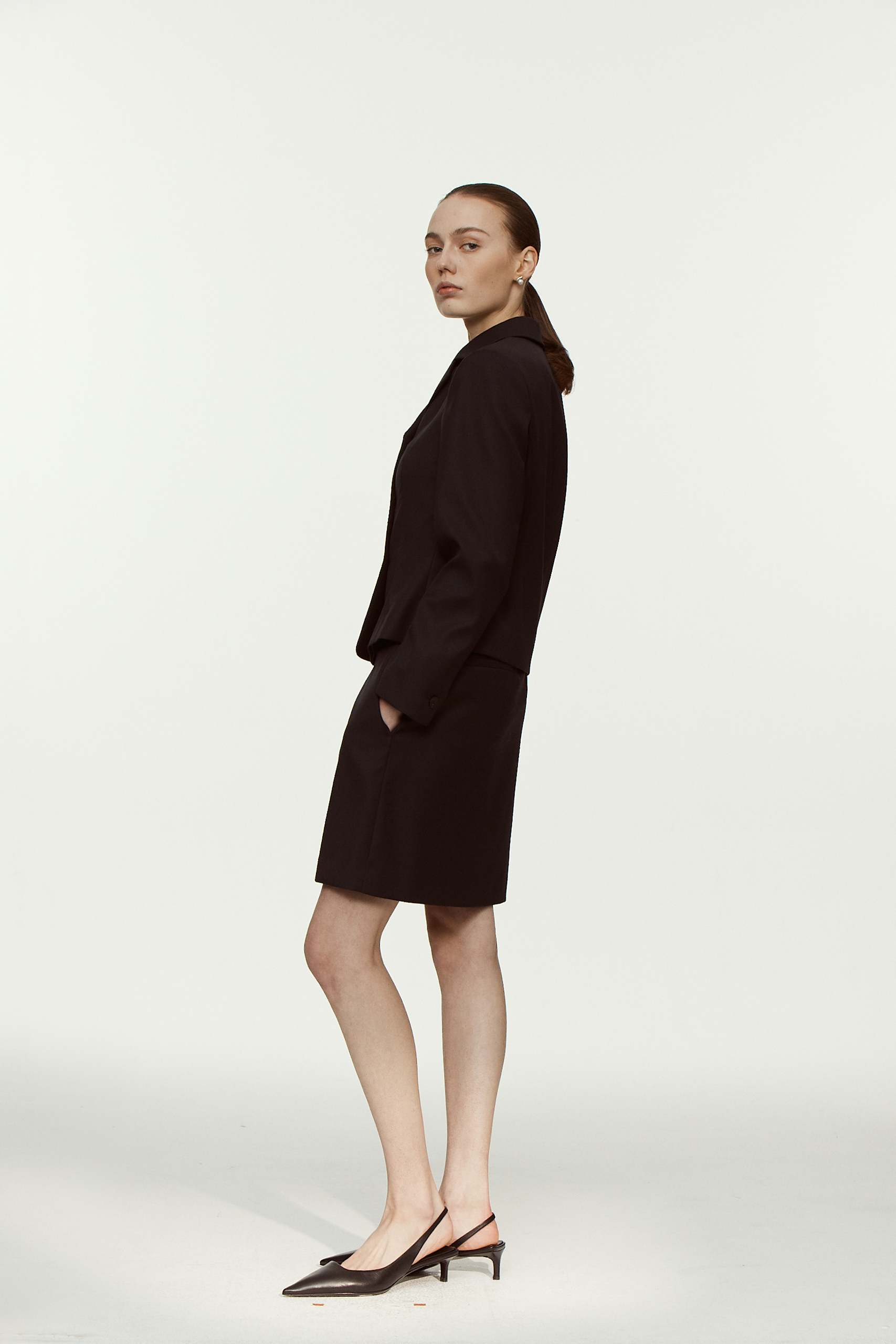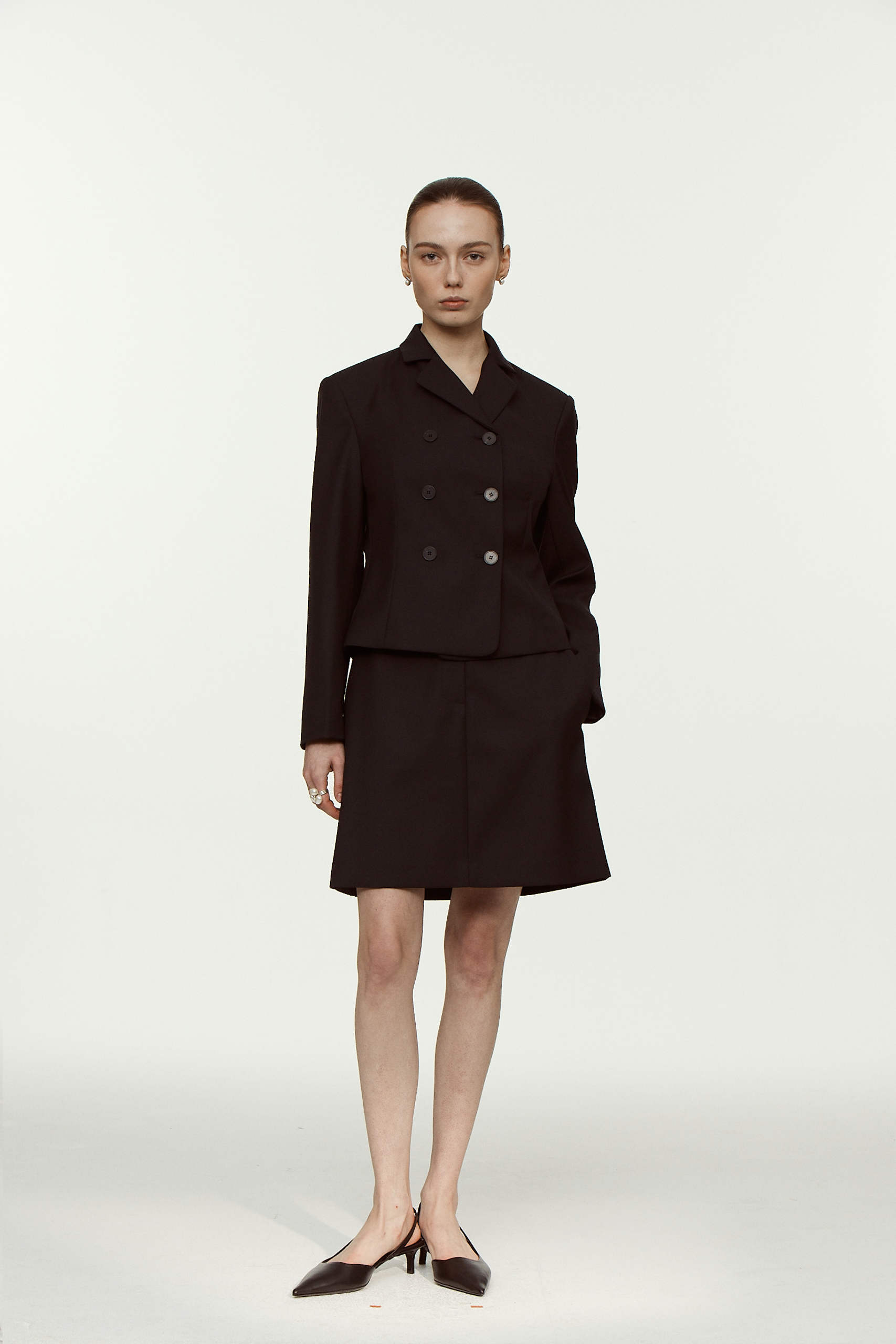 클래식한 핏의 여성스러운 디자인이 가미된 미들 기장의 스커트입니다 동일한 소재의 자켓과 함께 셋업으로 연출할 수 있습니다.