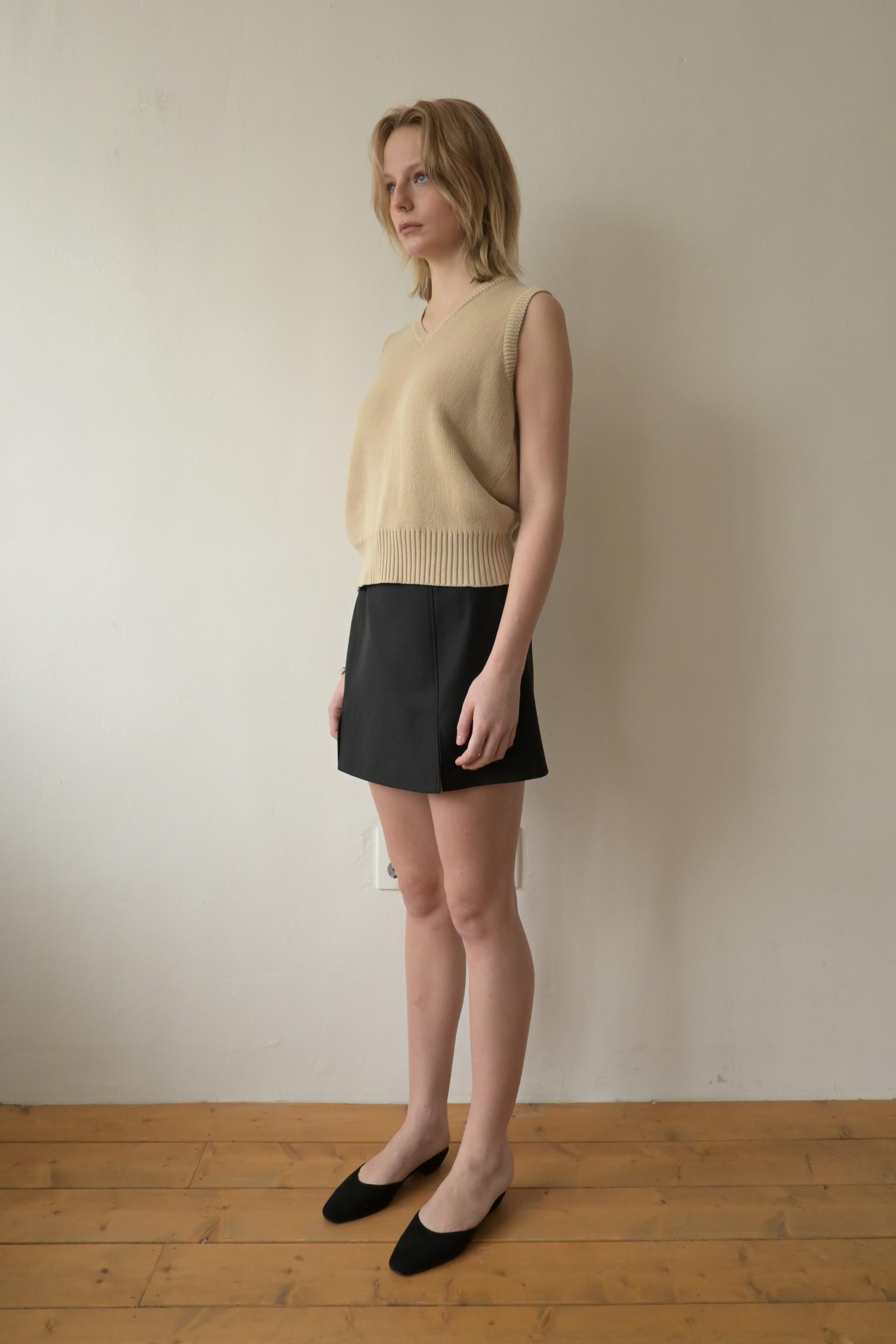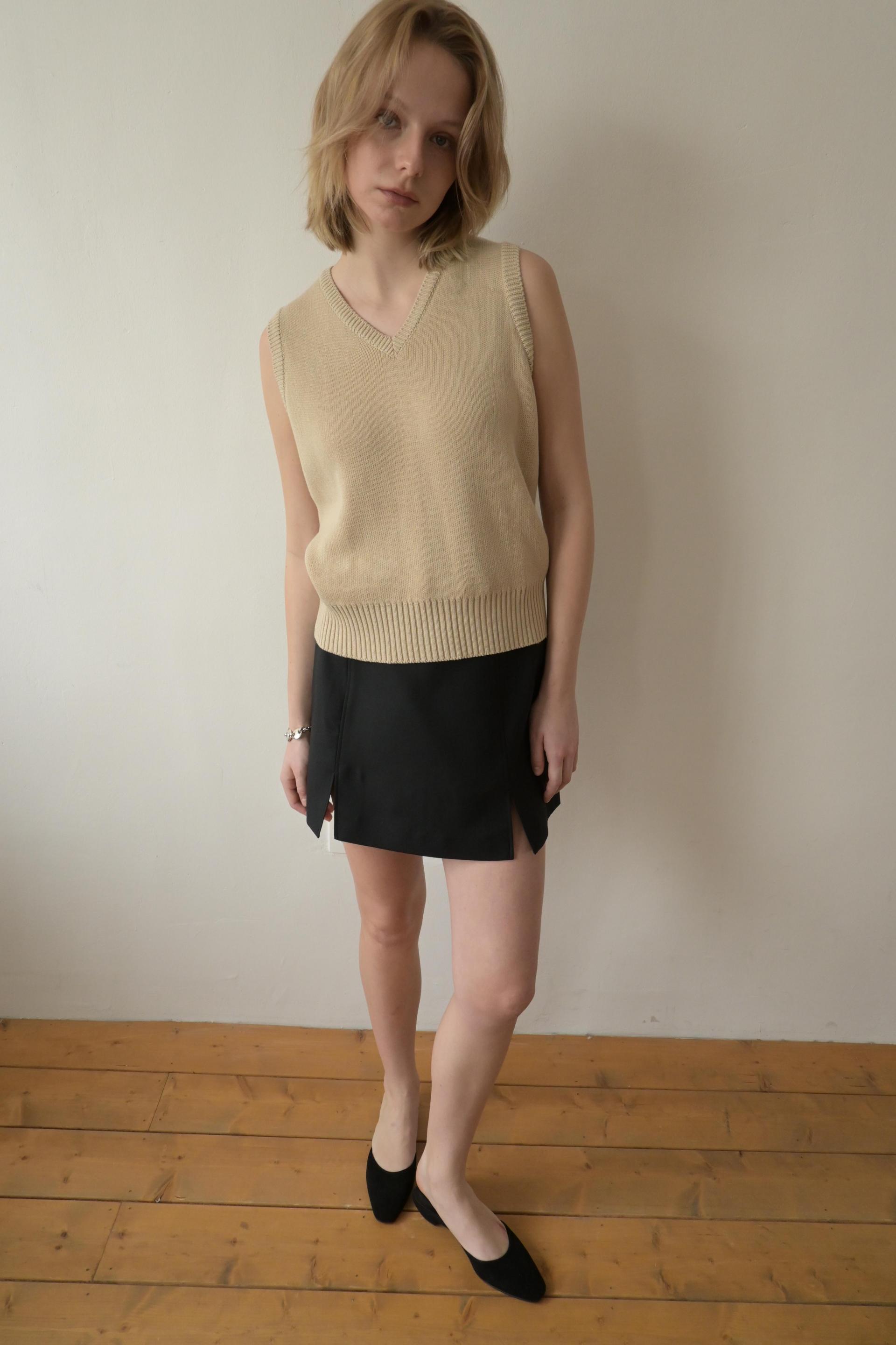 앞면 트임 디테일과 플랫하게 떨어지는 슬림핏 디자인으로