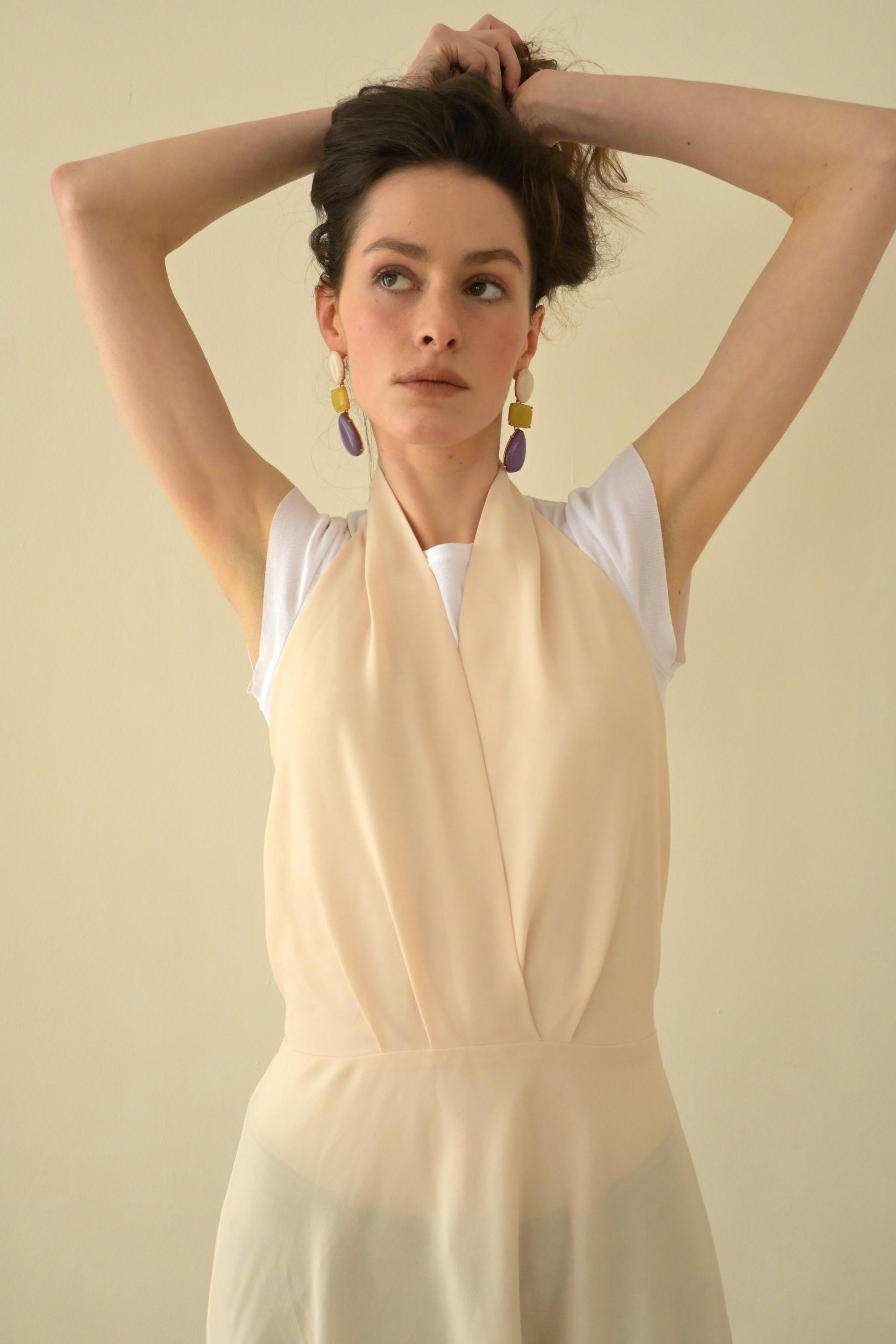 클래식한 무드의 홀터넥 레이어드 드레스입니다.