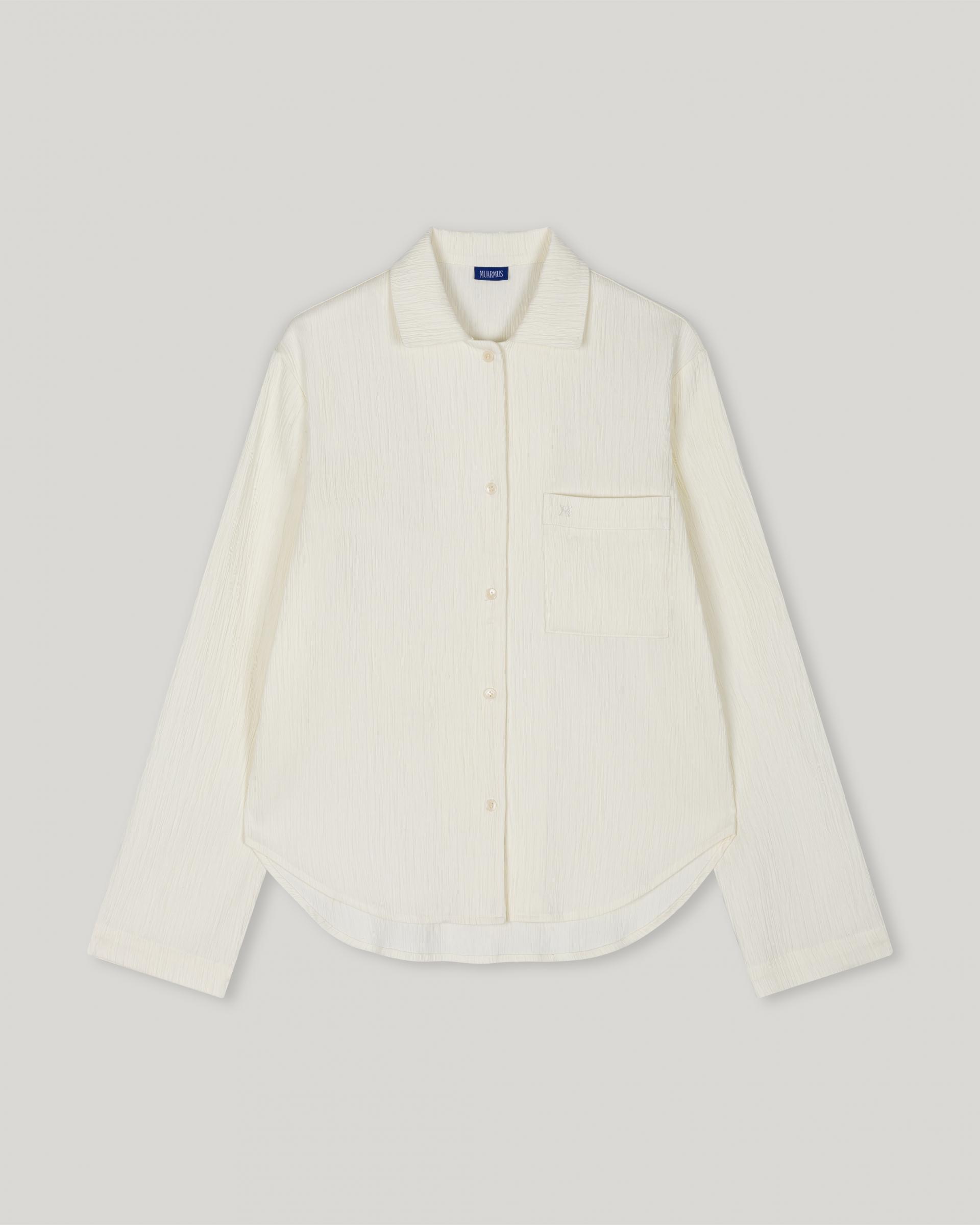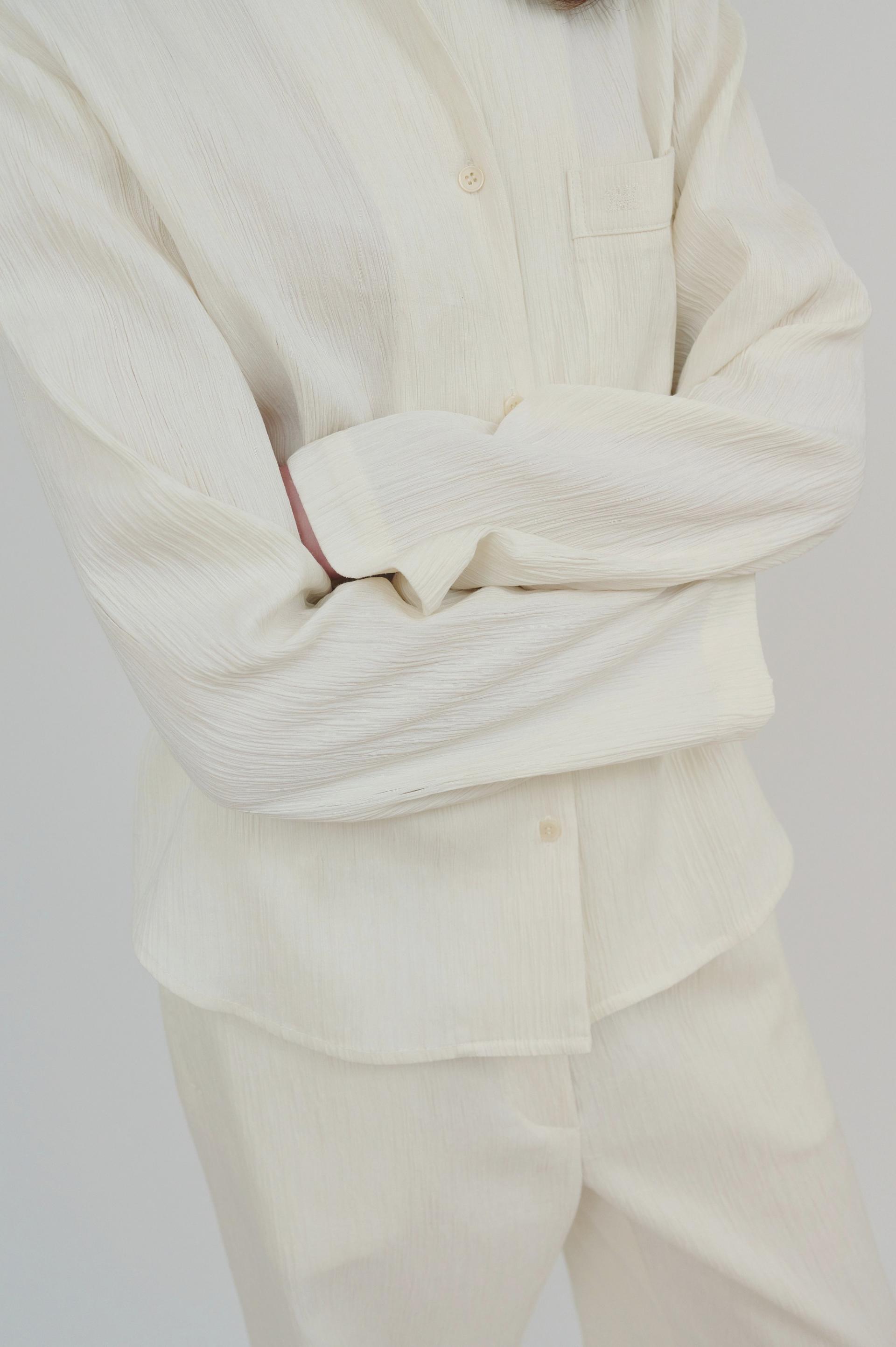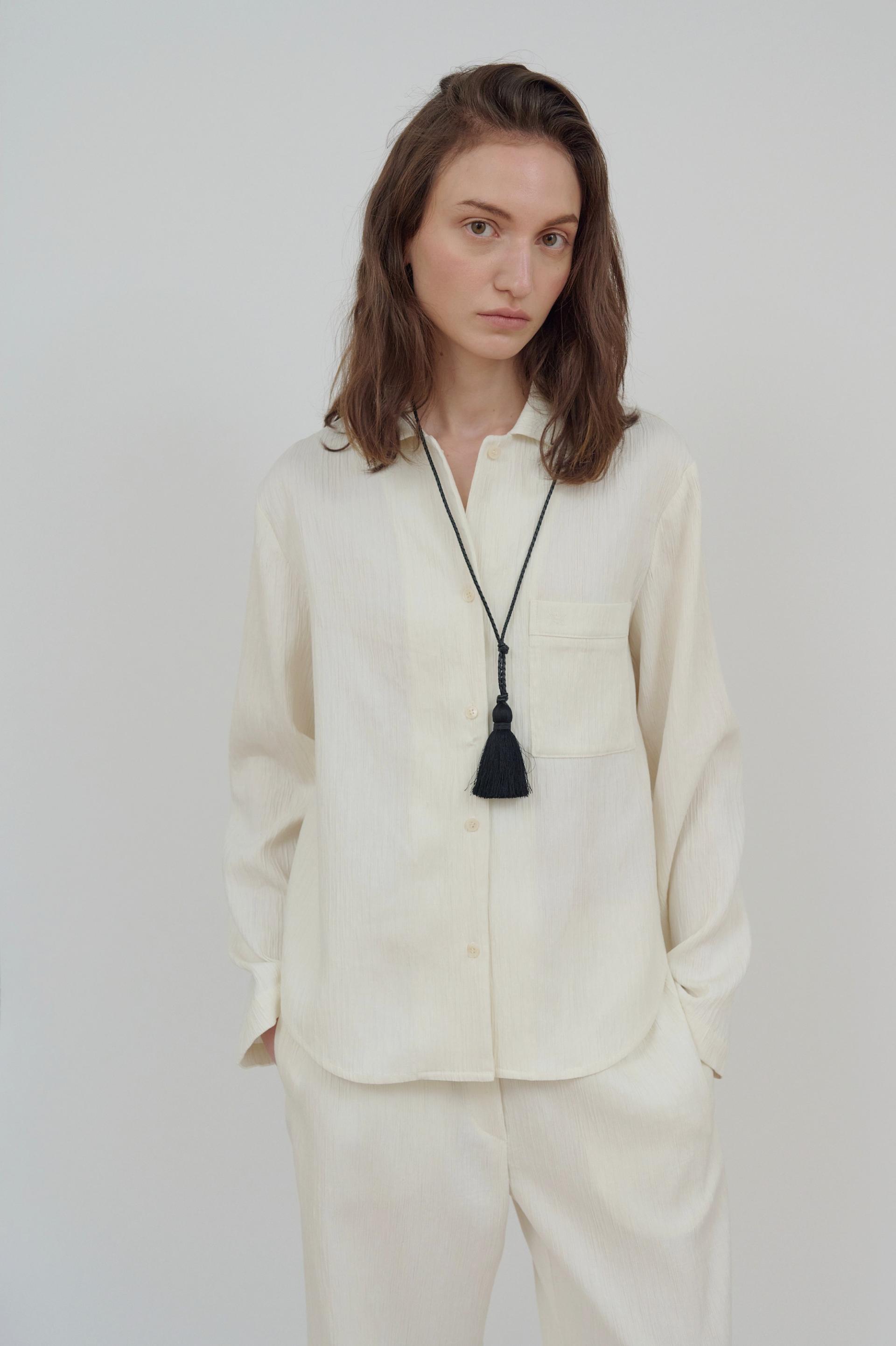 고급스러운 주름 디테일이 돋보이는 셔츠로, 클래식한 디자인과 자연스러운 실루엣이 특징입니다.