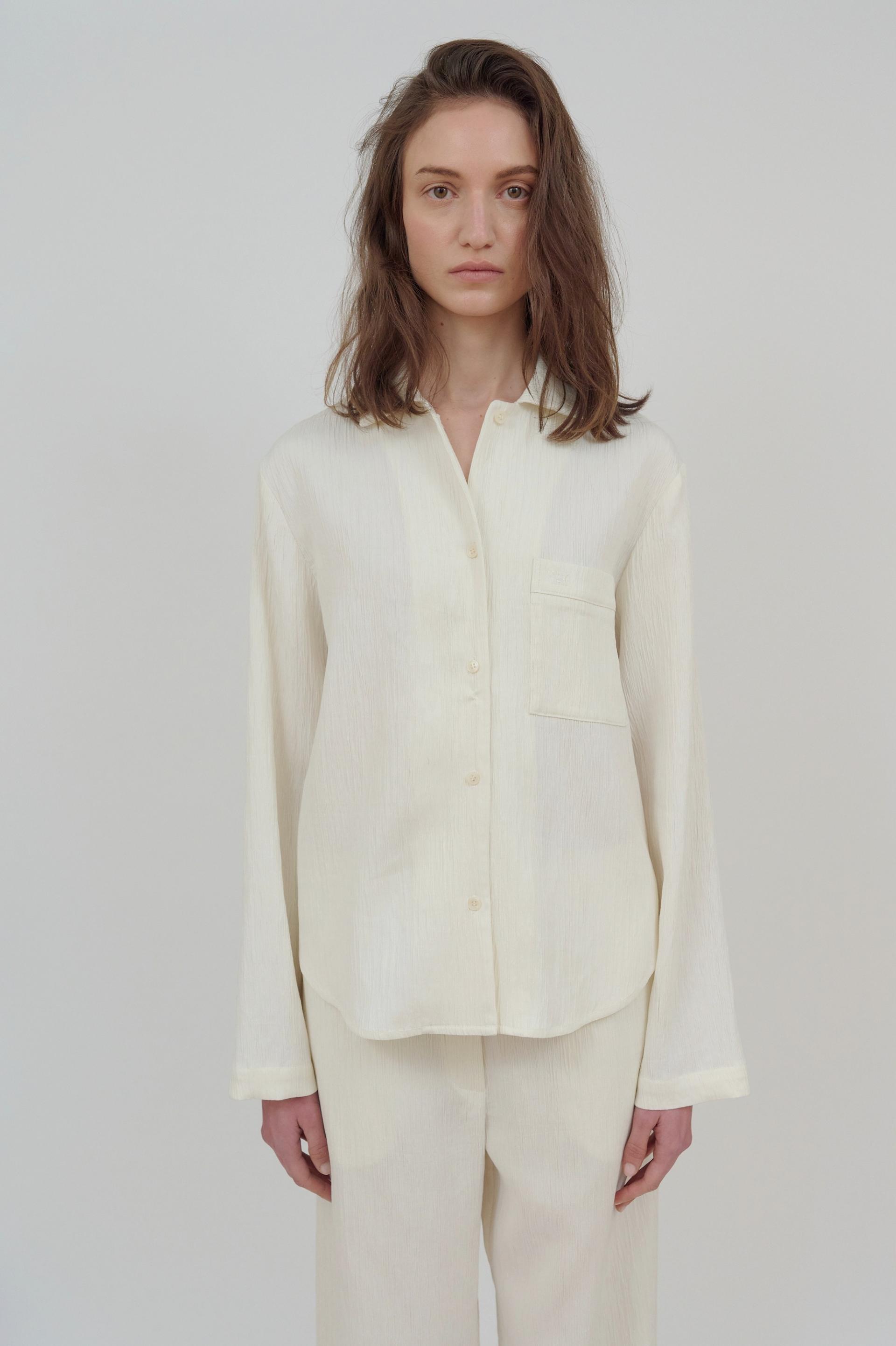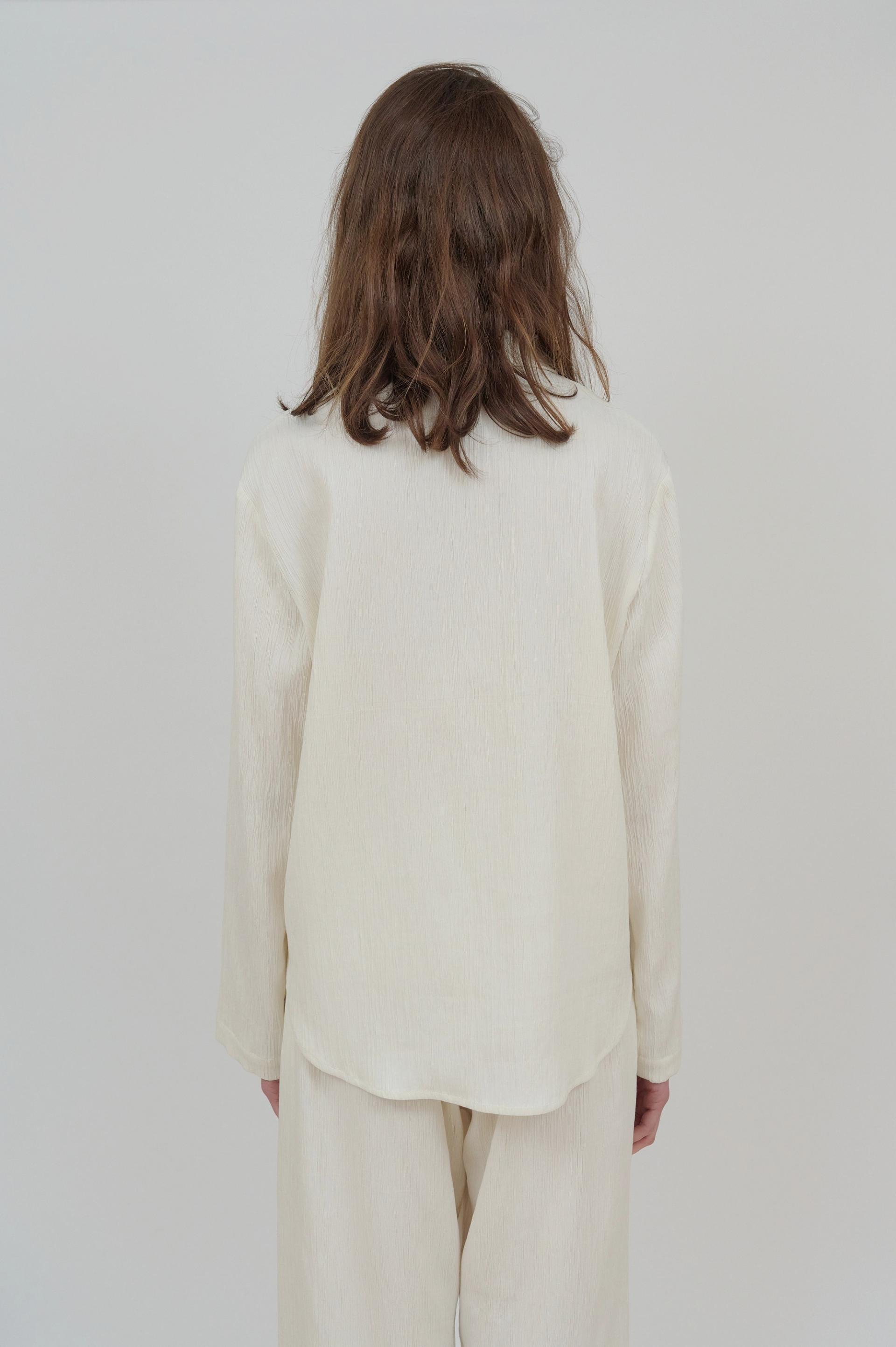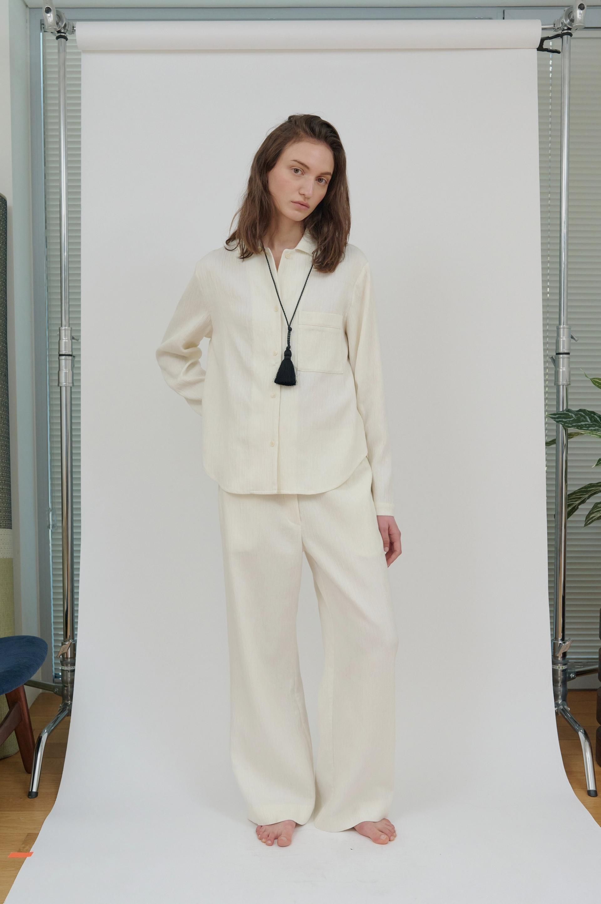 고급스러운 주름 디테일이 돋보이는 셔츠로, 클래식한 디자인과 자연스러운 실루엣이 특징입니다.