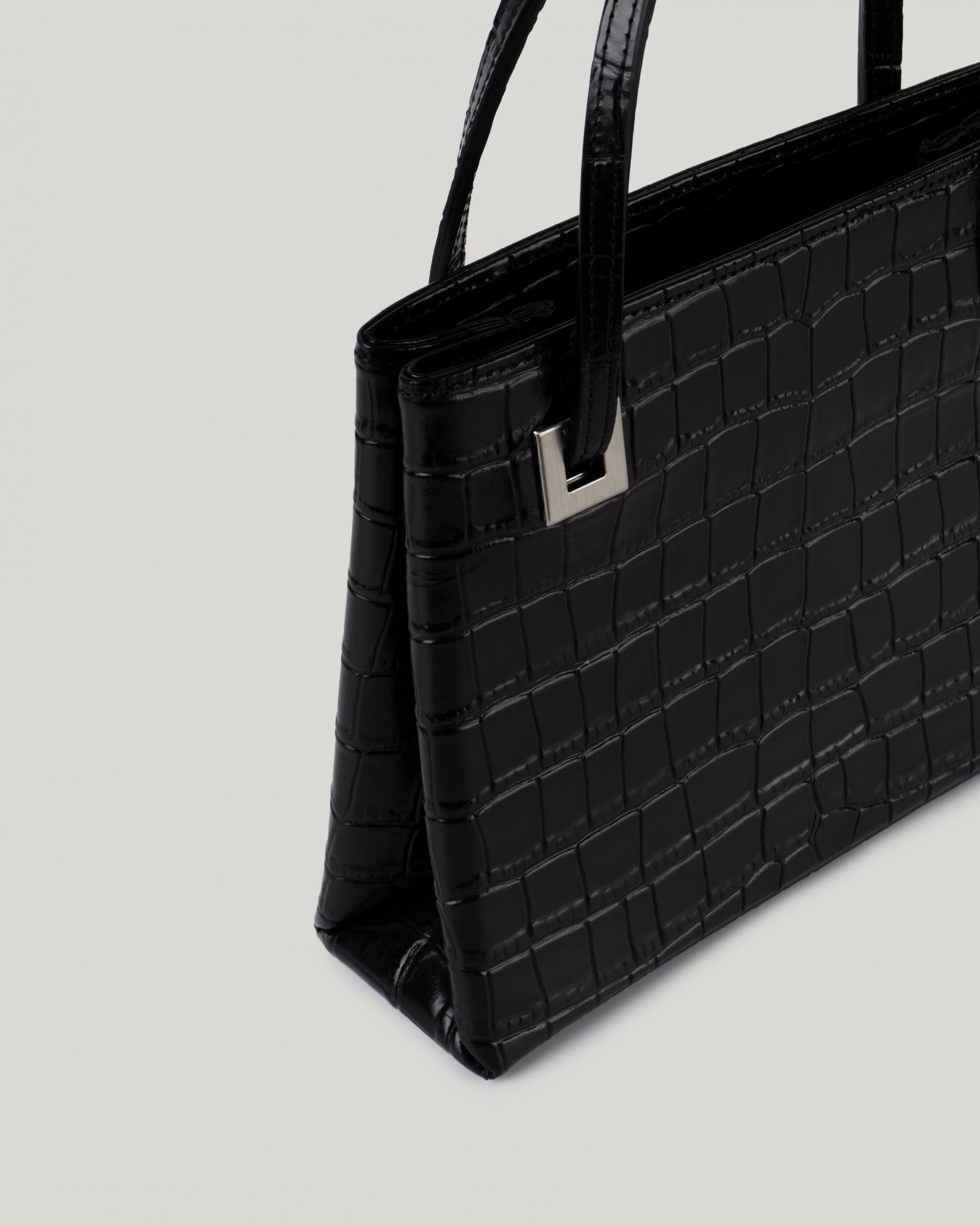 크로커 가죽을 사용한 미니 토트백입니다. 하드한 질감의 크로커 표면으로 단단하고 가벼운 무게감을 자랑합니다. 내구성이 있는 소가죽을 사용하여 입체적인 스퀘어 형태를 유지합니다. 캐주얼 룩이나 클래식 룩 등 다양한 코디에 매치하기 좋으며, 한 손에 들어오는 컴팩트한 사이즈로 가볍게 들기 좋은 아이템 입니다.