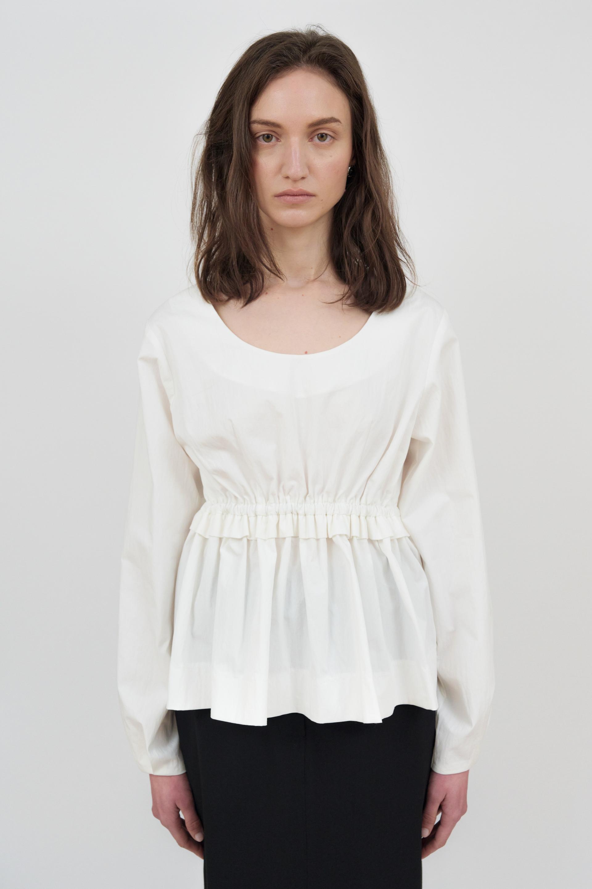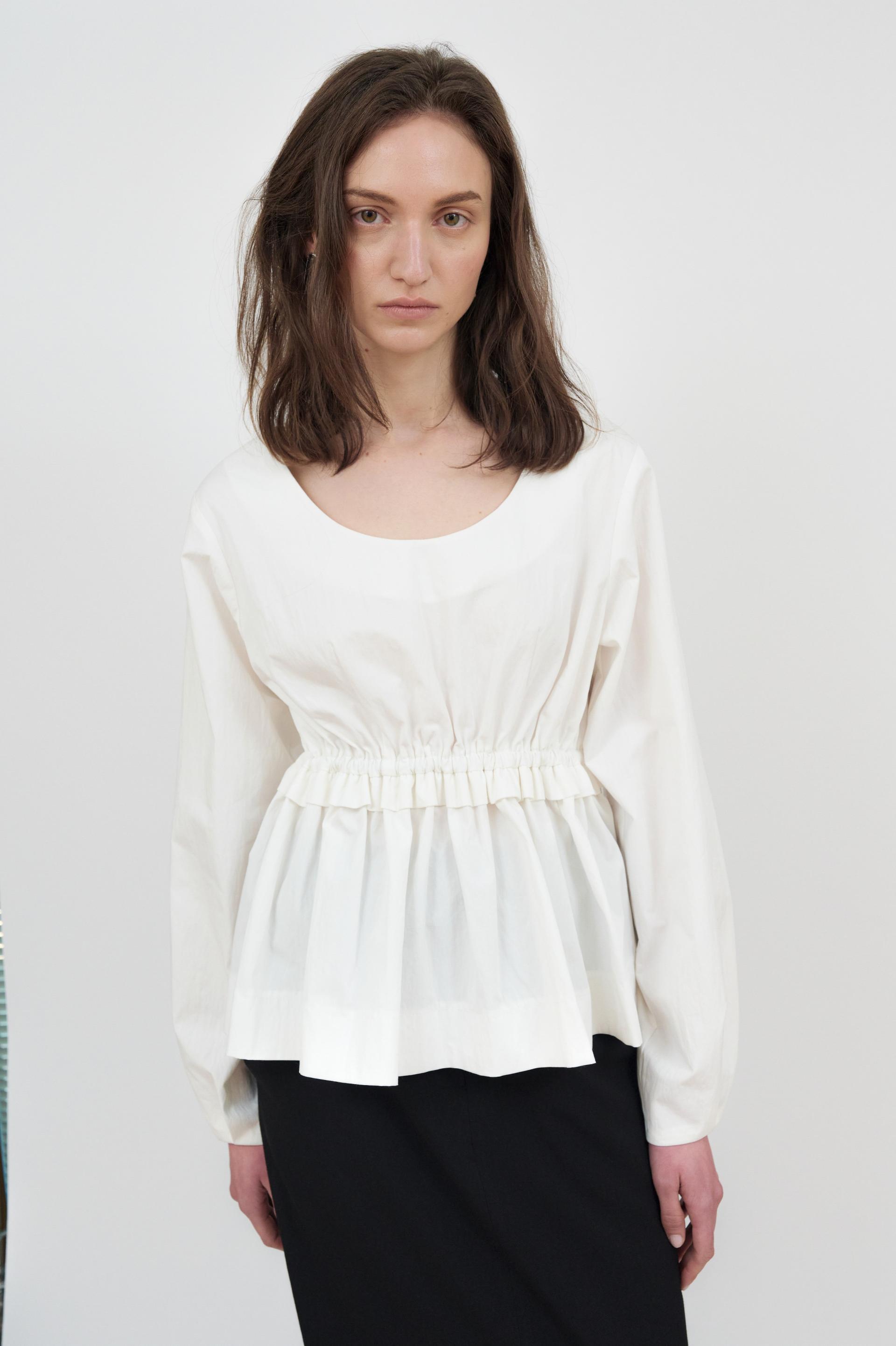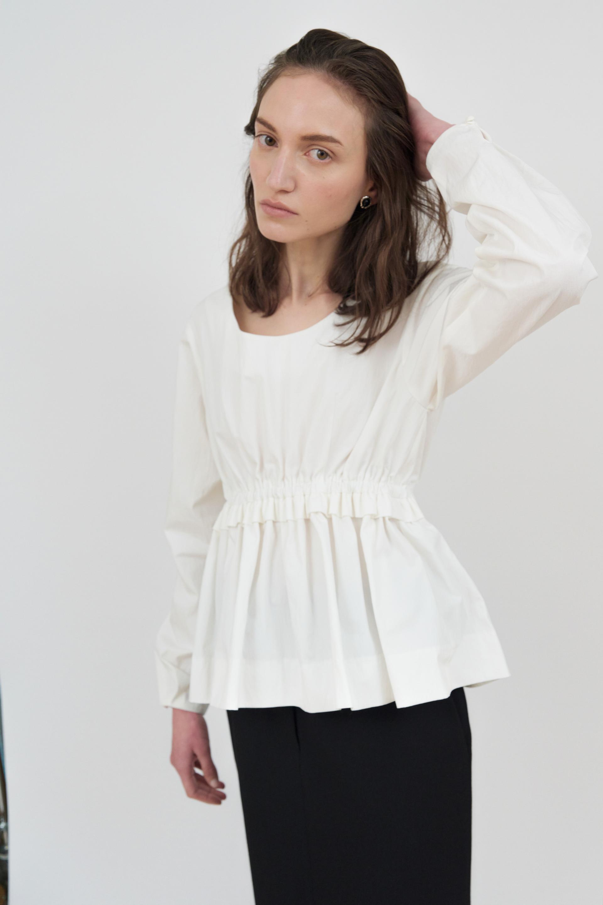라운드 네크라인이 돋보이는 블라우스입니다.