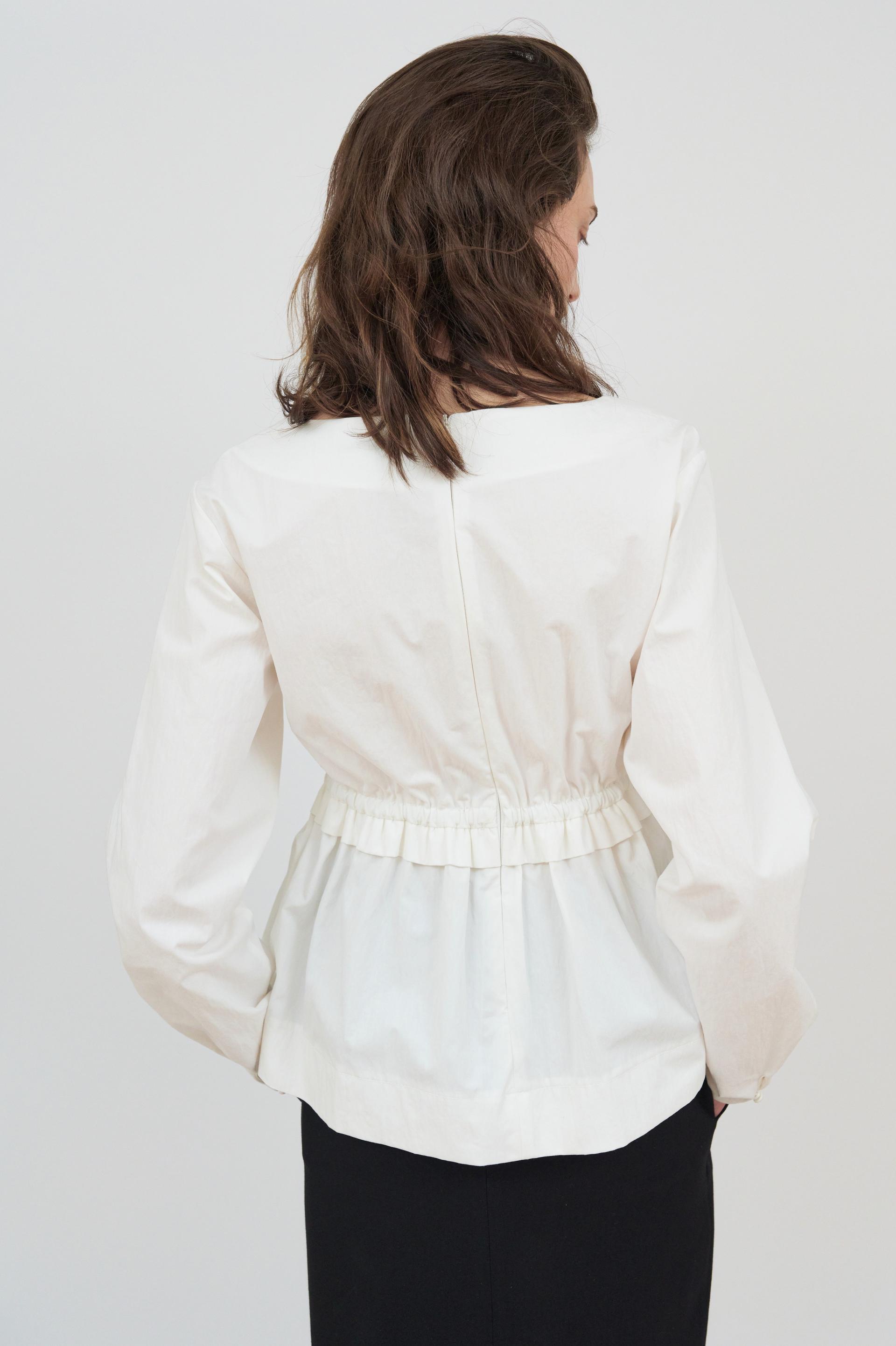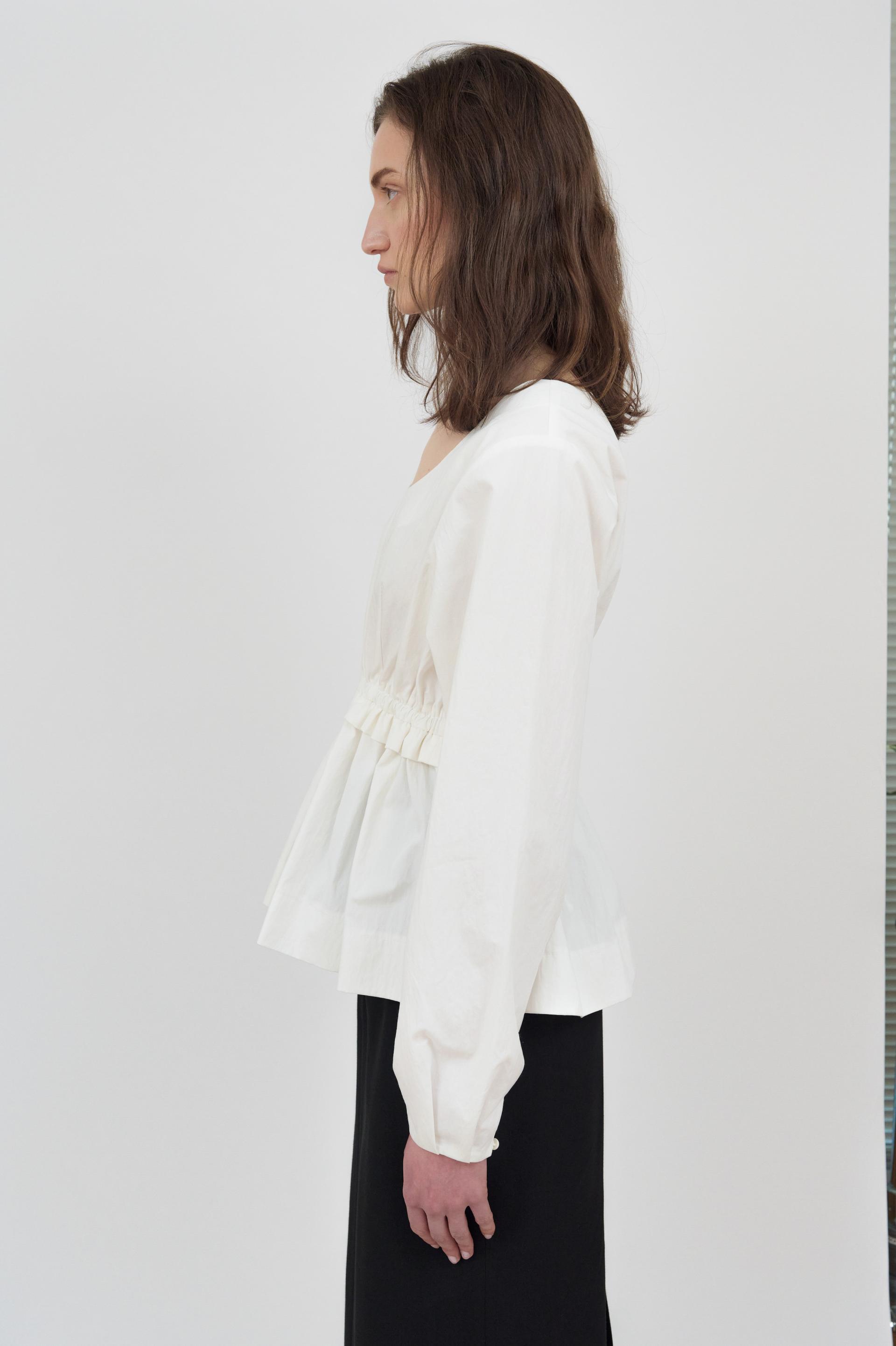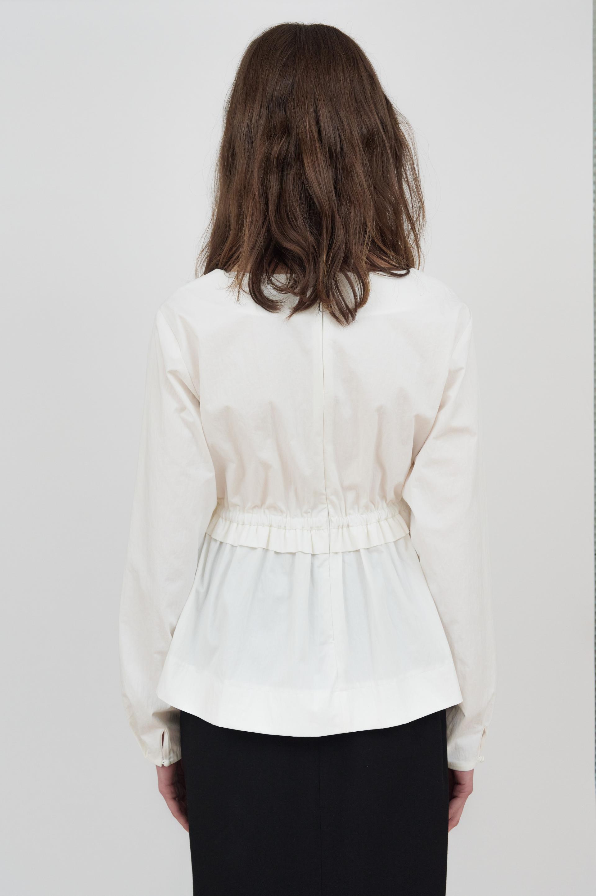 라운드 네크라인이 돋보이는 블라우스입니다.