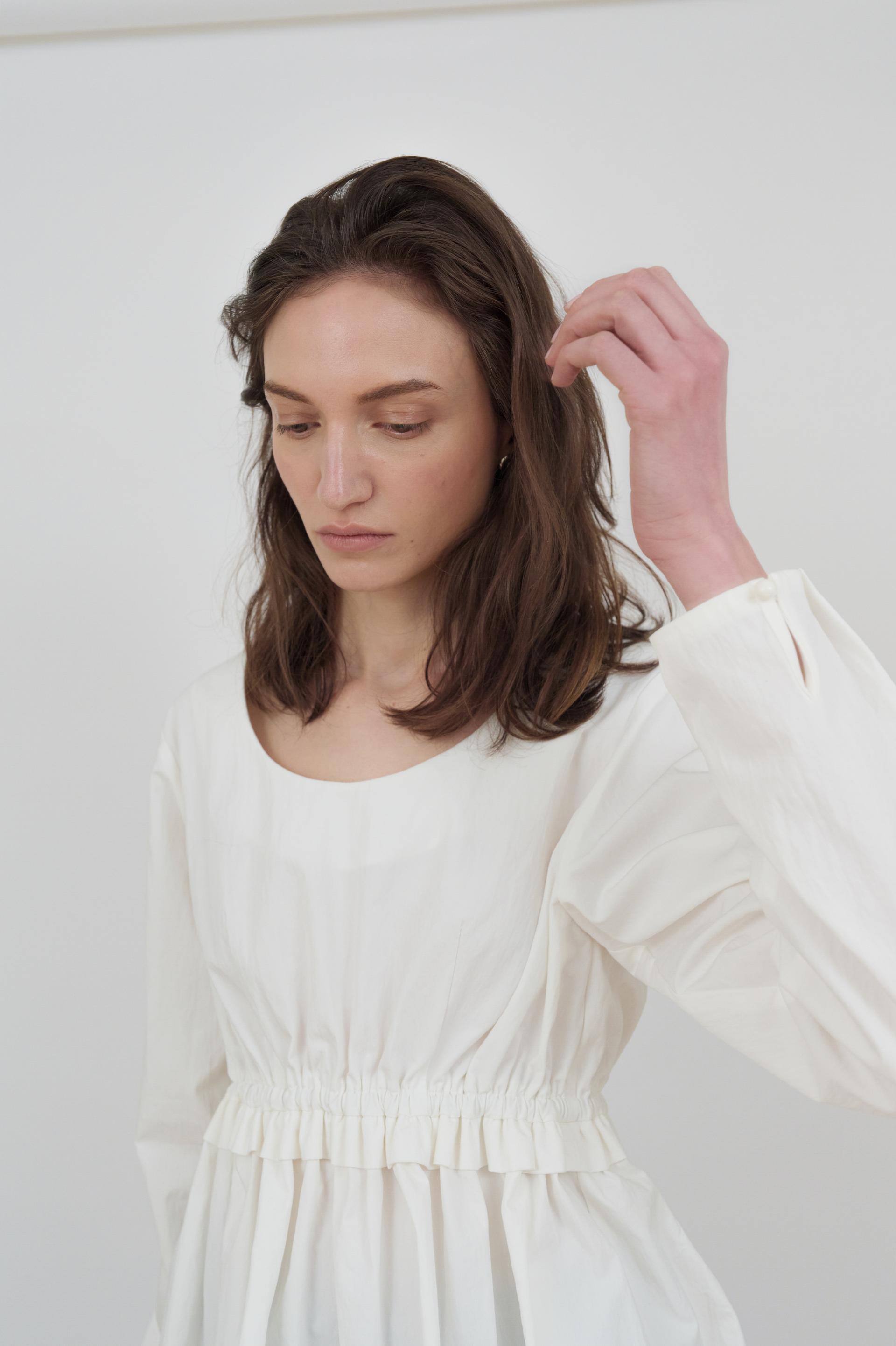 하단으로 내려갈수록 자연스러운 셔링 디테일로 사랑스러운 무드를 선사합니다.