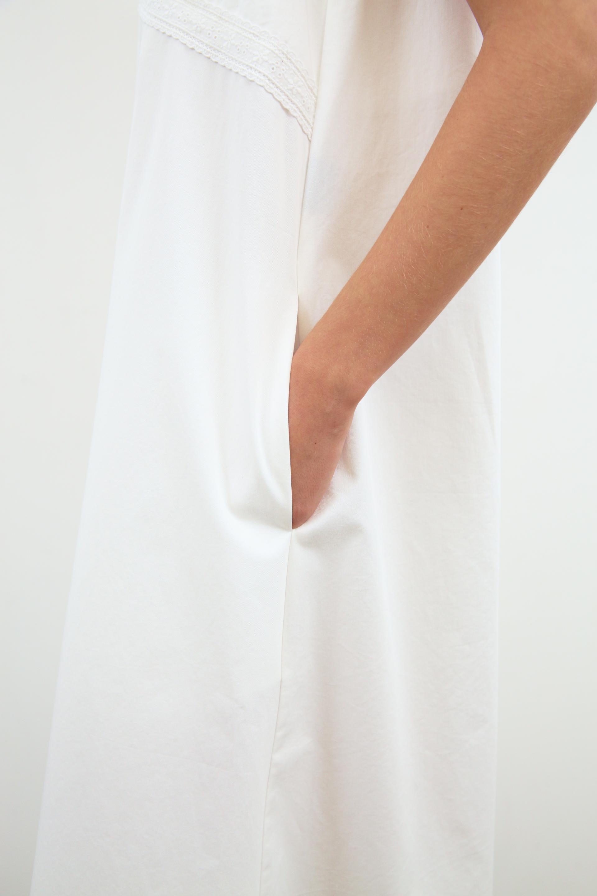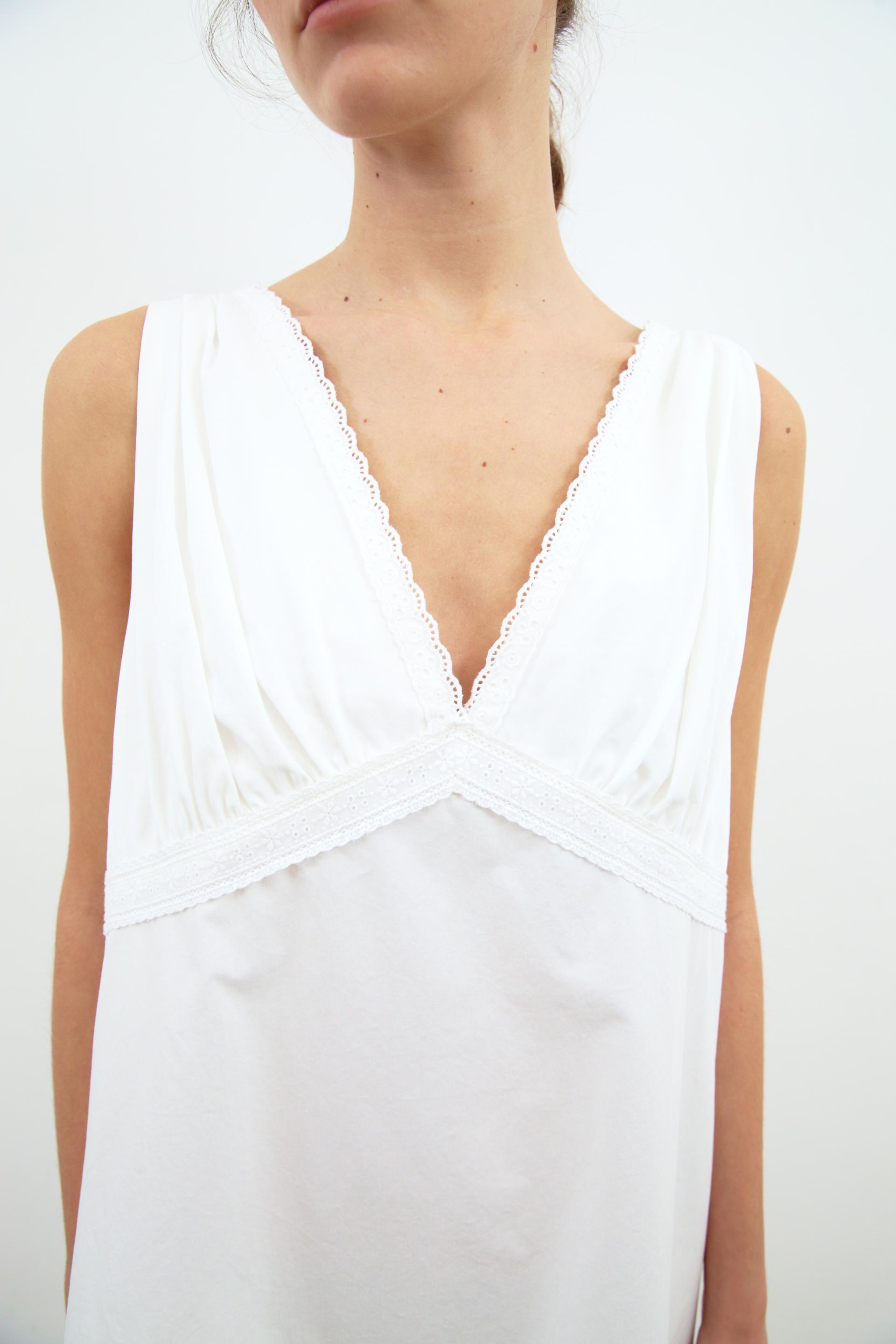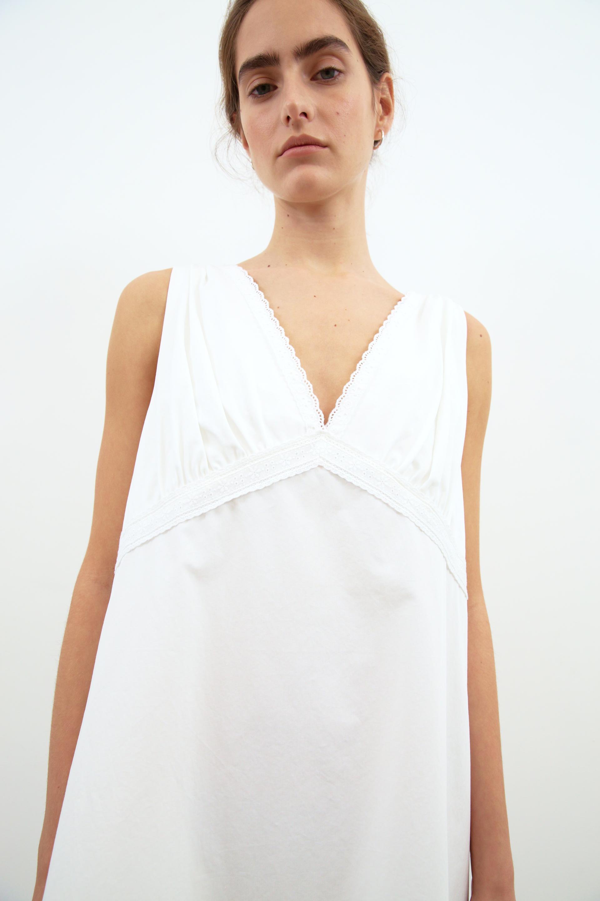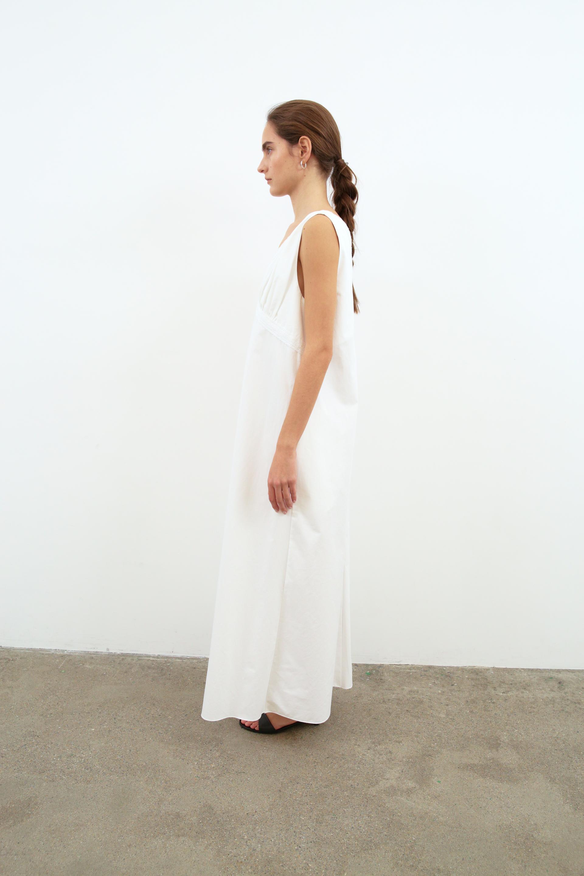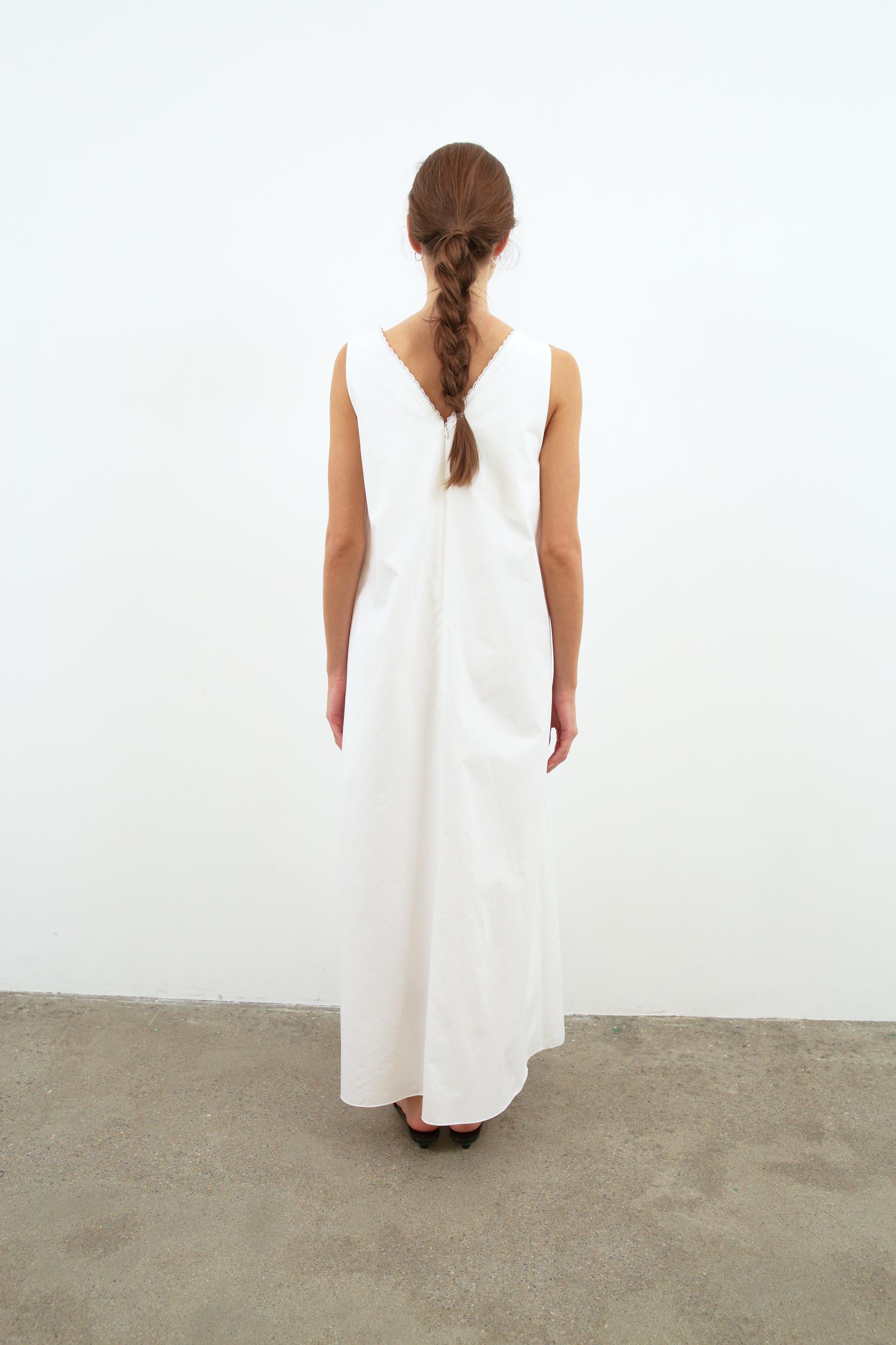 클래식한 브이넥 코튼 맥시 드레스입니다.