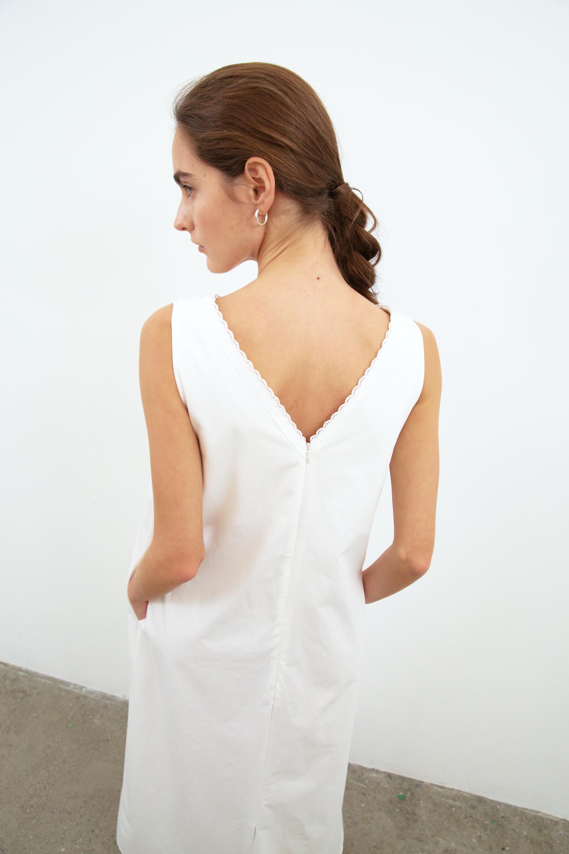 넥 라인에 따라 레이스 디테일을 주어 여성스러우면서