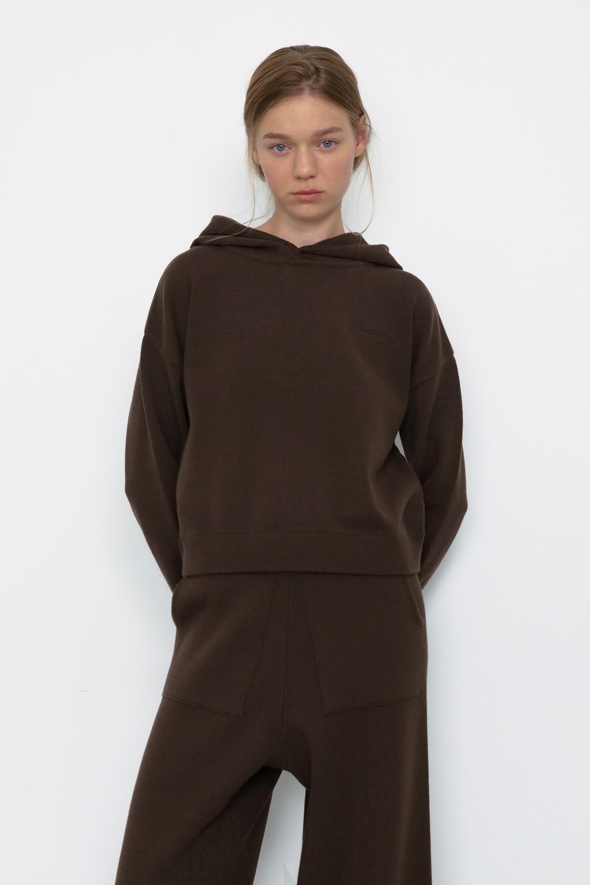 Soft Cotton Hoodie Knit [Brown]
