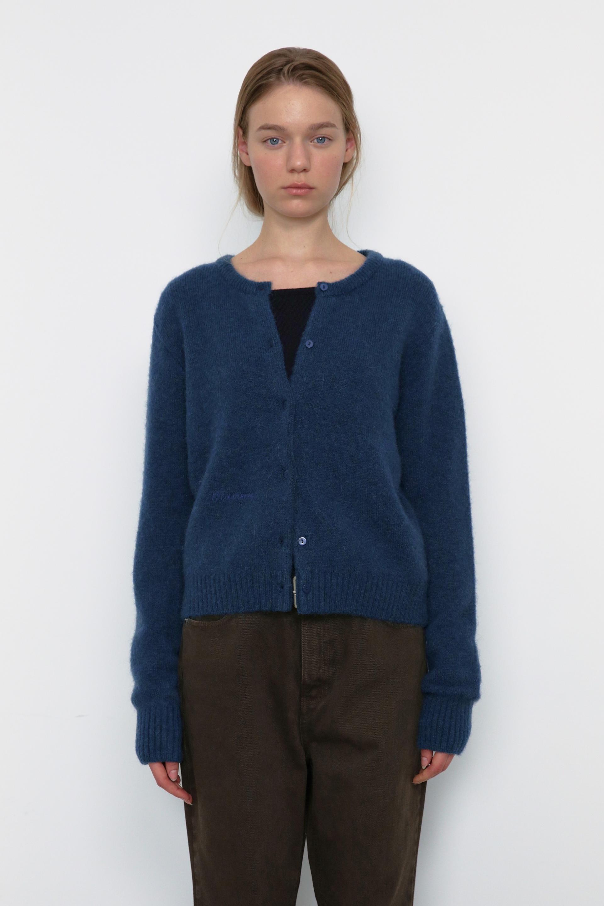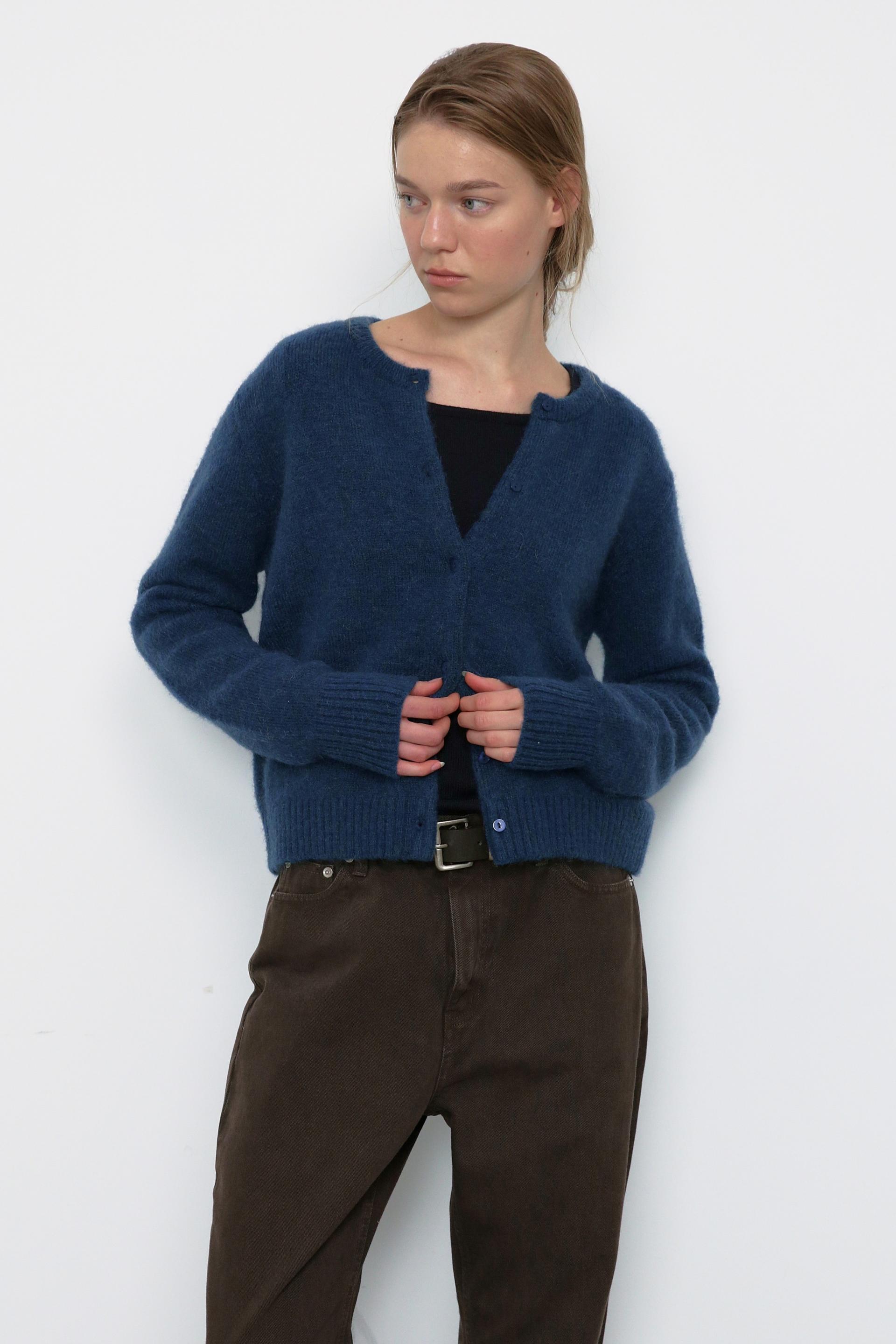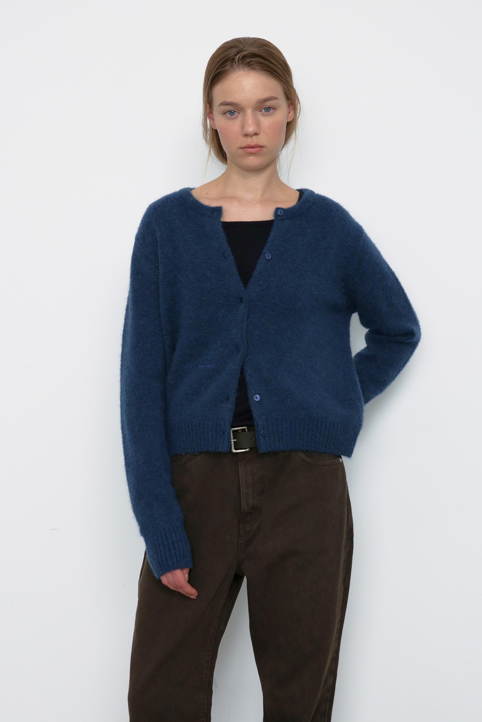 포근한 분위기의 알파카 혼방 라운드 가디건입니다.