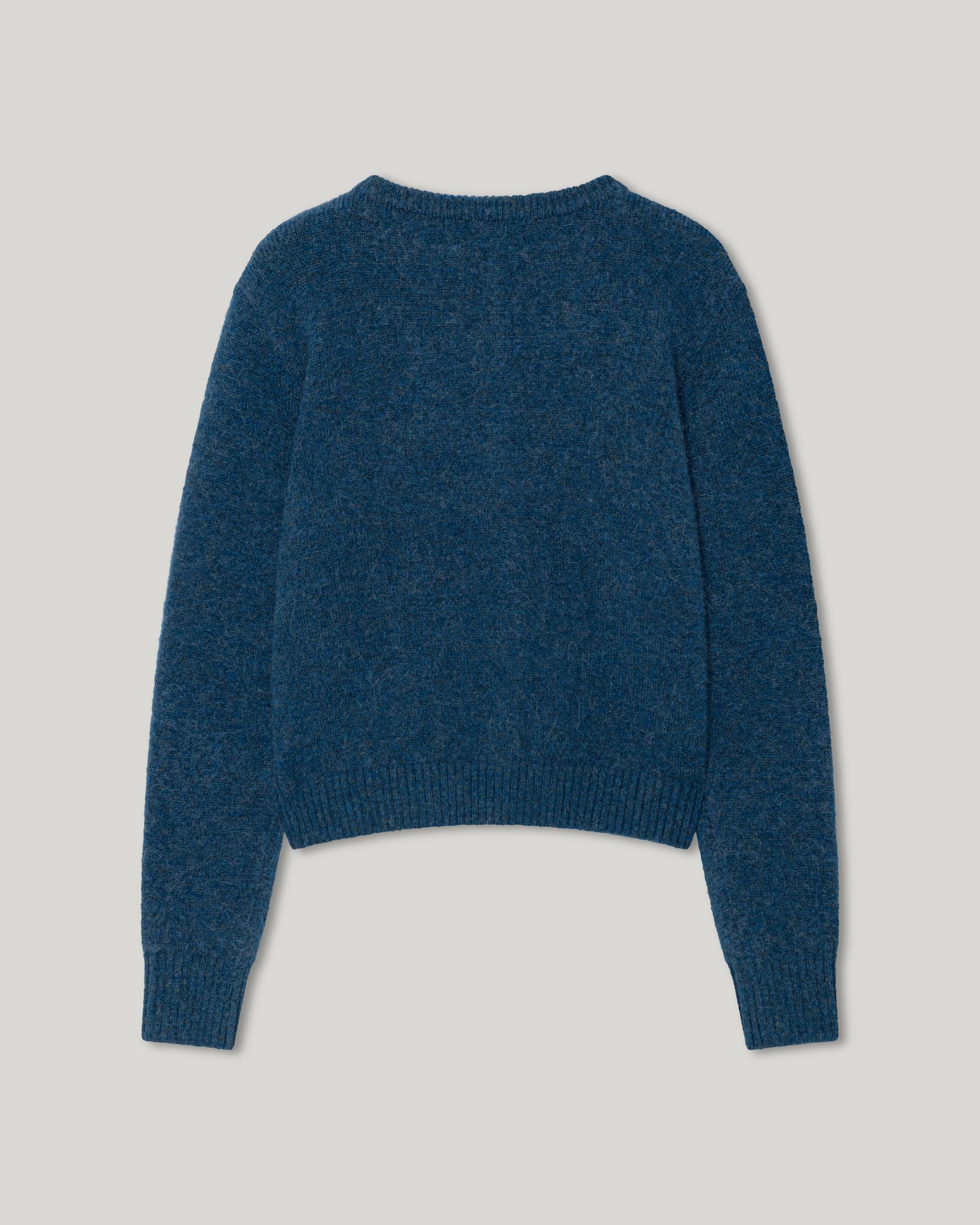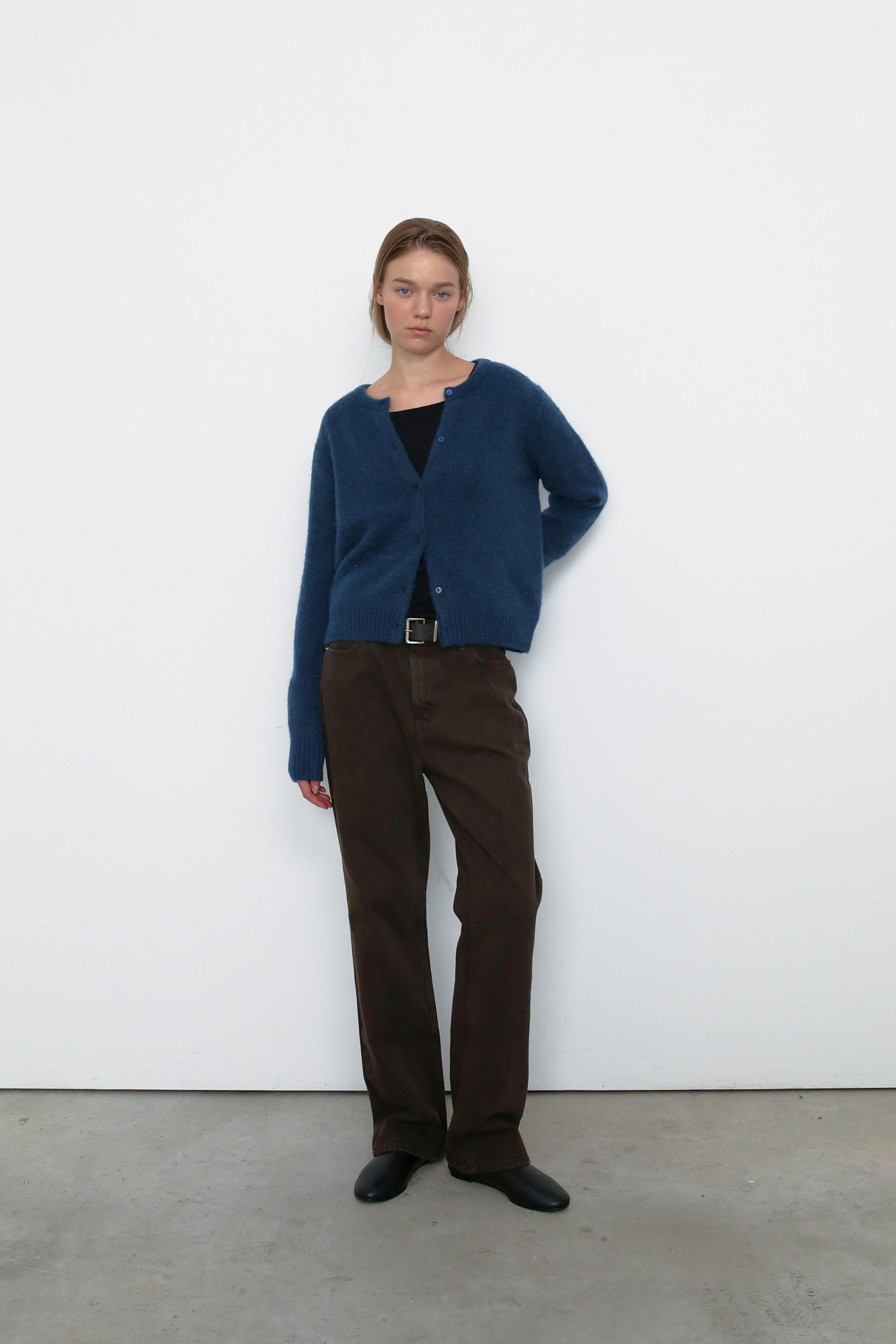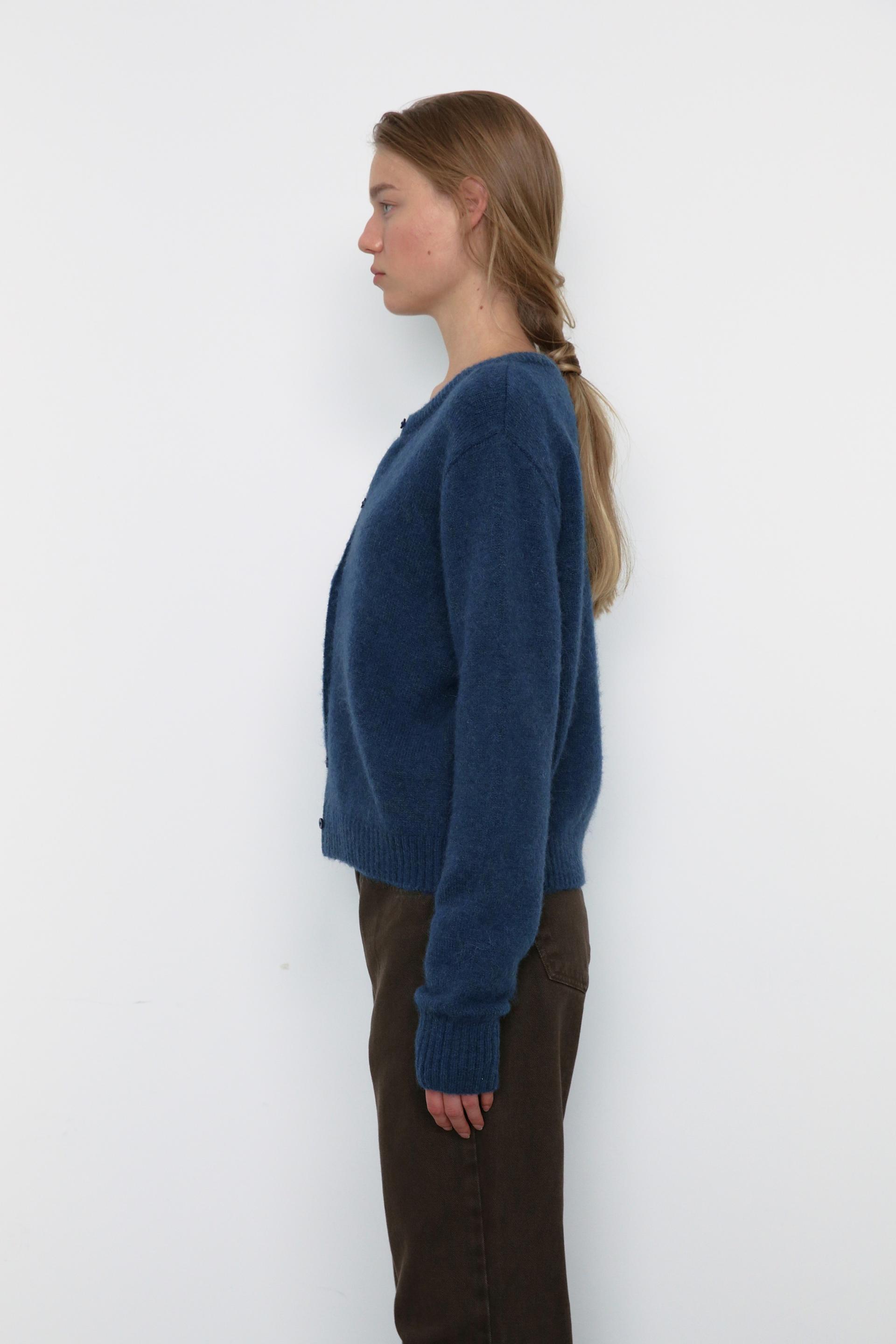 포근한 분위기의 알파카 혼방 라운드 가디건입니다.